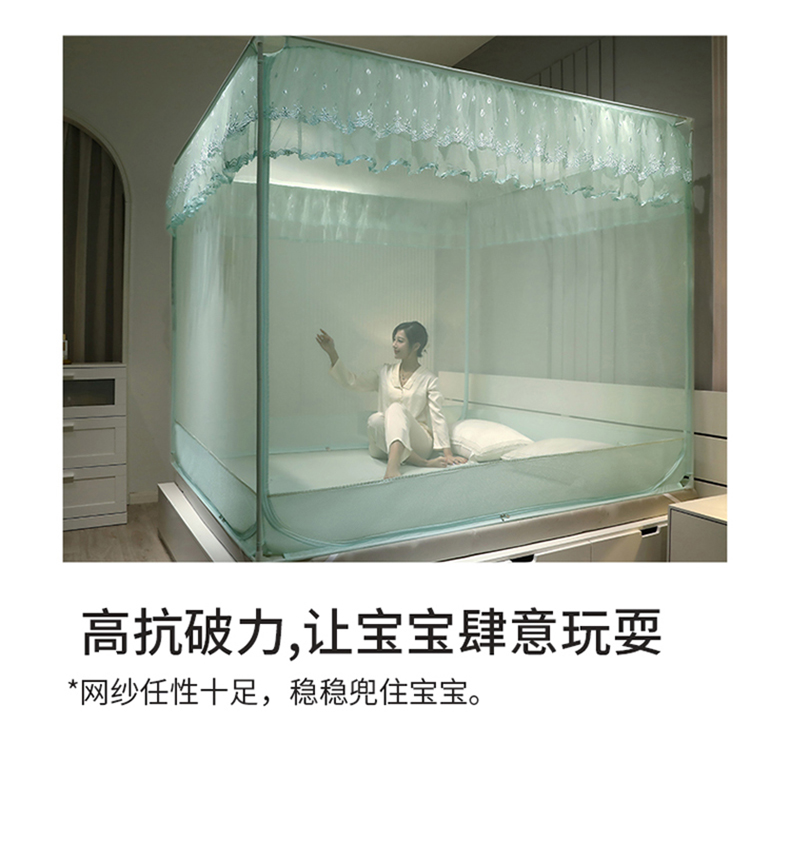 (总)夏彩 2025新款浪漫唯美T+U床笠式坐床外穿防摔蚊帐-88610,886610冰海蓝,886610极光白,886610浅粉玉,886610浅水蓝,886610蔷薇粉,886610杏仁黄,886610雅士灰