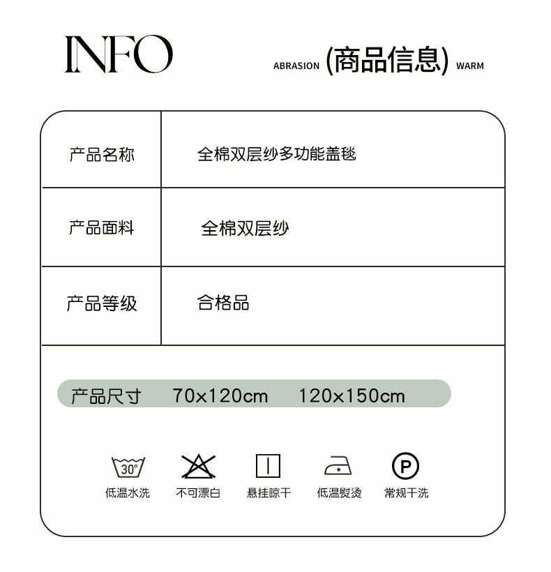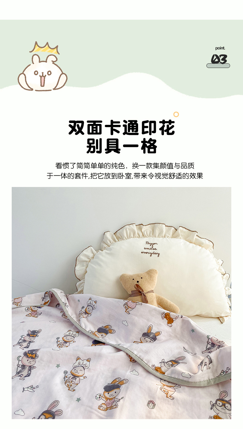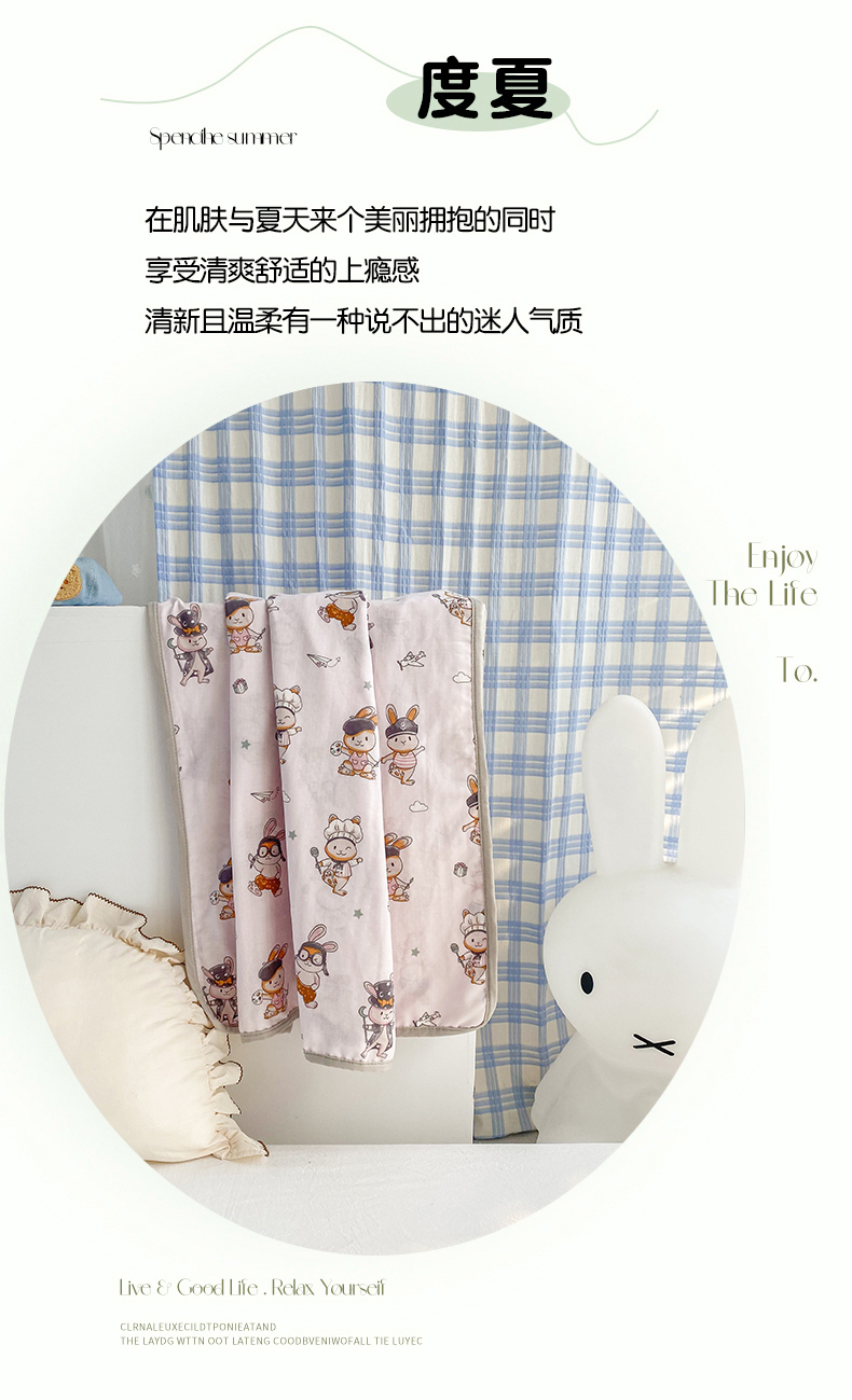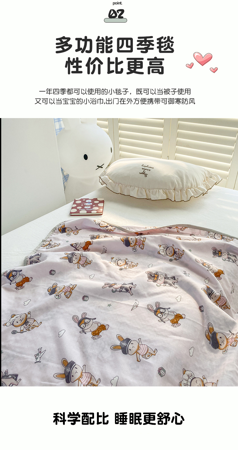 商品名称:潮邦 2025新款全棉双层纱多功能盖毯 兔之园