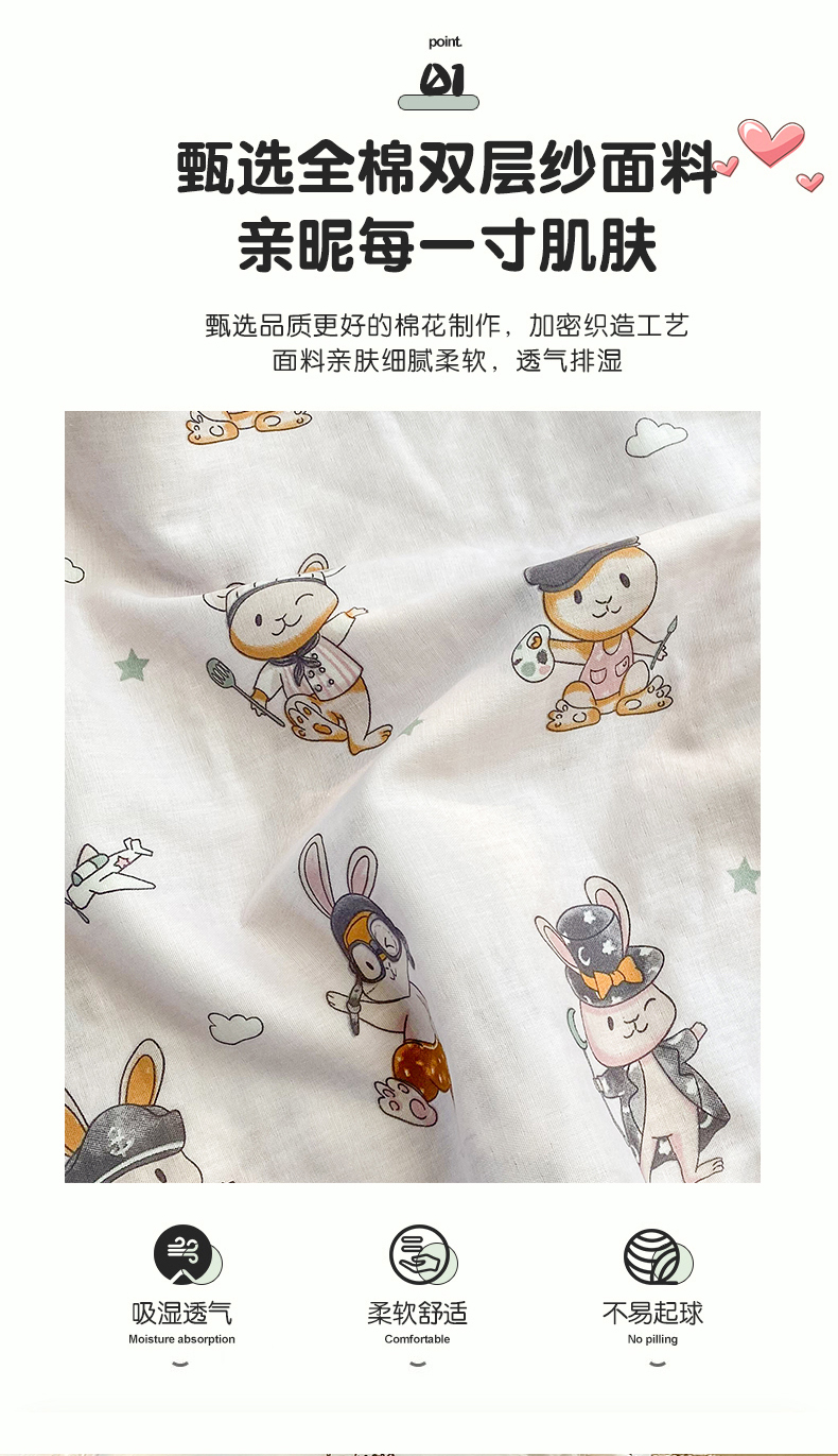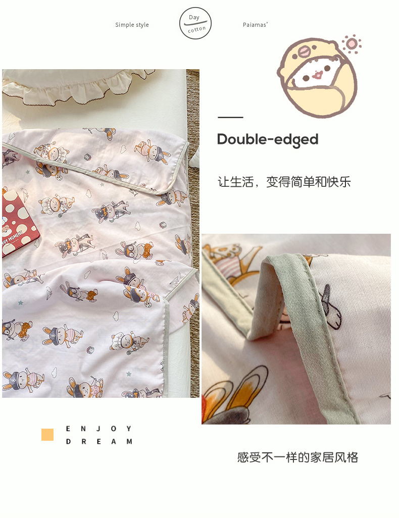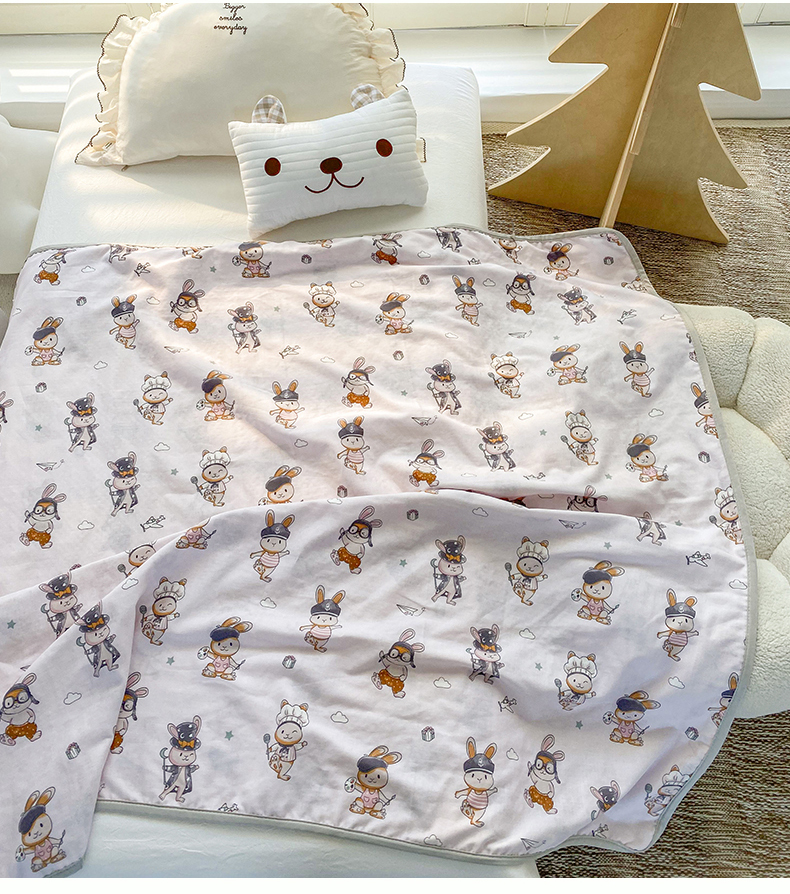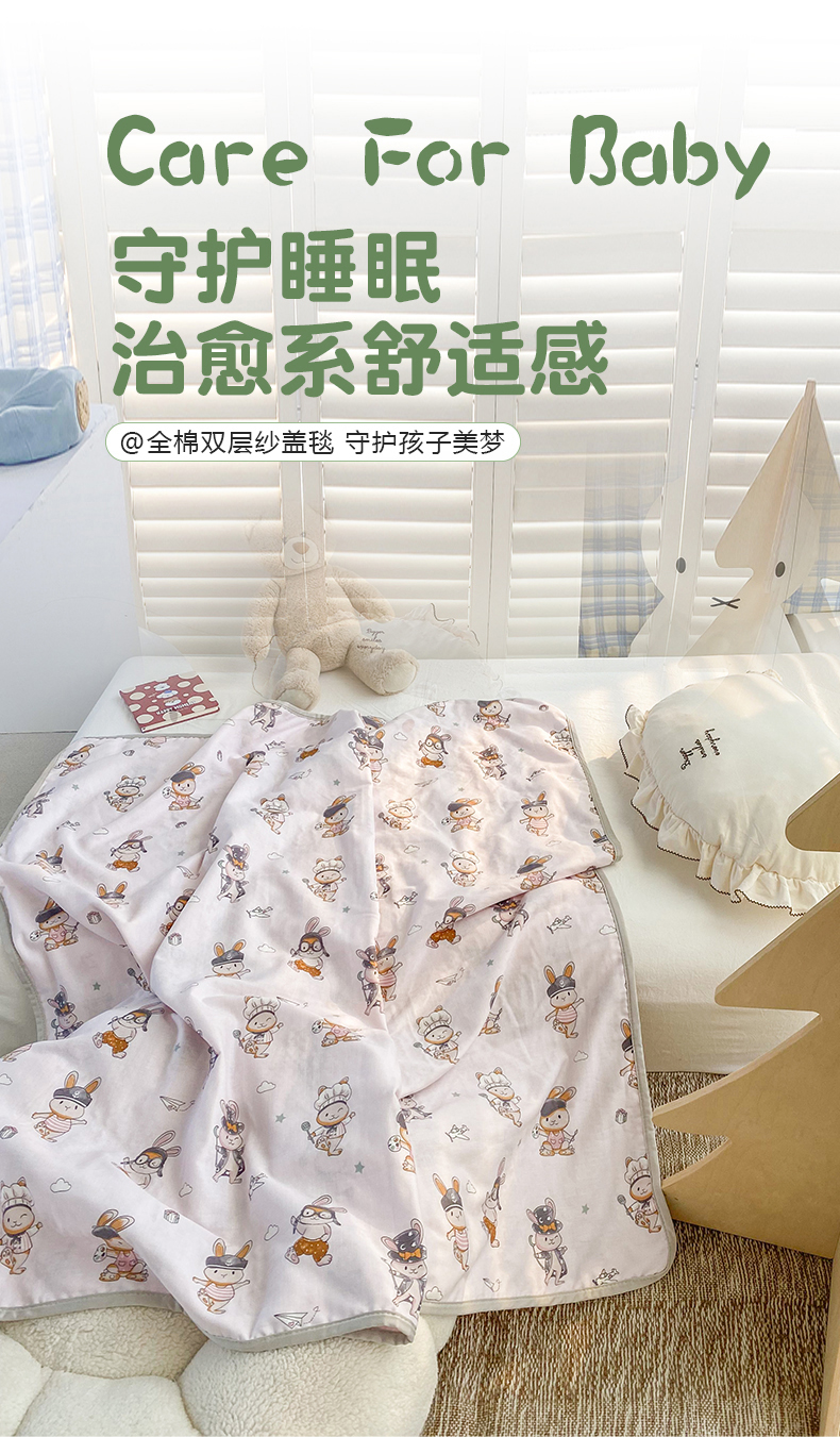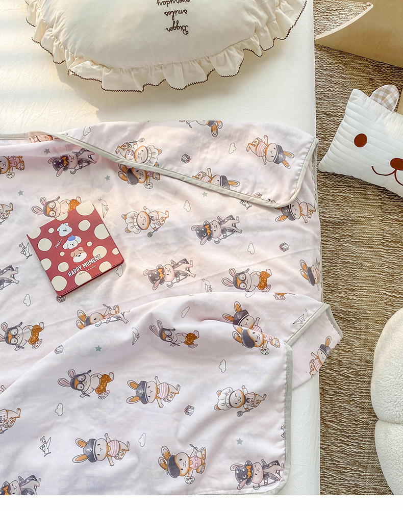 潮邦 2025新款全棉双层纱多功能盖毯 兔之园