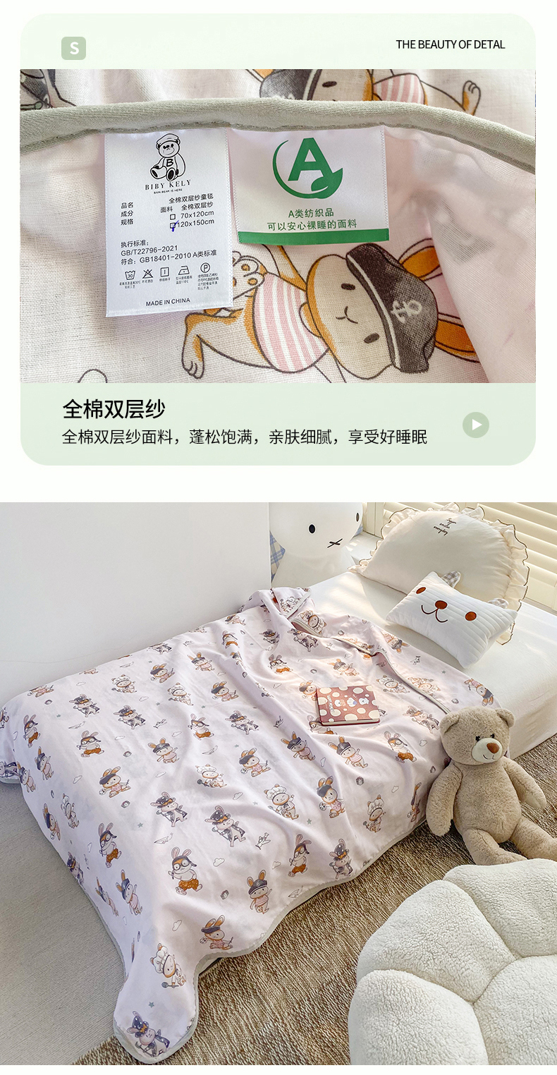 (总)潮邦 2025新款全棉双层纱多功能盖毯,白露-白,背包兔,彩虹糖,车厘子,动物派,秋之花,甜心字母,兔跳跳,兔之园,心怡粉,雨伞兔,棕熊
