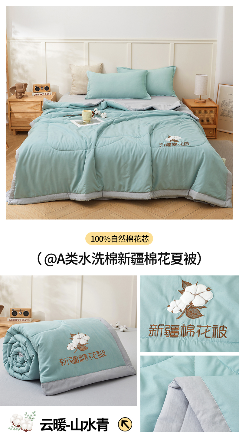 商品名称:(总)西域种棉人·千百笠 2025新款A类100%新疆棉花夏凉被纯棉全棉填充毛巾绣绣花纯色双拼原棉空调被夏被