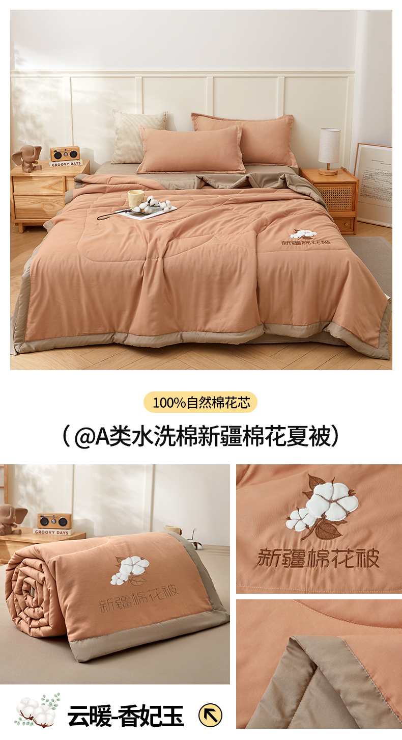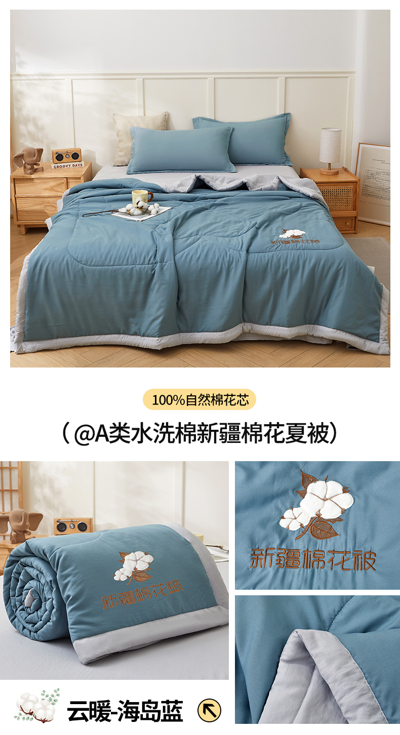 (总)西域种棉人·千百笠 2025新款A类100%新疆棉花夏凉被纯棉全棉填充毛巾绣绣花纯色双拼原棉空调被夏被