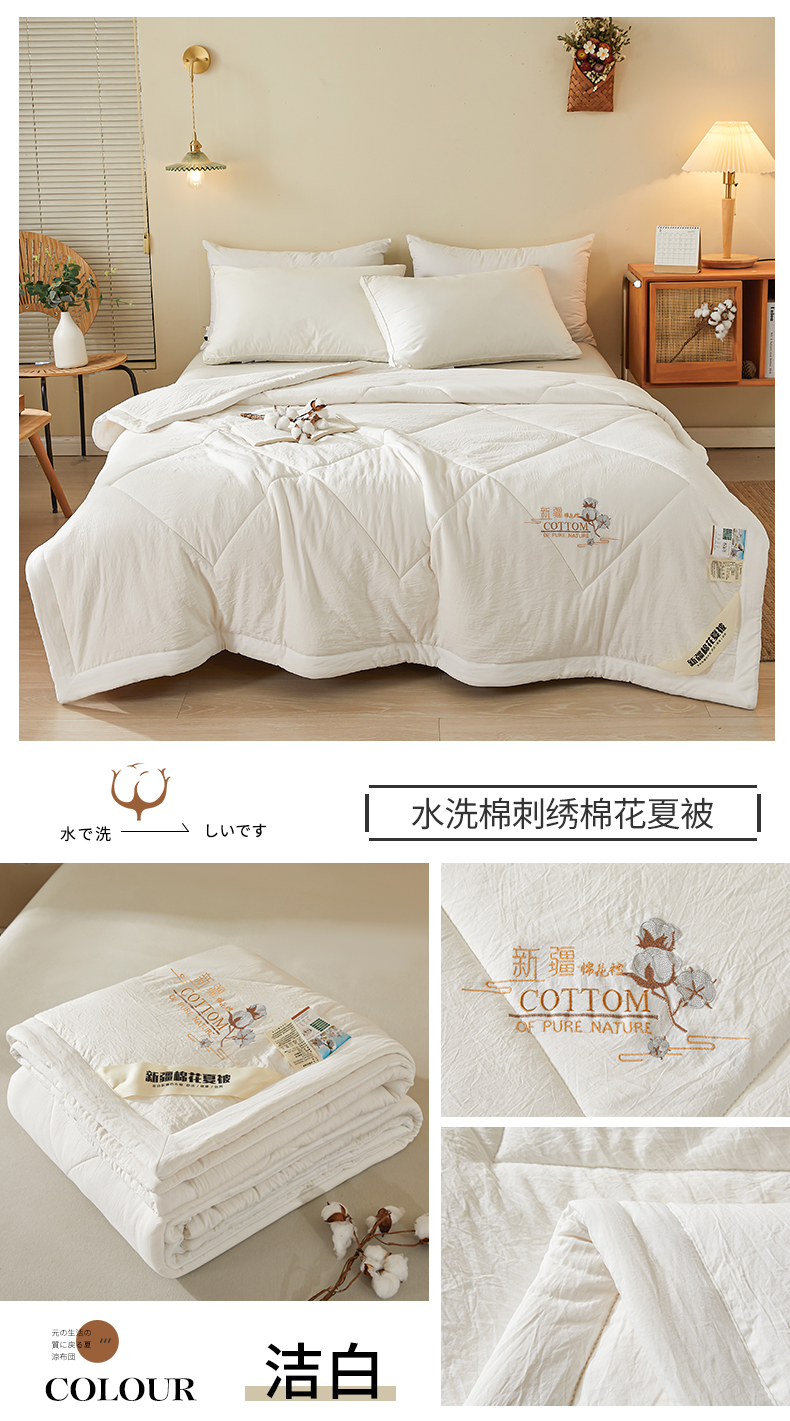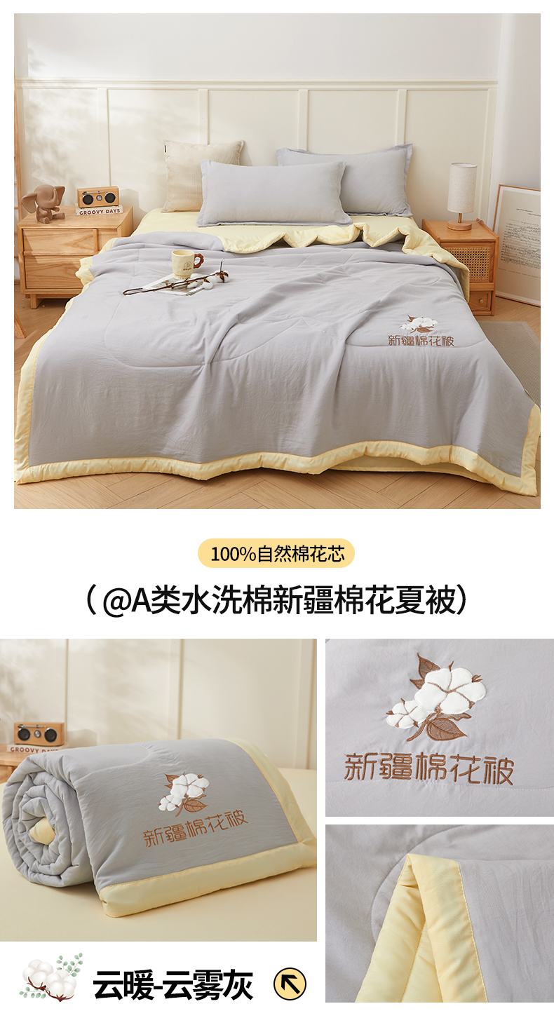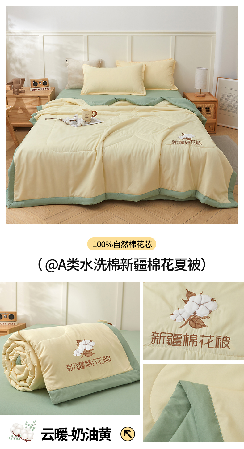 被子 > 夏被 > (总)西域种棉人·千百笠 2025新款A类100%新疆棉花夏凉被纯棉全棉填充毛巾绣绣花纯色双拼原棉空调被夏被