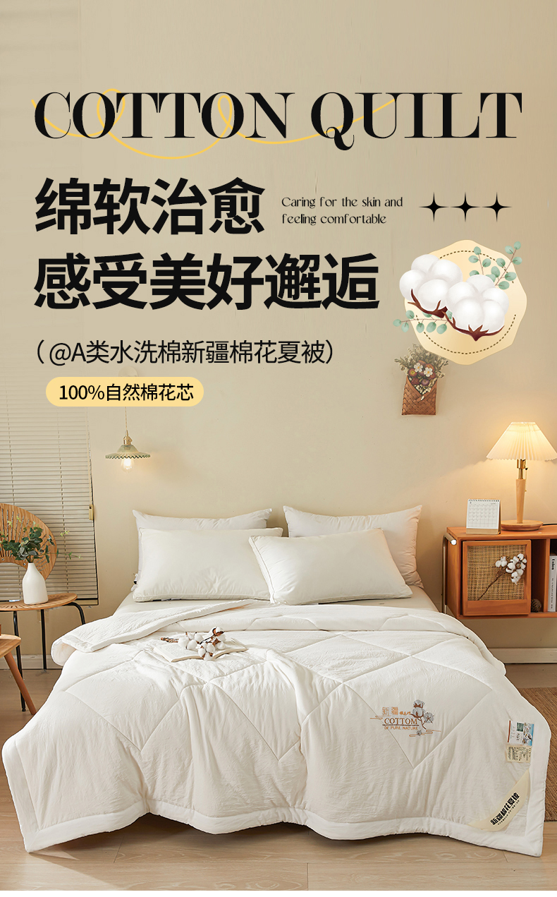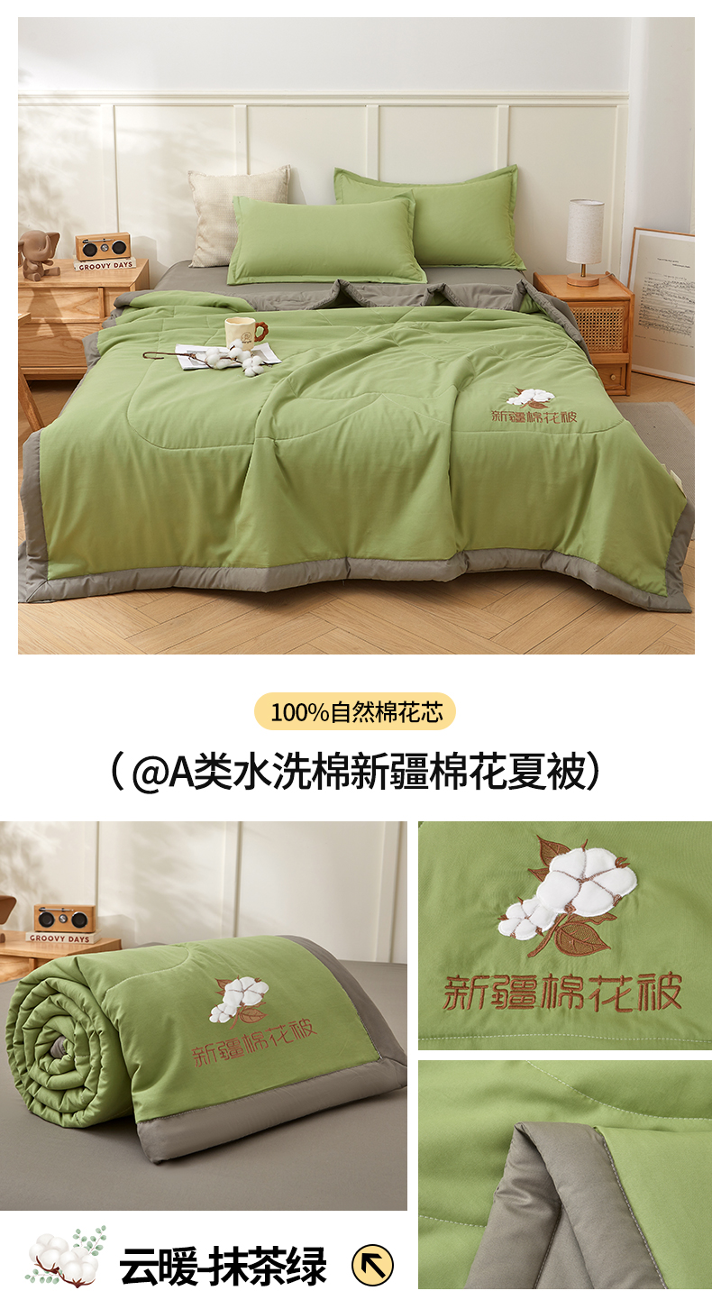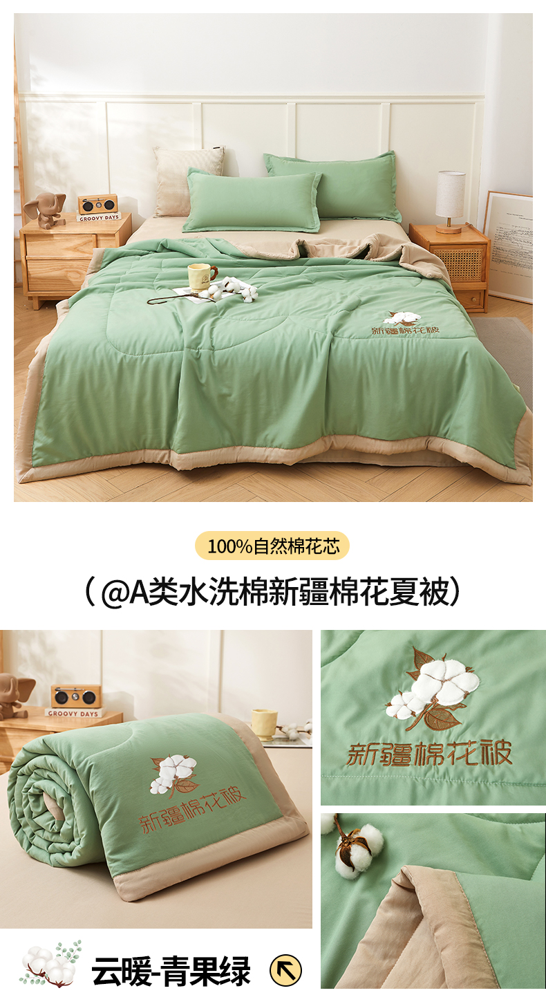 被子 > 夏被 > (总)西域种棉人·千百笠 2025新款A类100%新疆棉花夏凉被纯棉全棉填充毛巾绣绣花纯色双拼原棉空调被夏被