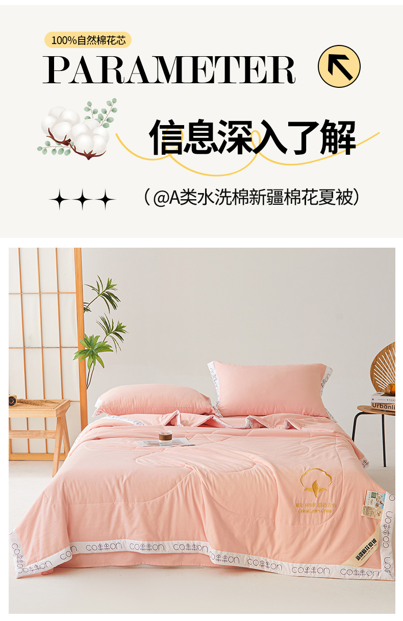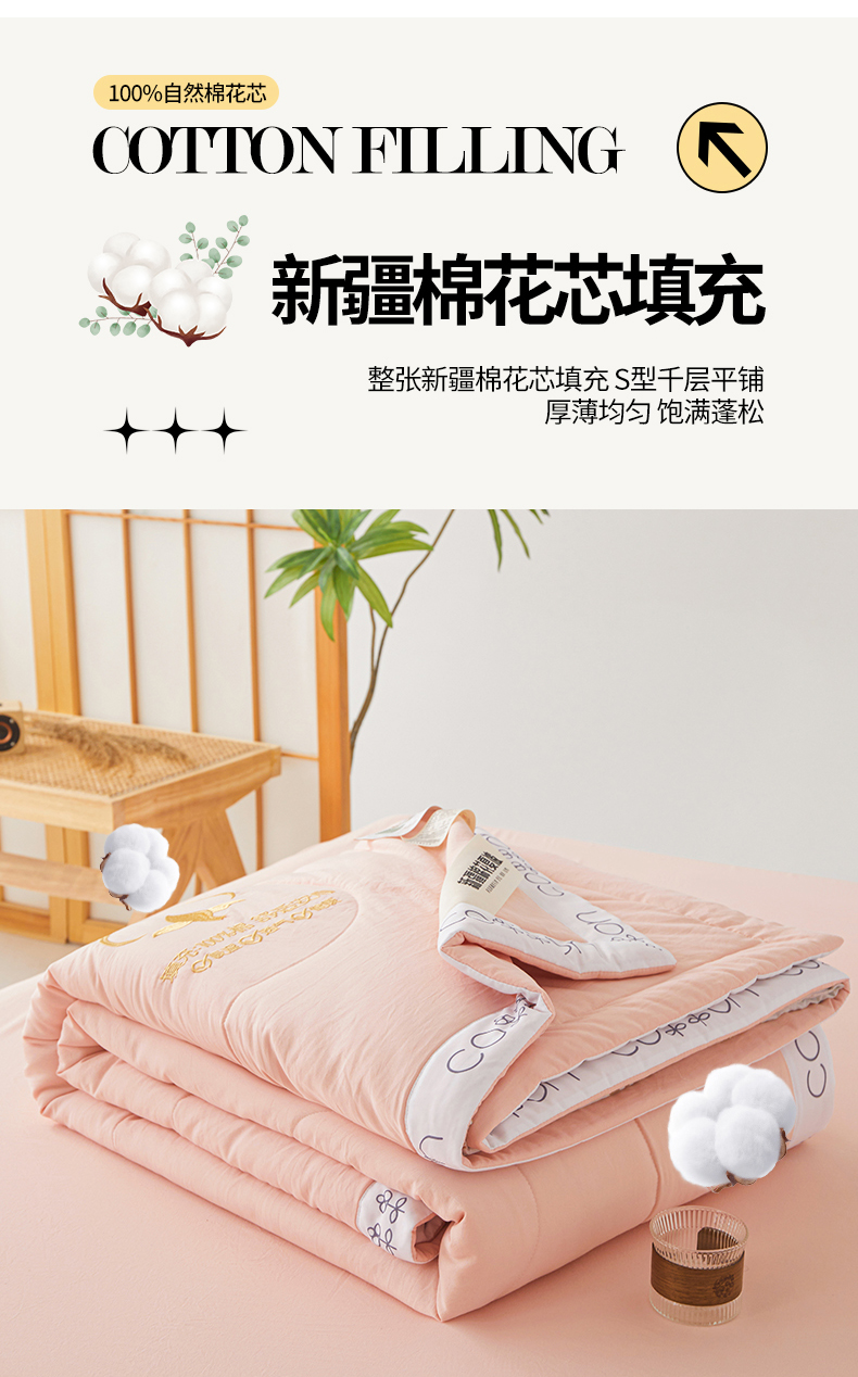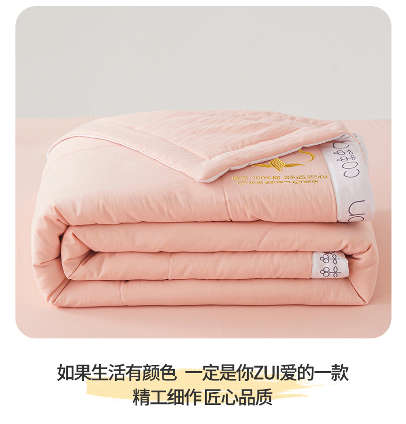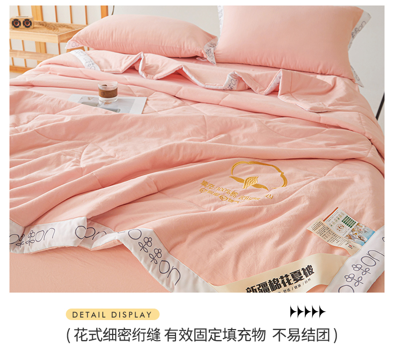 商品名称:西域种棉人·千百笠 2025新款A类100%新疆棉花夏凉被纯棉全棉填充毛巾绣绣花纯色双拼原棉空调被夏被 千寻仙粉