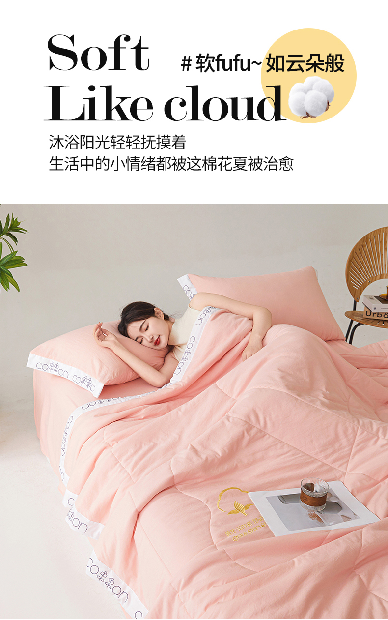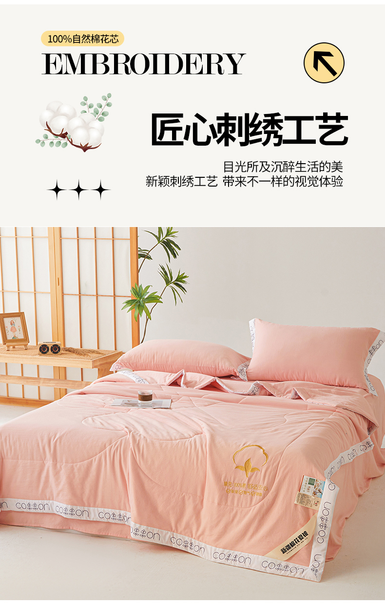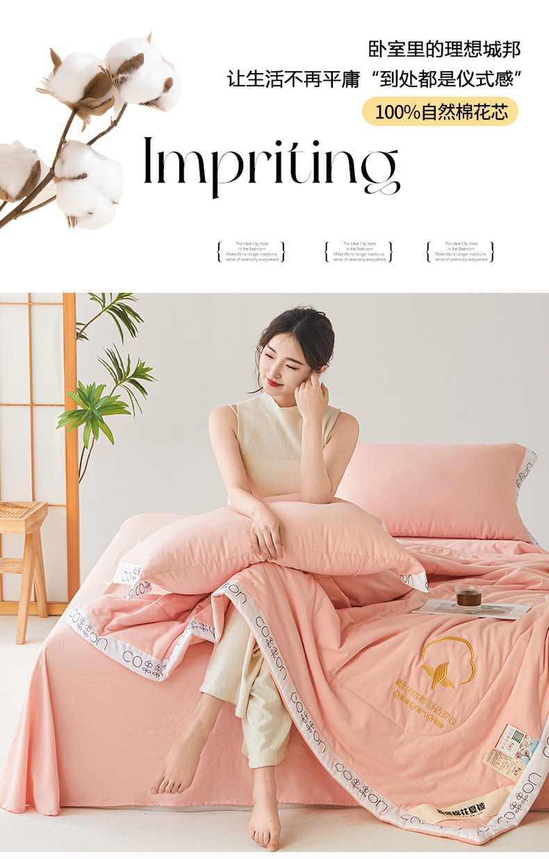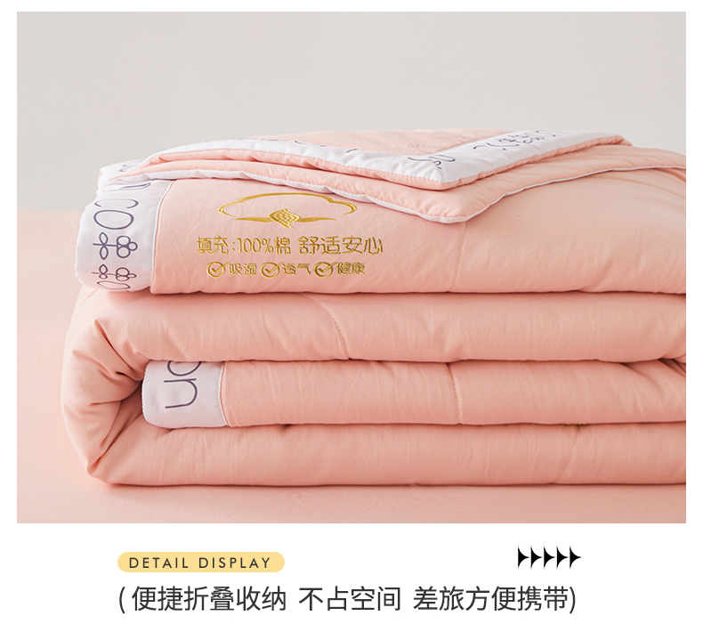 商品名称:西域种棉人·千百笠 2025新款A类100%新疆棉花夏凉被纯棉全棉填充毛巾绣绣花纯色双拼原棉空调被夏被 千寻仙粉