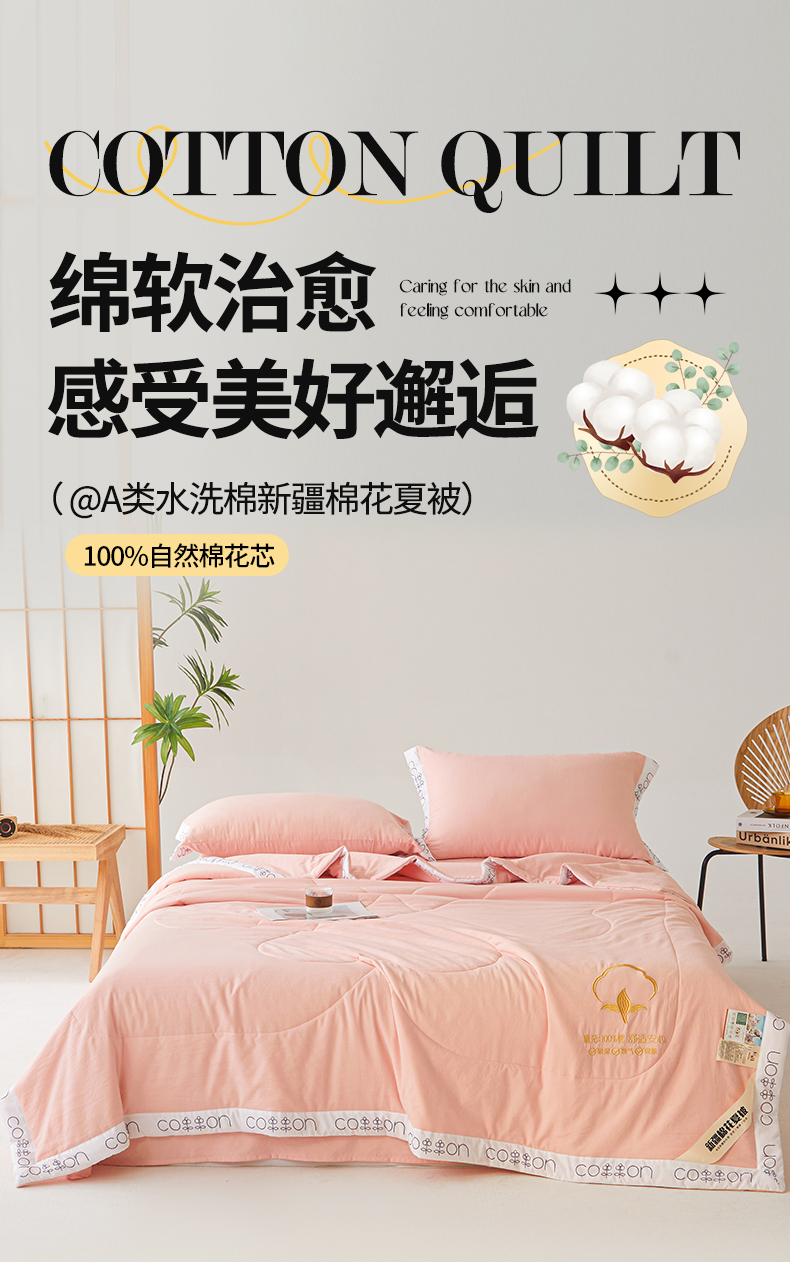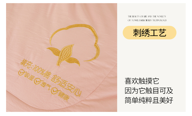 被子 > 夏被 > 西域种棉人·千百笠 2025新款A类100%新疆棉花夏凉被纯棉全棉填充毛巾绣绣花纯色双拼原棉空调被夏被 千寻仙粉