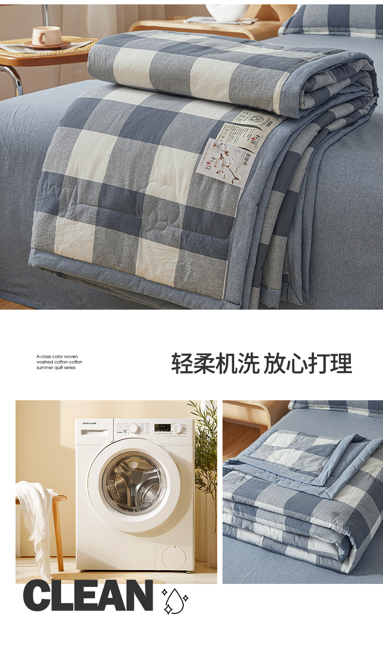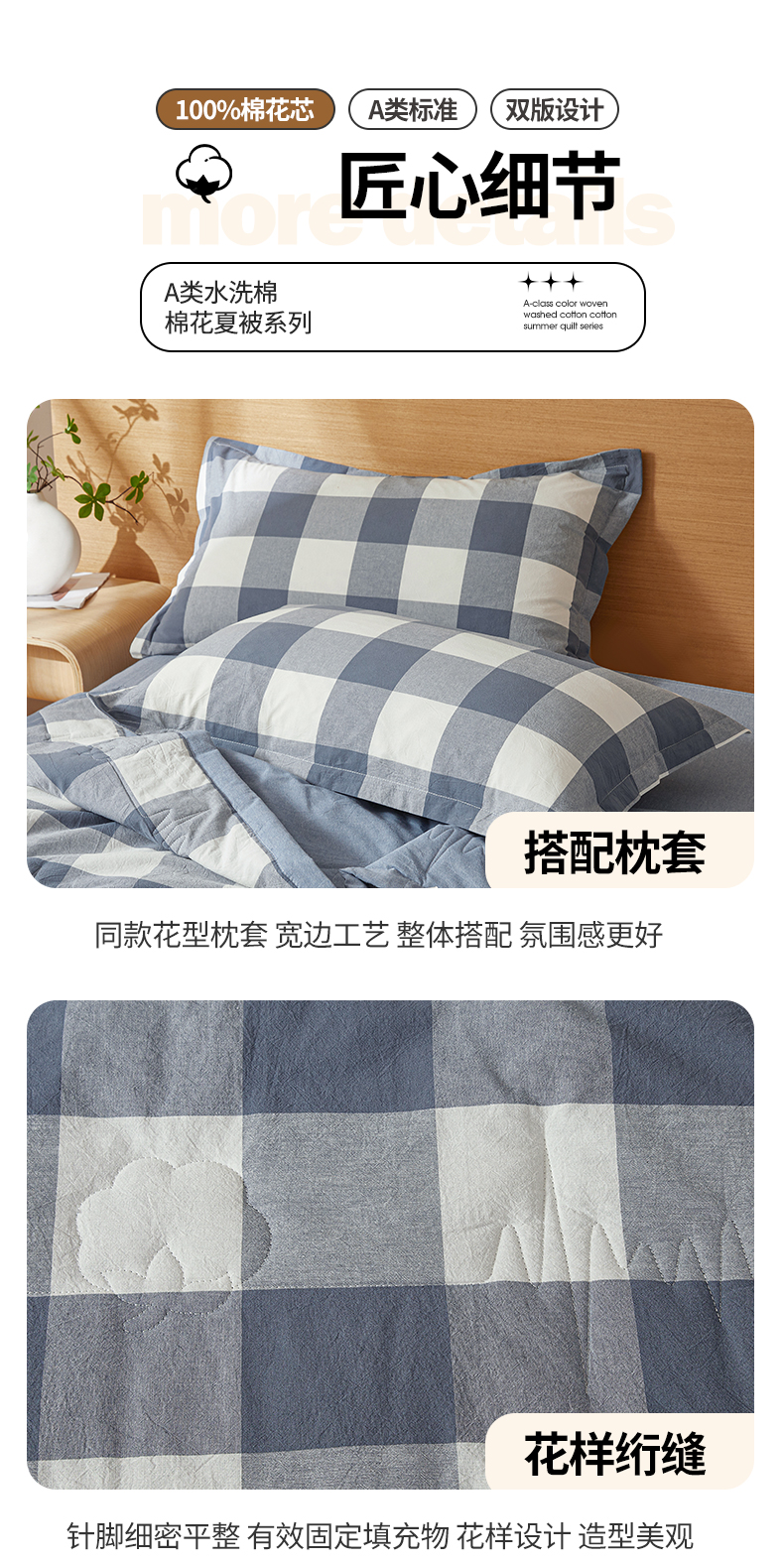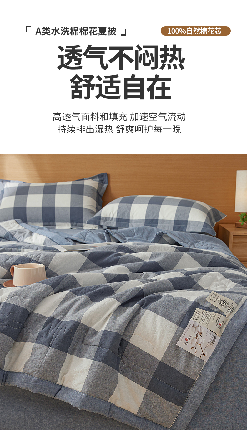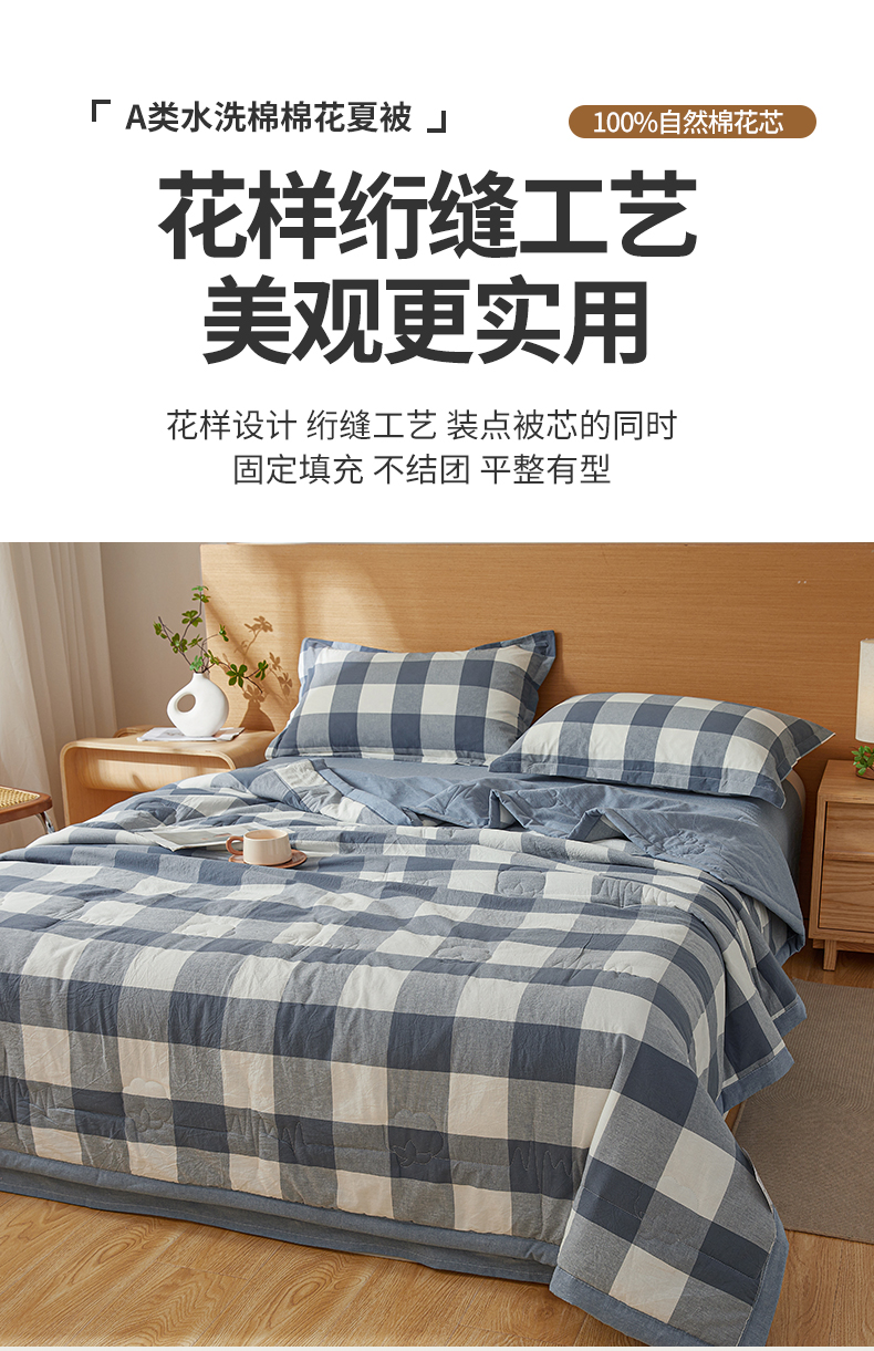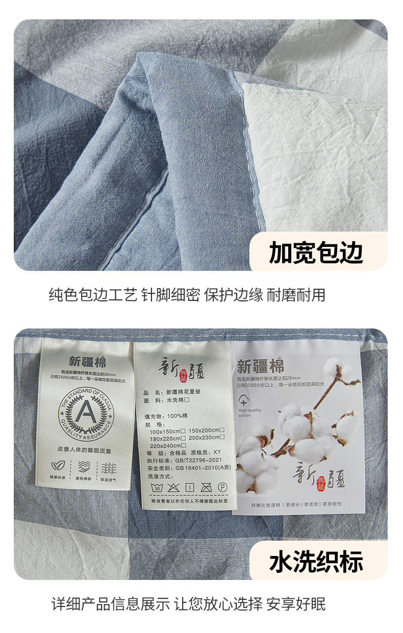 商品名称:西域种棉人·千百笠 2025新款A类100%新疆棉花夏凉被纯棉全棉填充原棉空调被手工宽边水洗棉夏被 蓝中格
