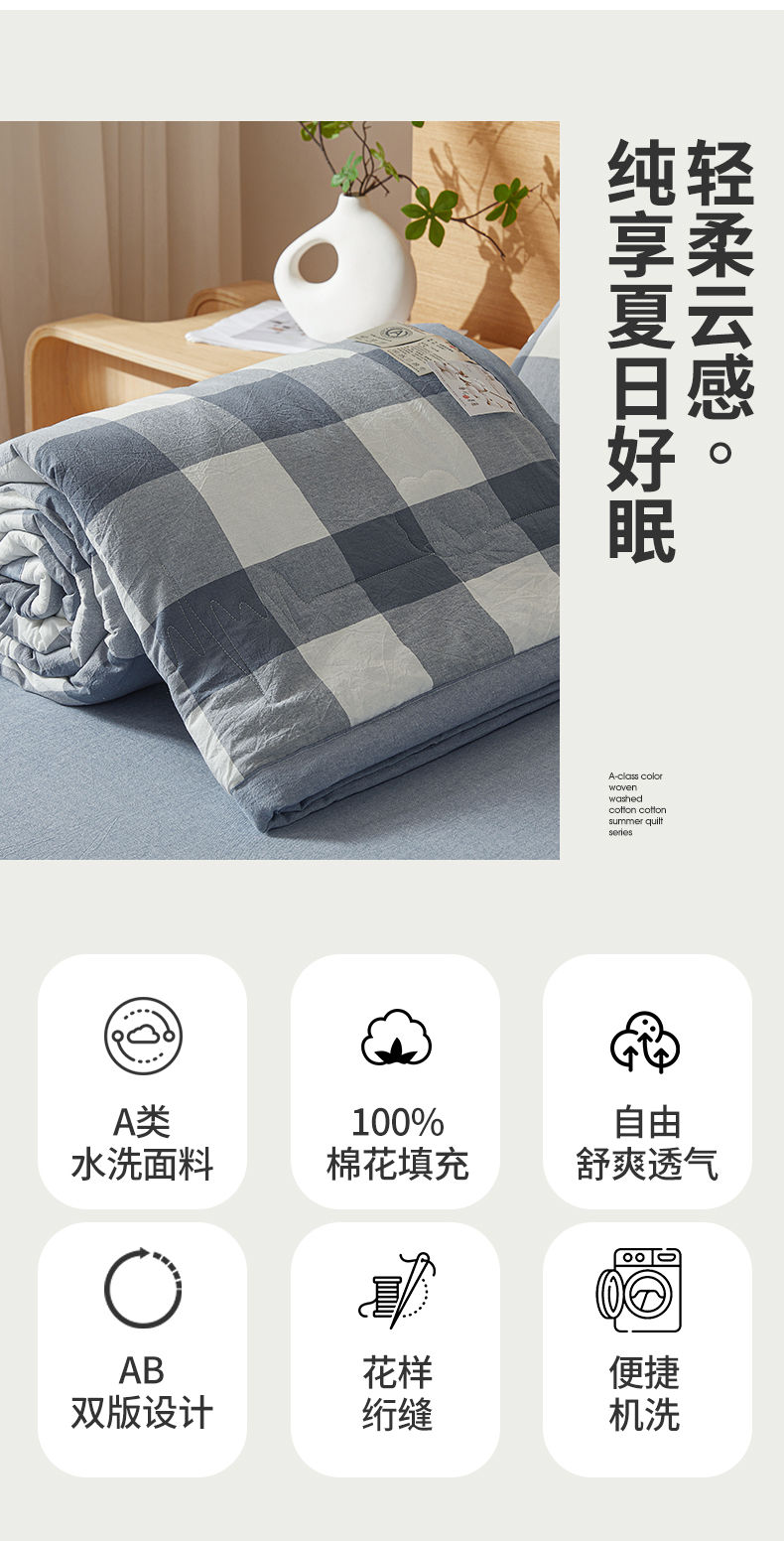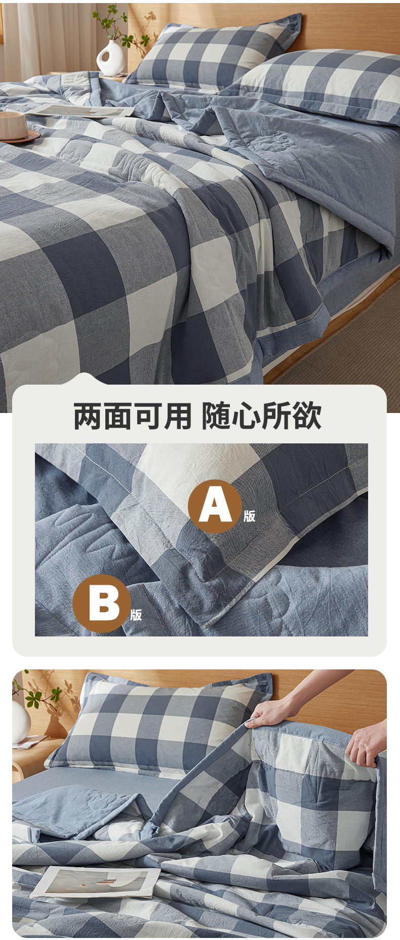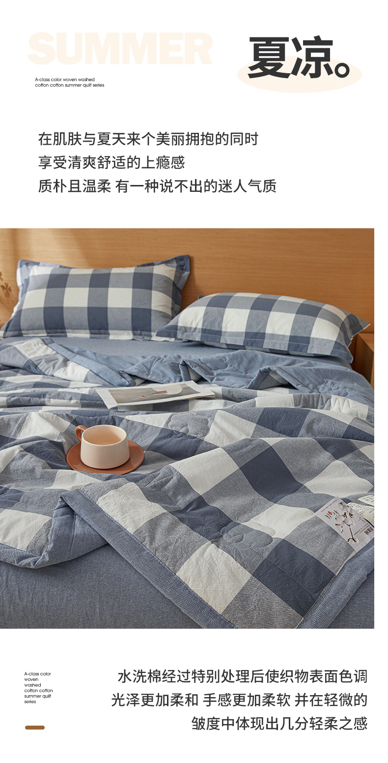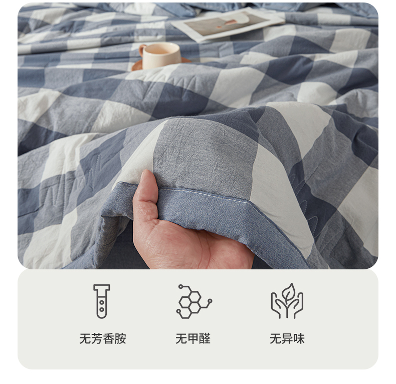 被子 > 夏被 > 西域种棉人·千百笠 2025新款A类100%新疆棉花夏凉被纯棉全棉填充原棉空调被手工宽边水洗棉夏被 蓝中格
