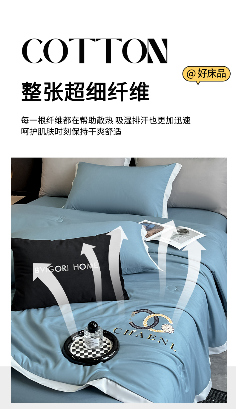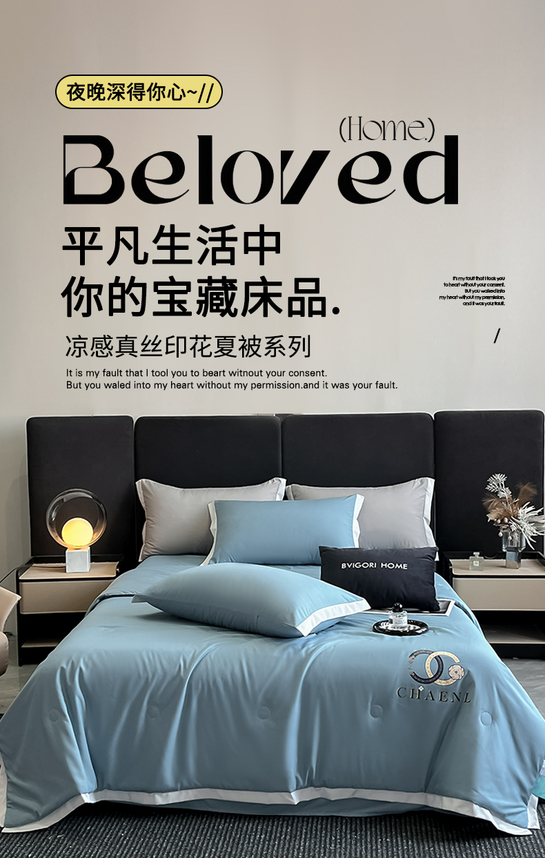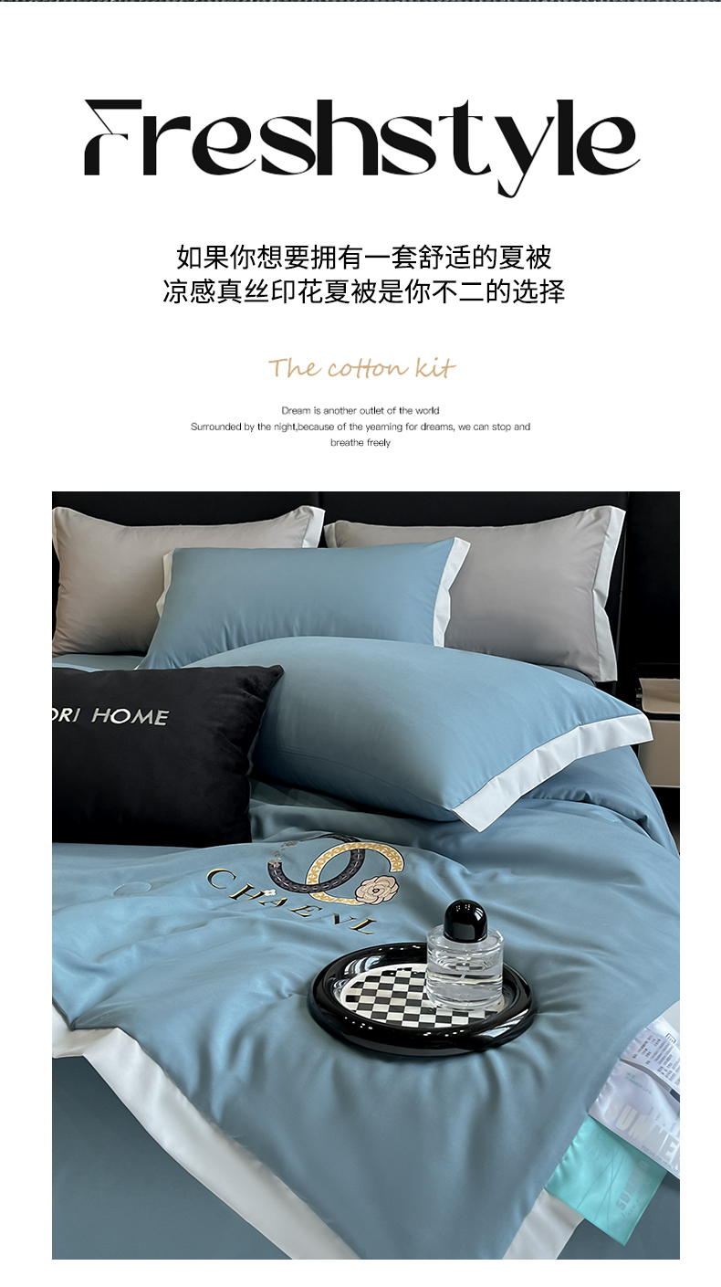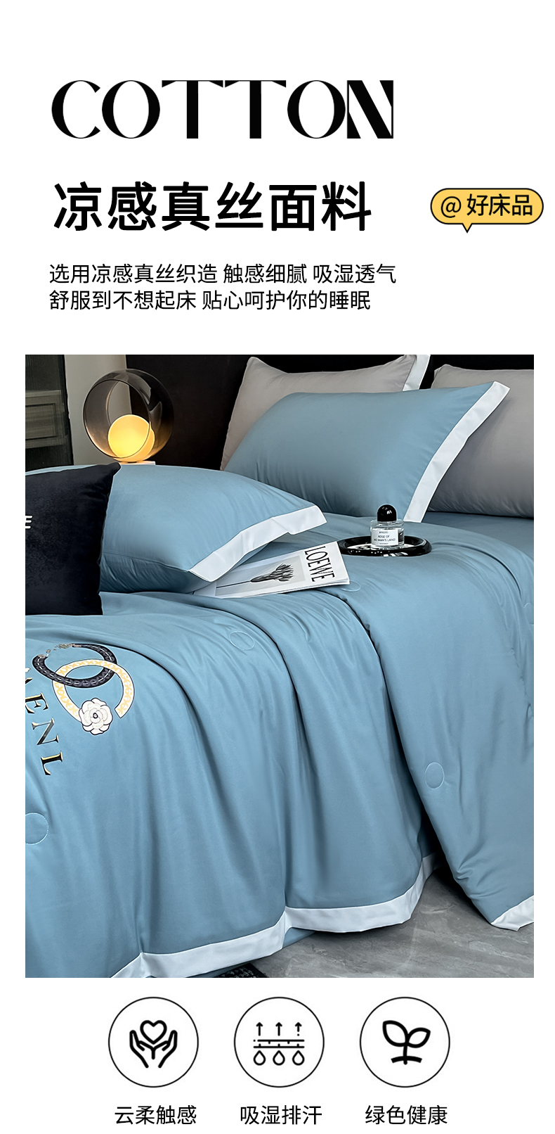 昊翔家纺 2025新款凉感真丝印花夏被系列 深海蓝