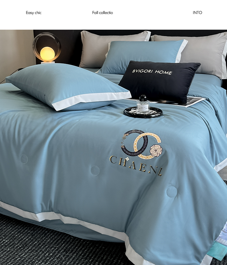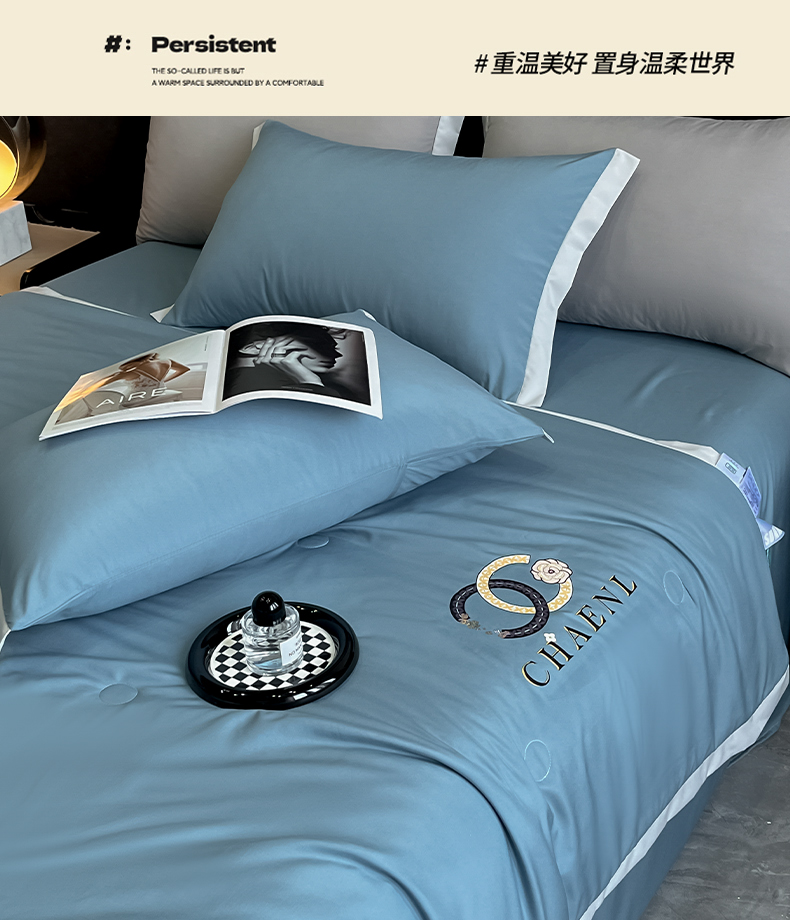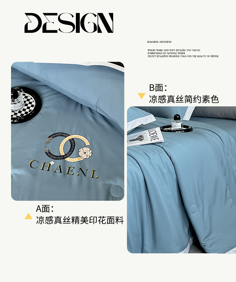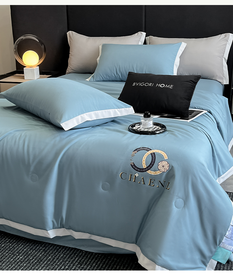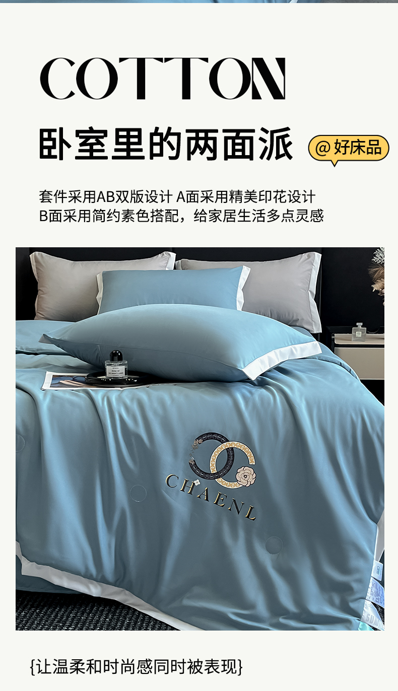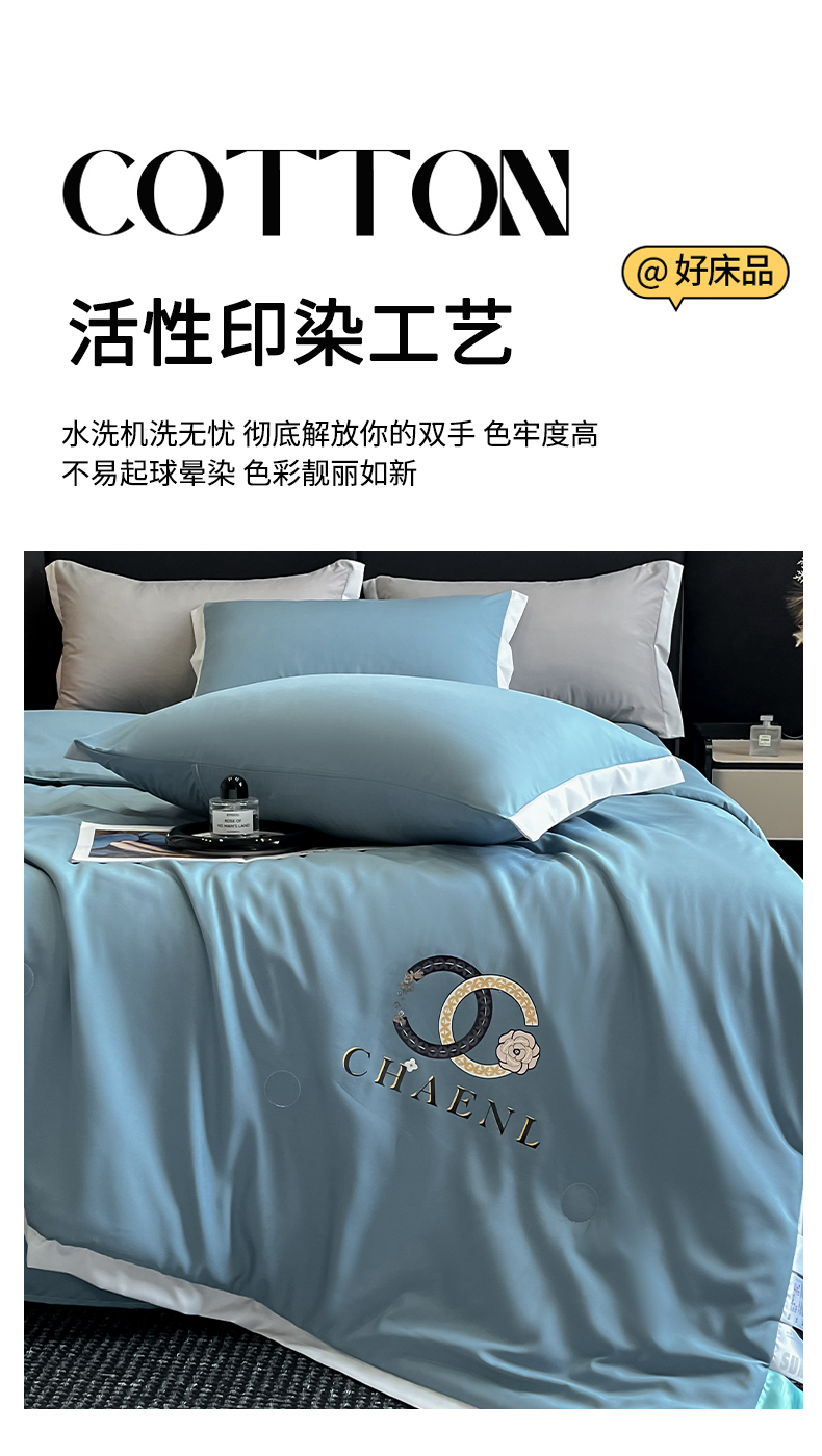 昊翔家纺 2025新款凉感真丝印花夏被系列 深海蓝