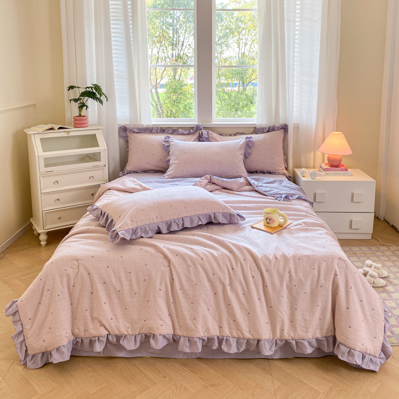 (总)欧尚 2025新款牛奶绒花边床盖四件套,粉点点,花小玉,咖色小心心,蓝点点,慕然,仙女粉,仙女紫