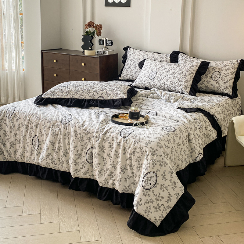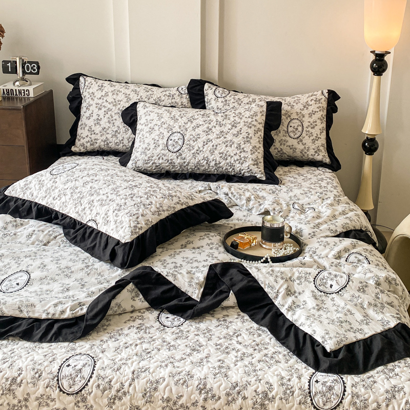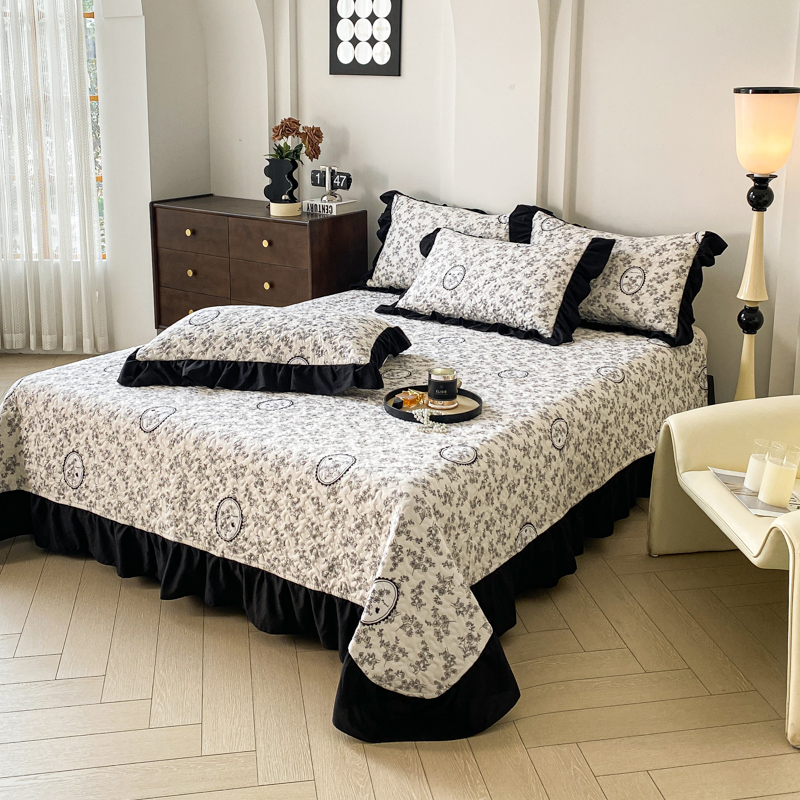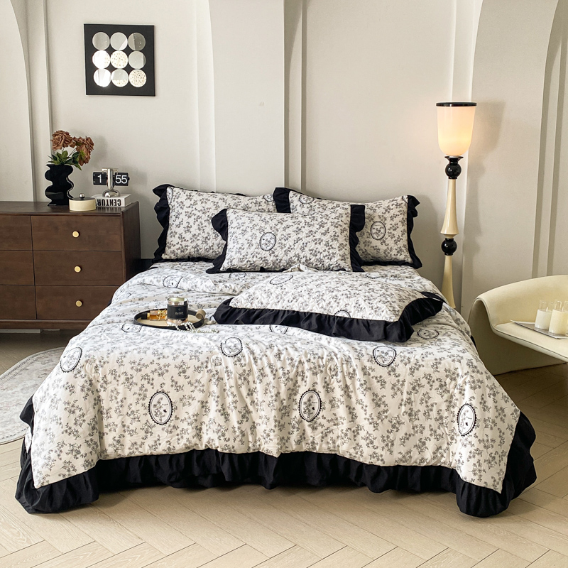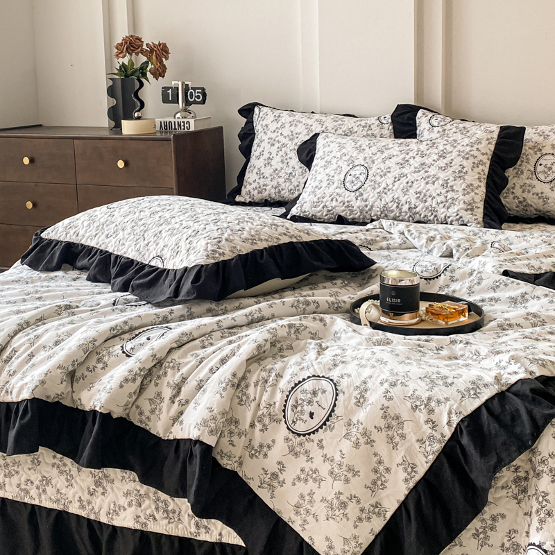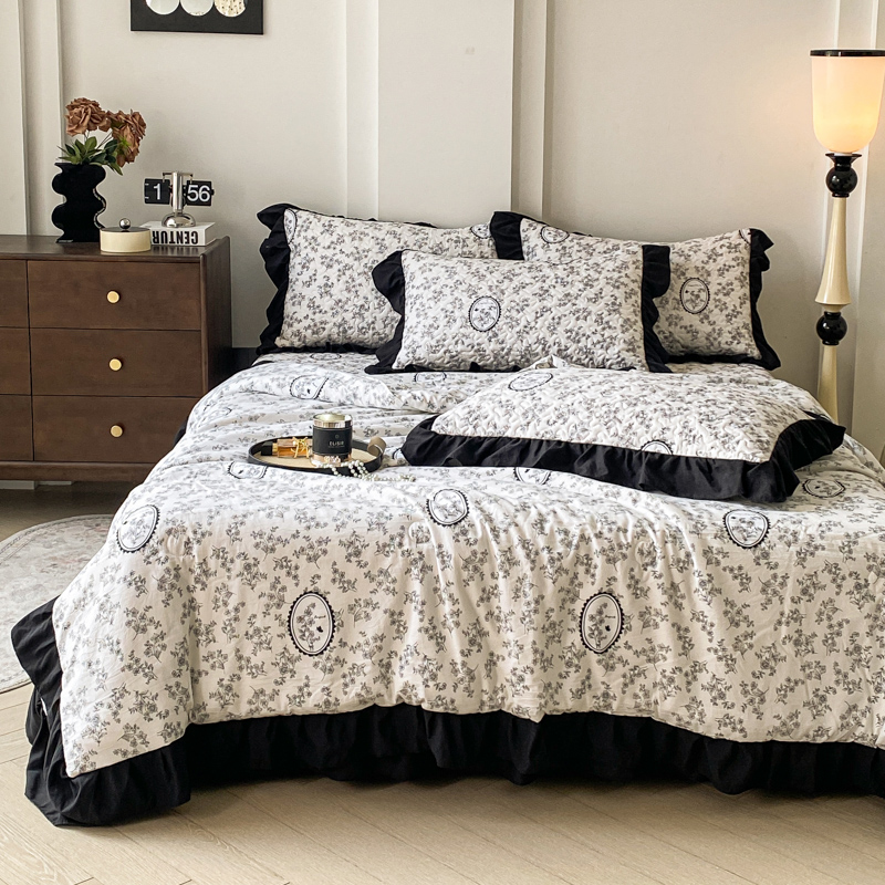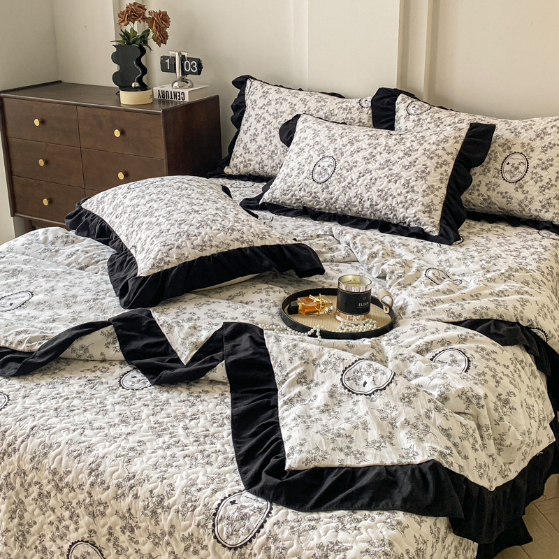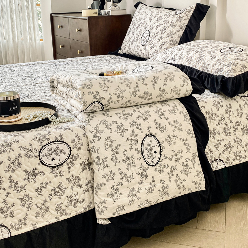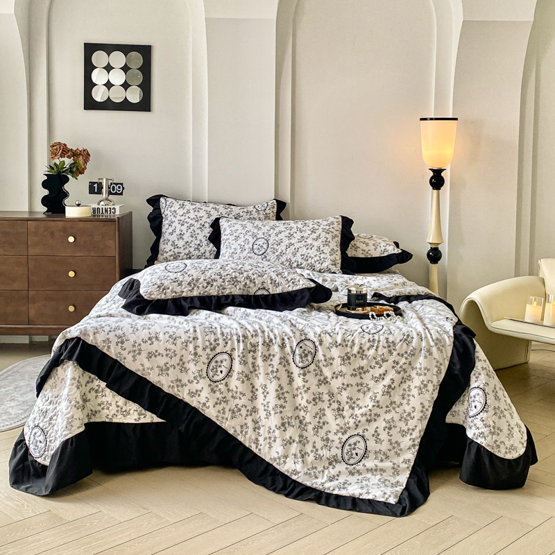 商品名称:欧尚 2025新款黑白赫本风轻奢款床盖夏被四件套 花语