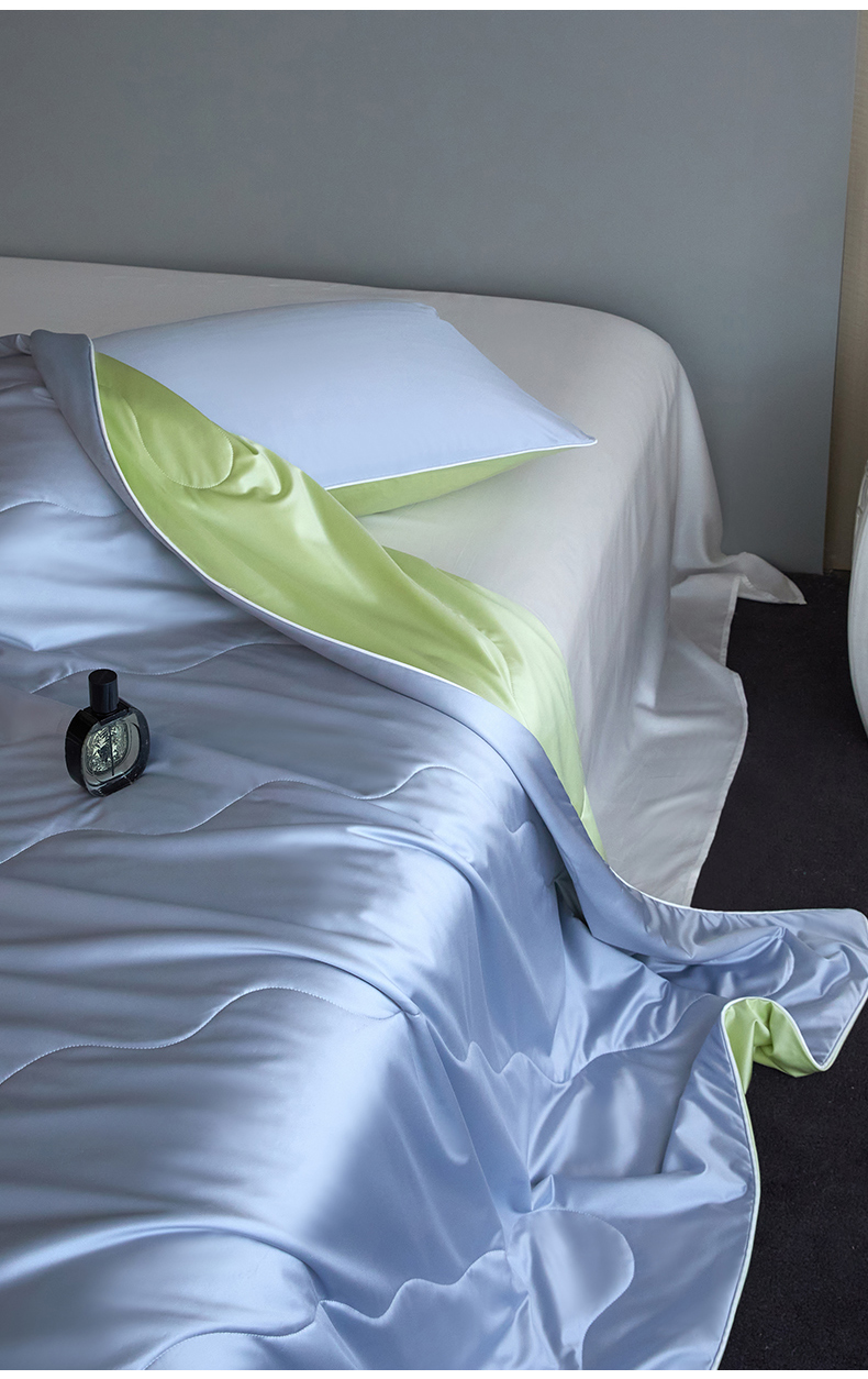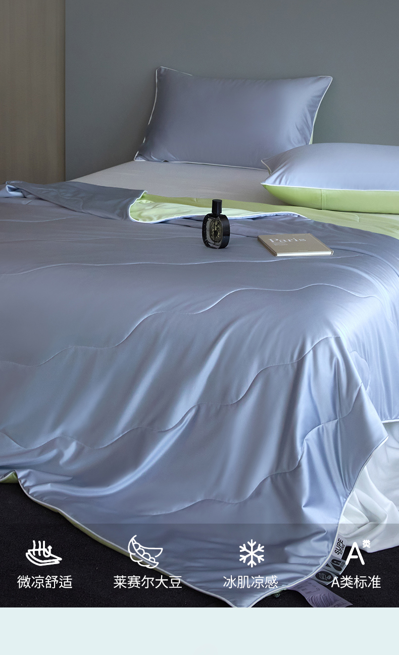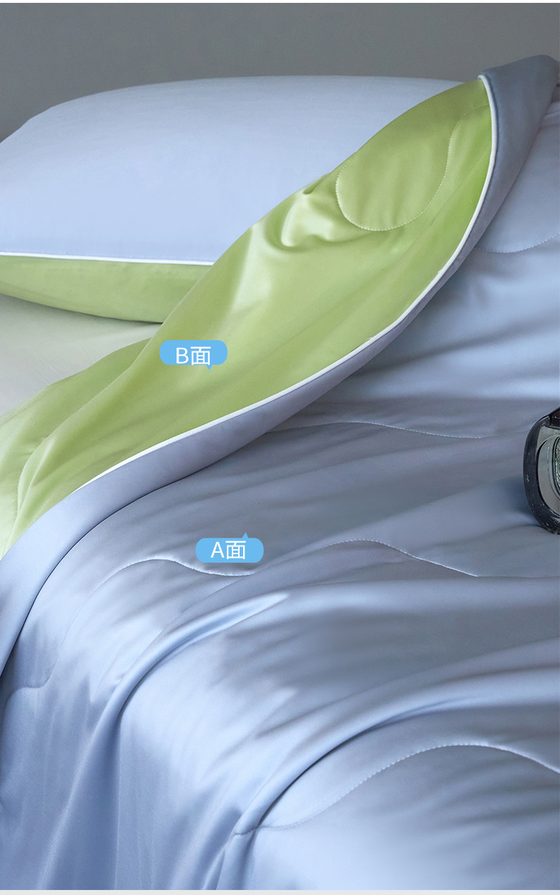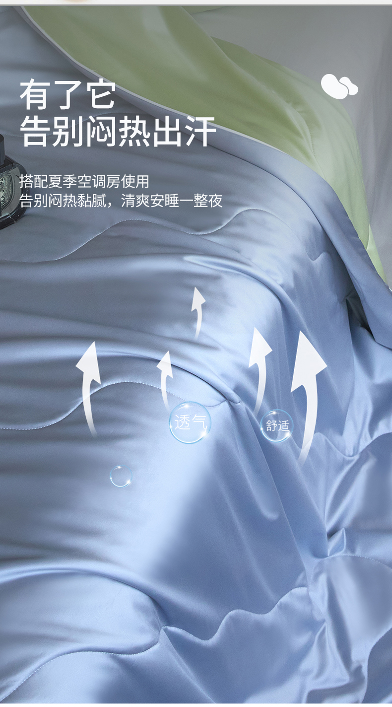 商品名称:头等舱 2025新款水光缎冰肌锦氨A类55植物大豆7A抗菌夏被配礼盒 水光兰配水光绿
