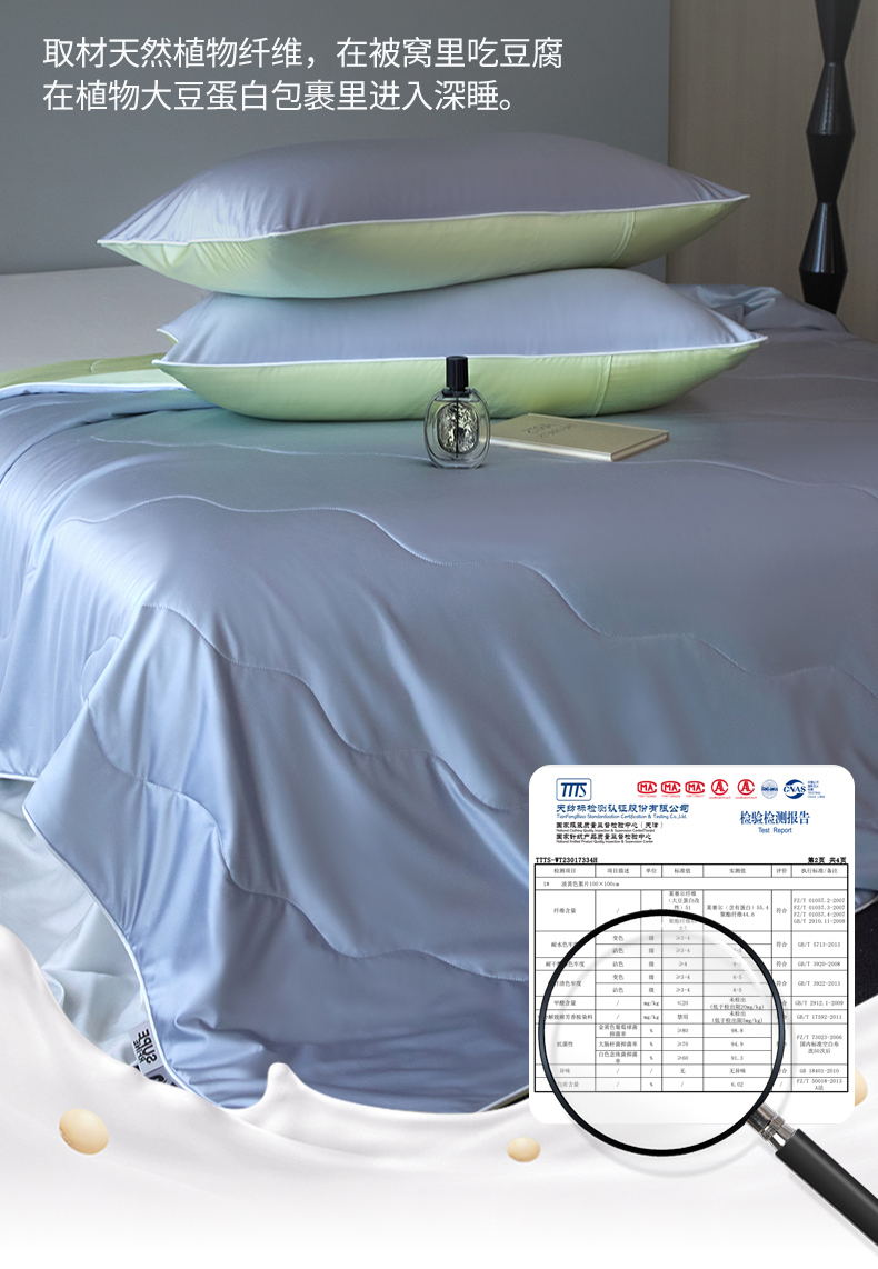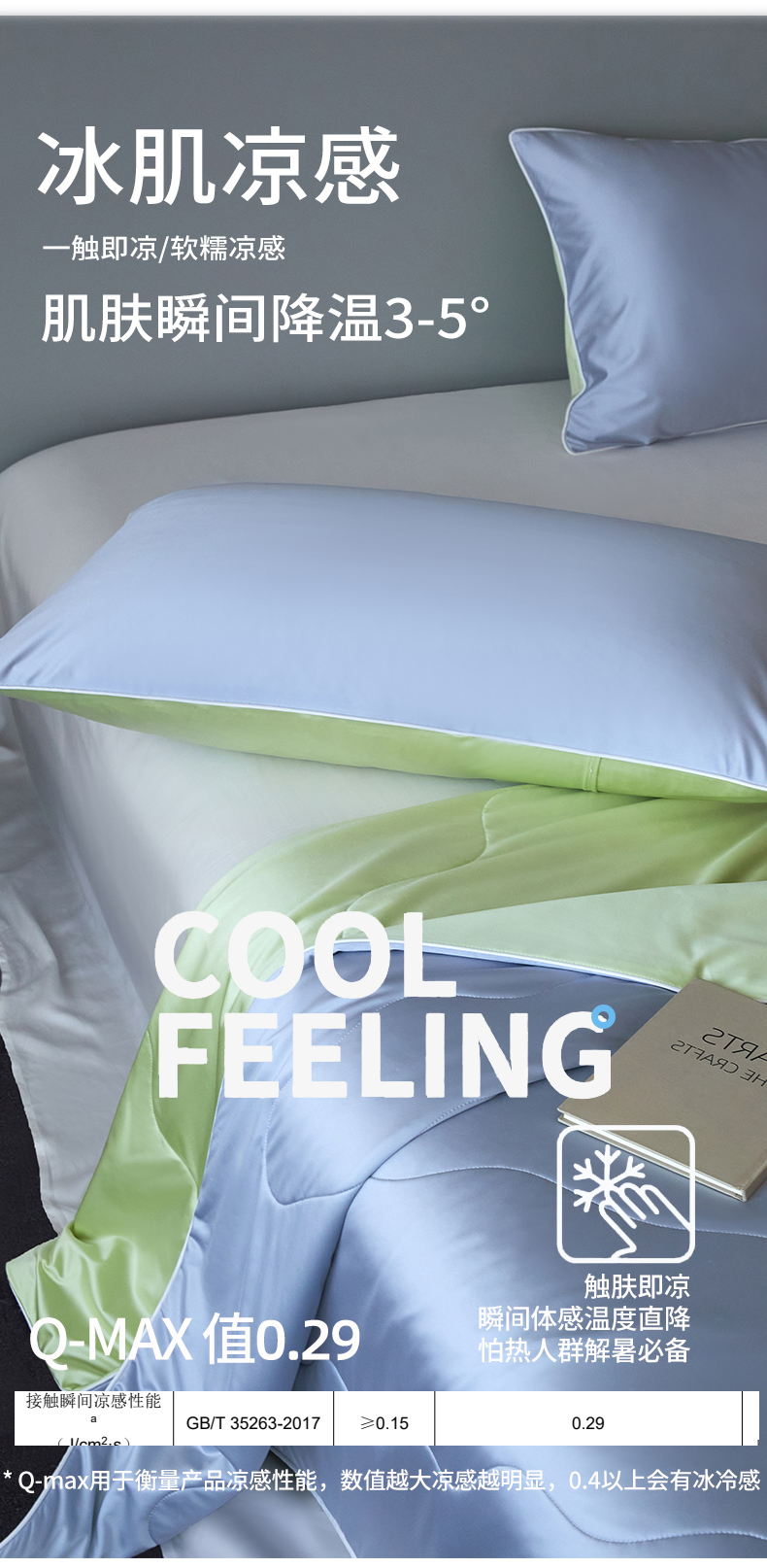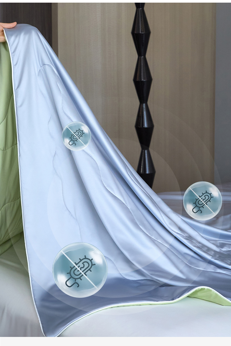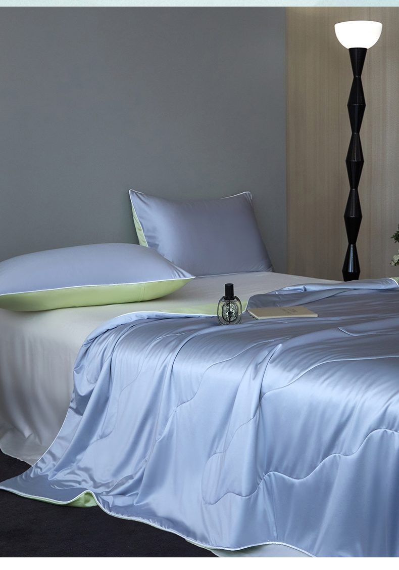 商品名称:头等舱 2025新款水光缎冰肌锦氨A类55植物大豆7A抗菌夏被配礼盒 水光兰配水光绿