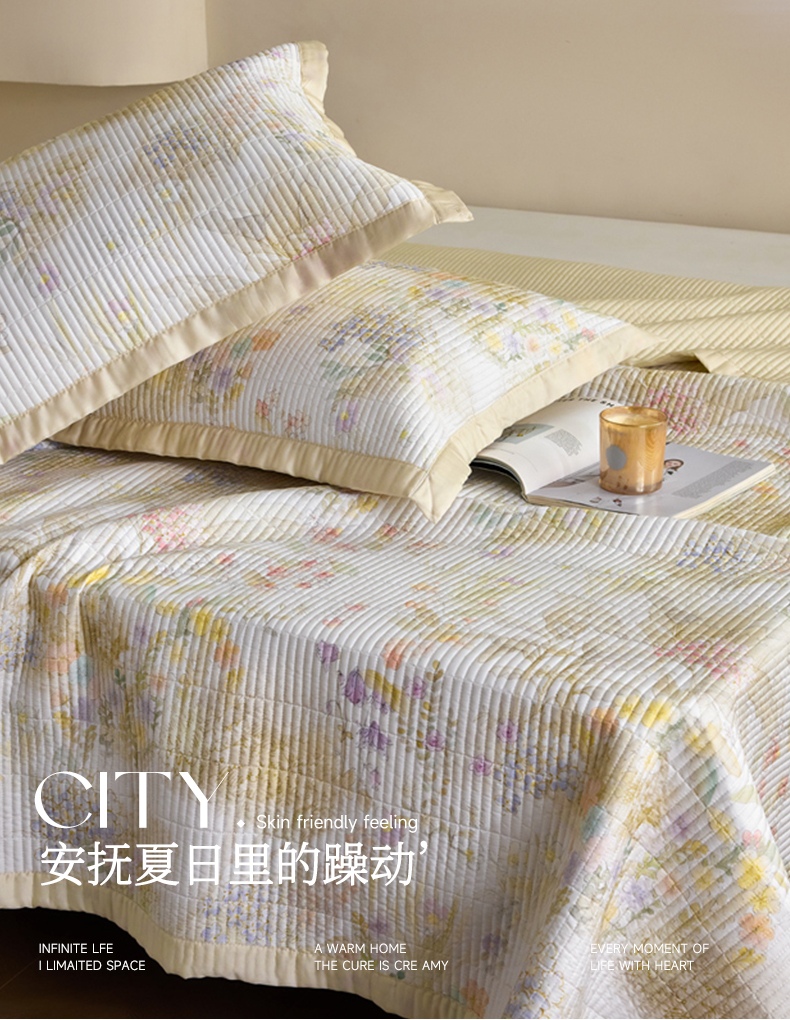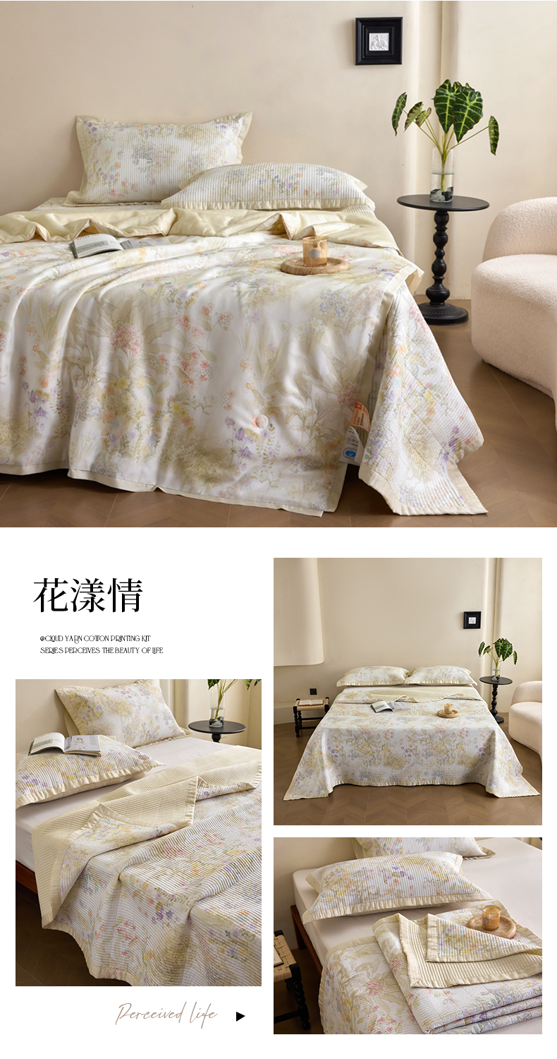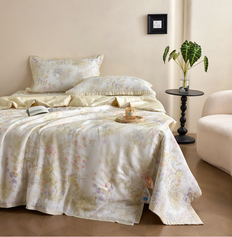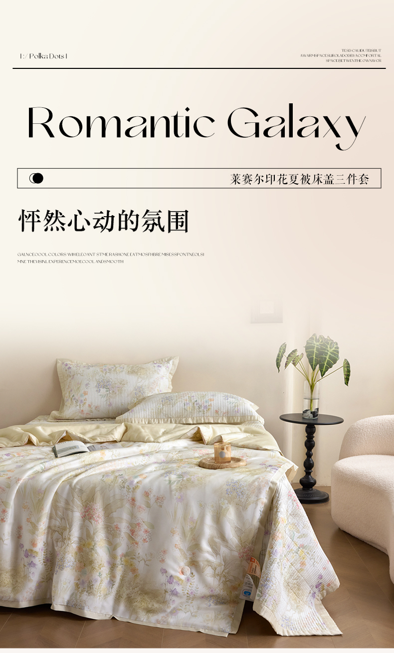 黛舒家居2025新款天丝水洗印花夏被床盖三件套 花漾情