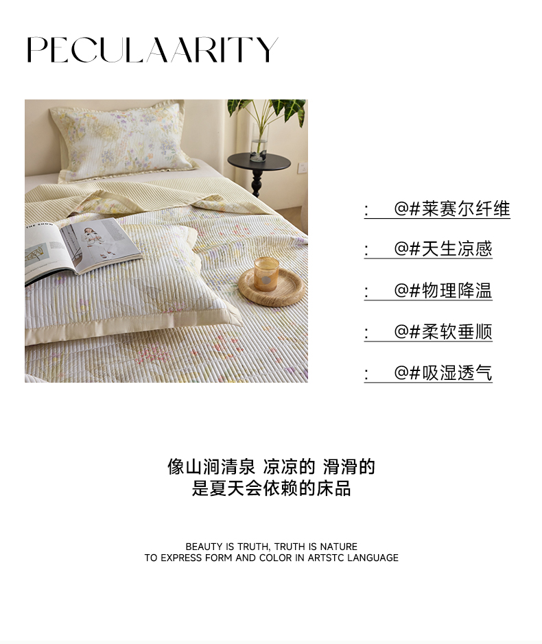 商品名称:黛舒家居2025新款天丝水洗印花夏被床盖三件套 花漾情