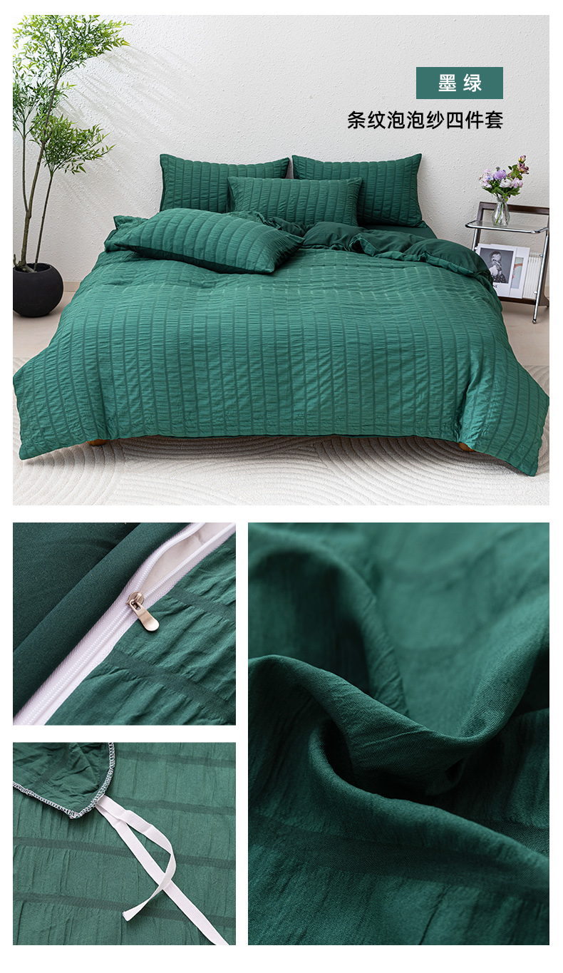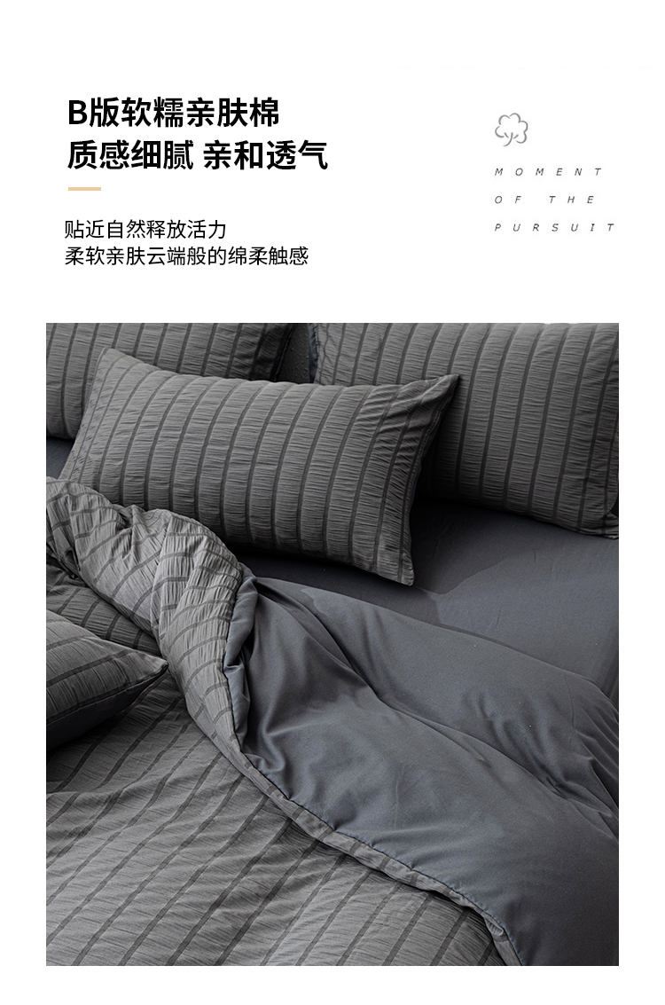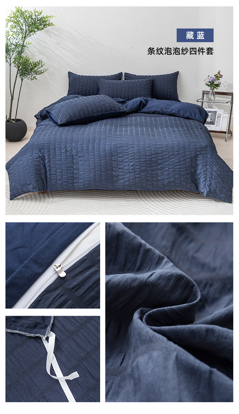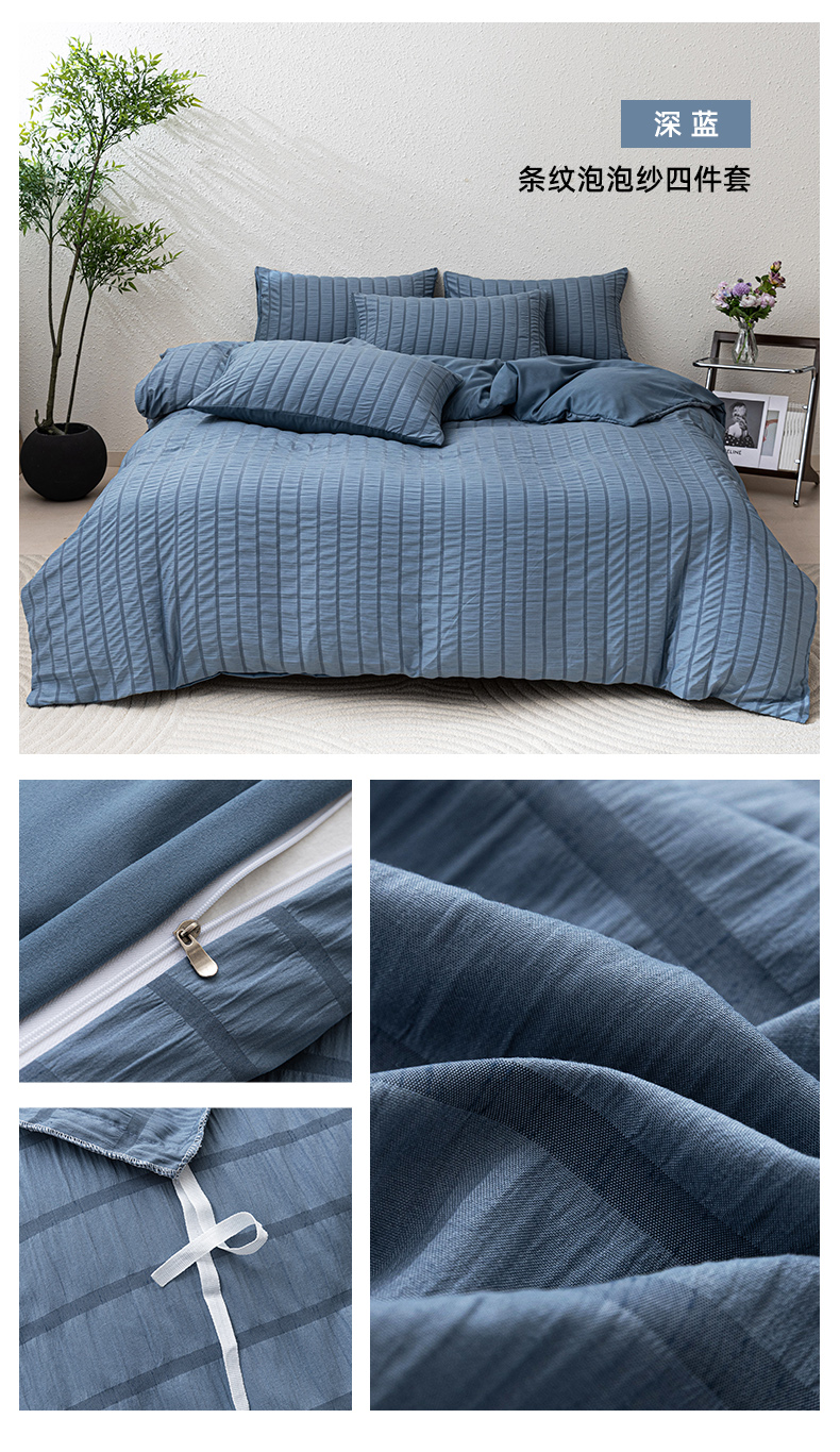 商品名称:恩和家纺 2025新款条纹立体泡泡纱亲肤棉四件套 深蓝