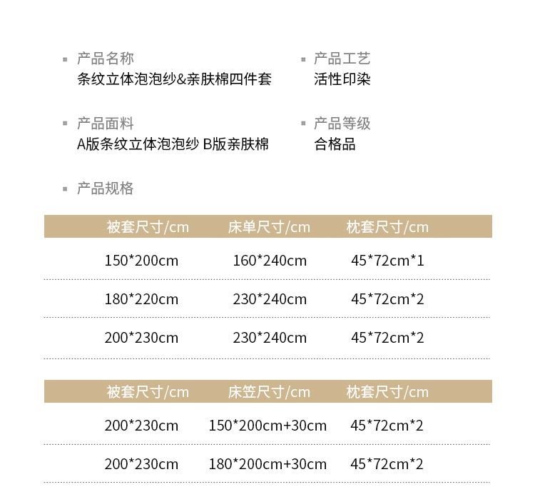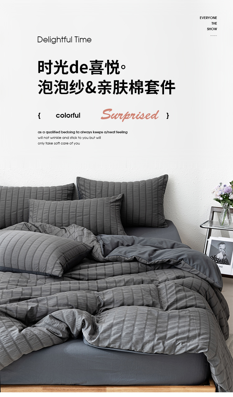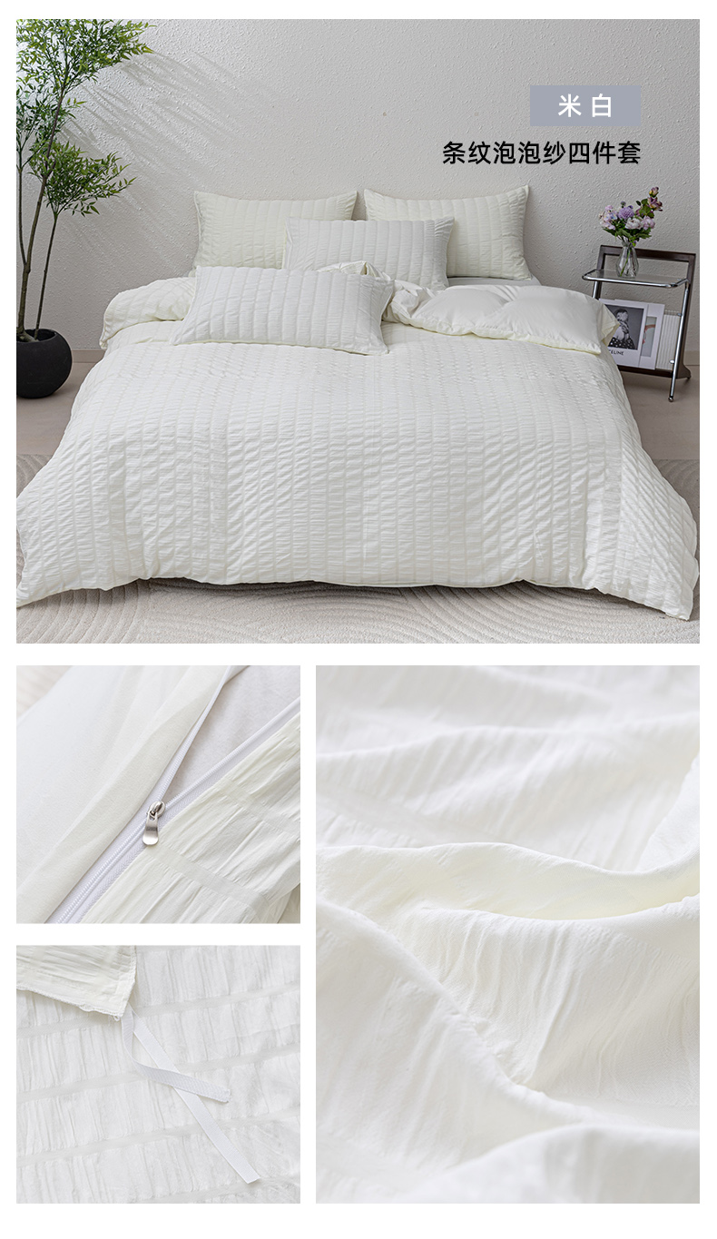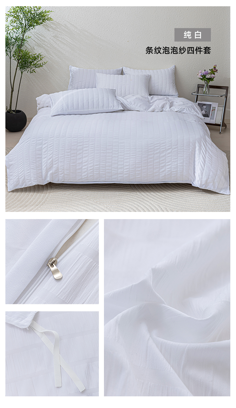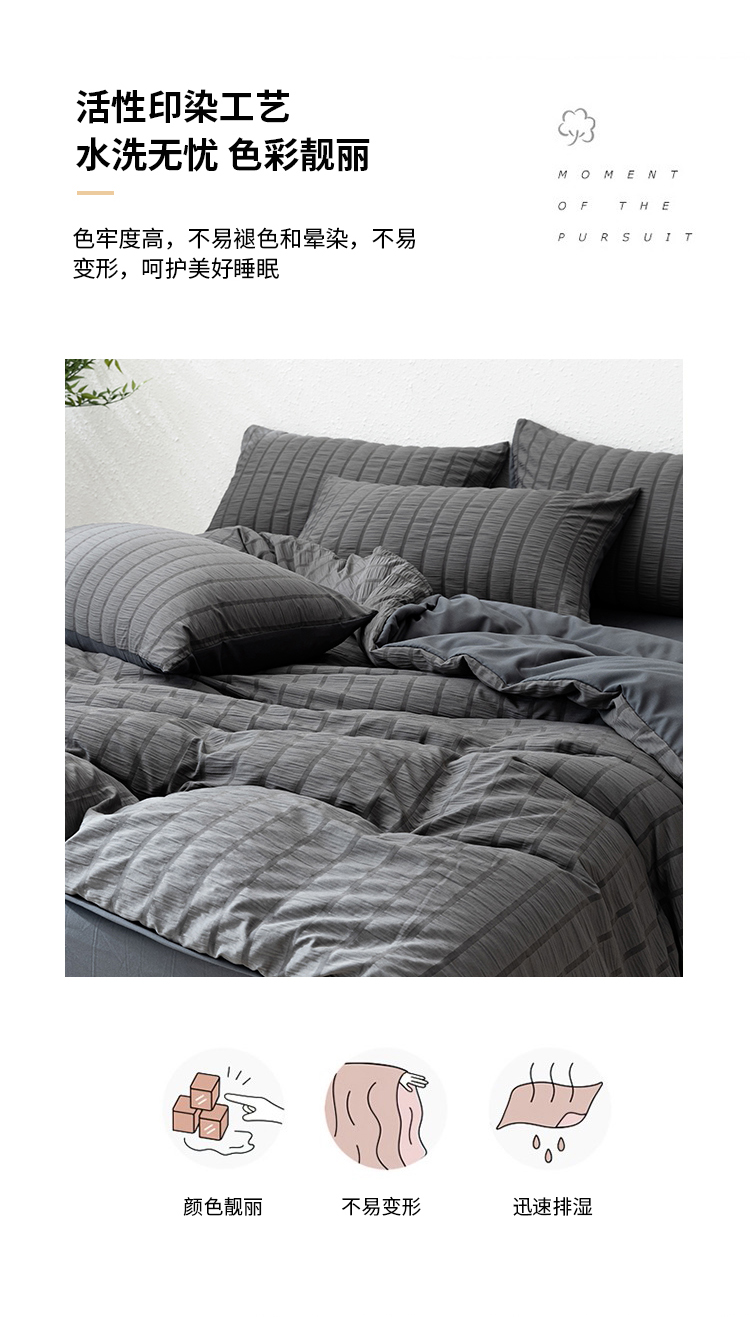商品名称:恩和家纺 2025新款条纹立体泡泡纱亲肤棉四件套 深蓝