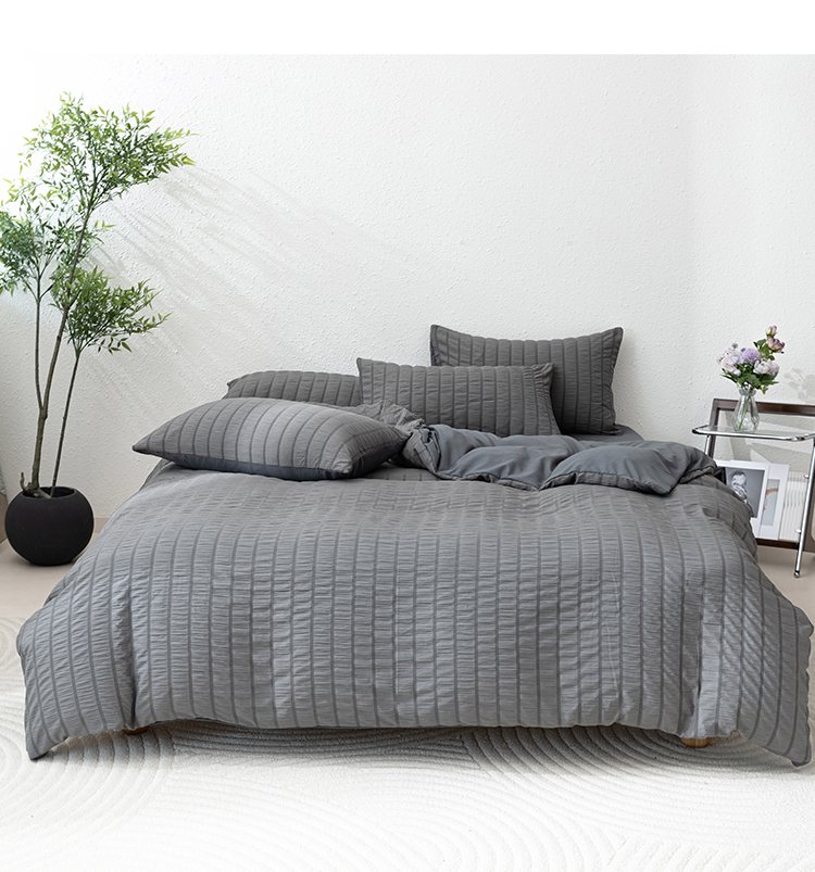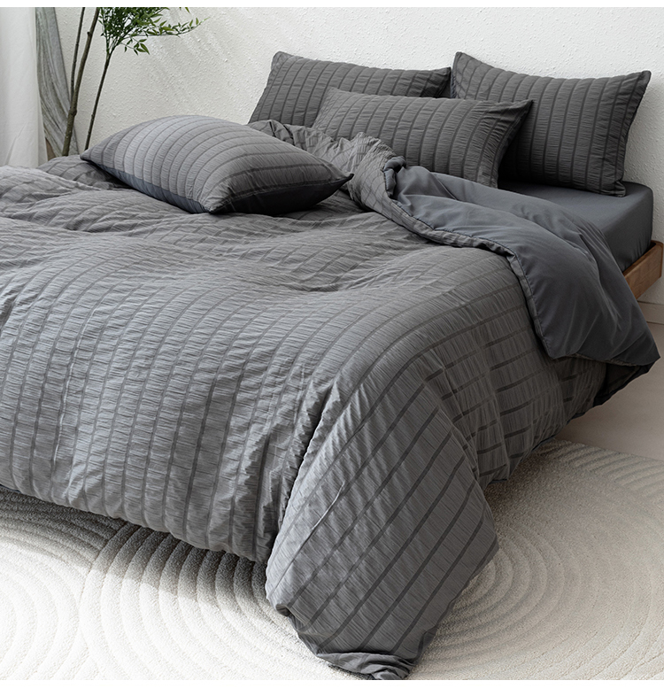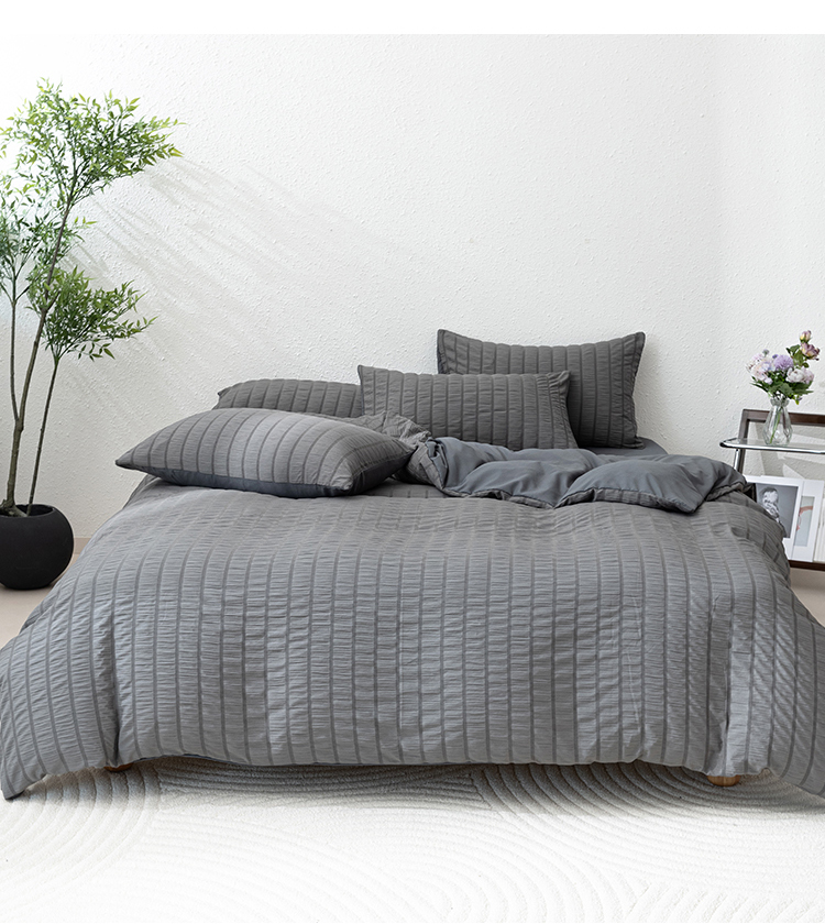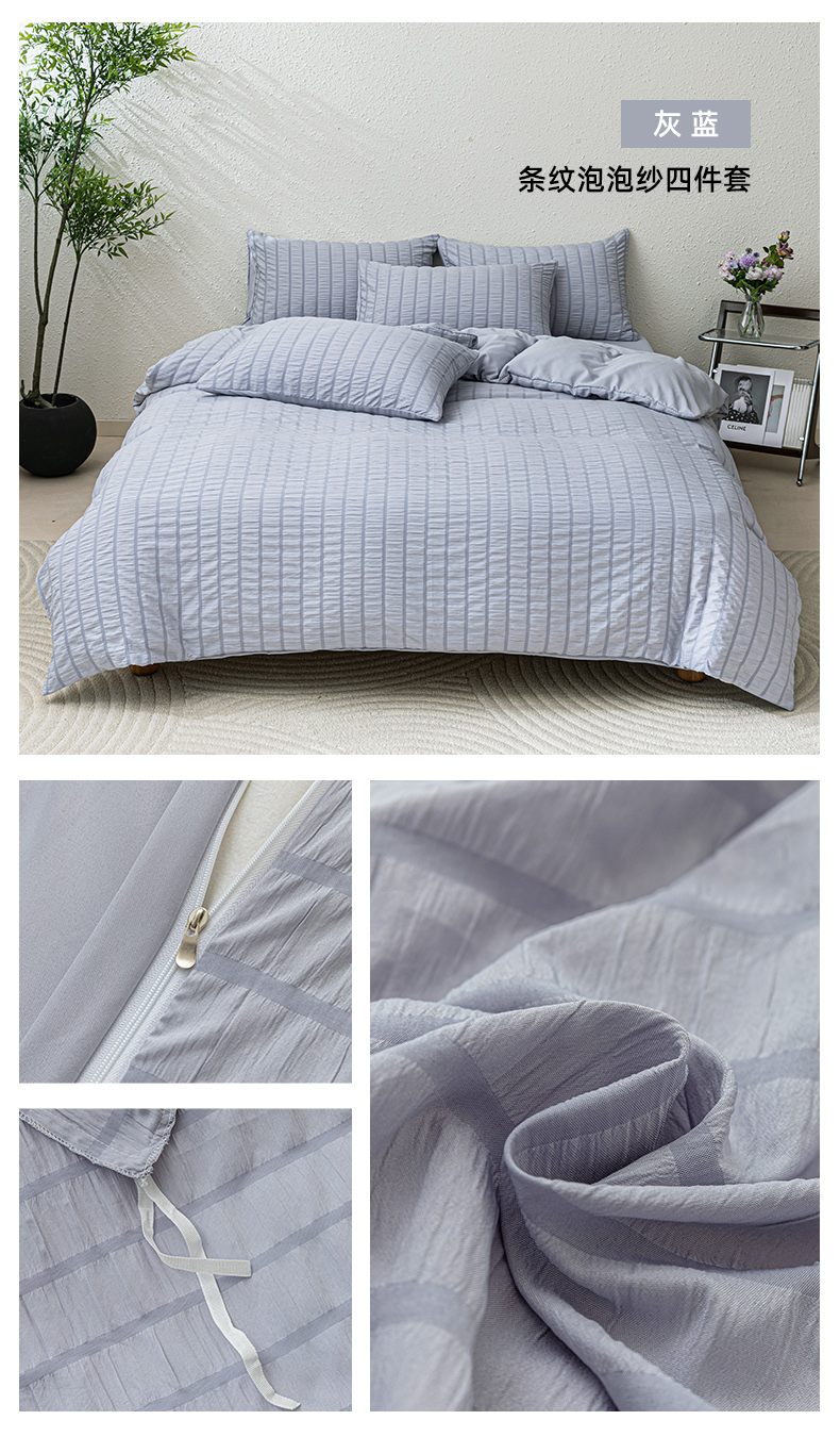 恩和家纺 2025新款条纹立体泡泡纱亲肤棉四件套 深蓝
