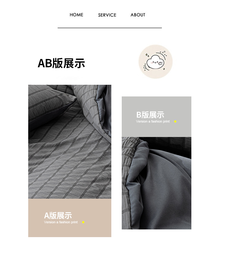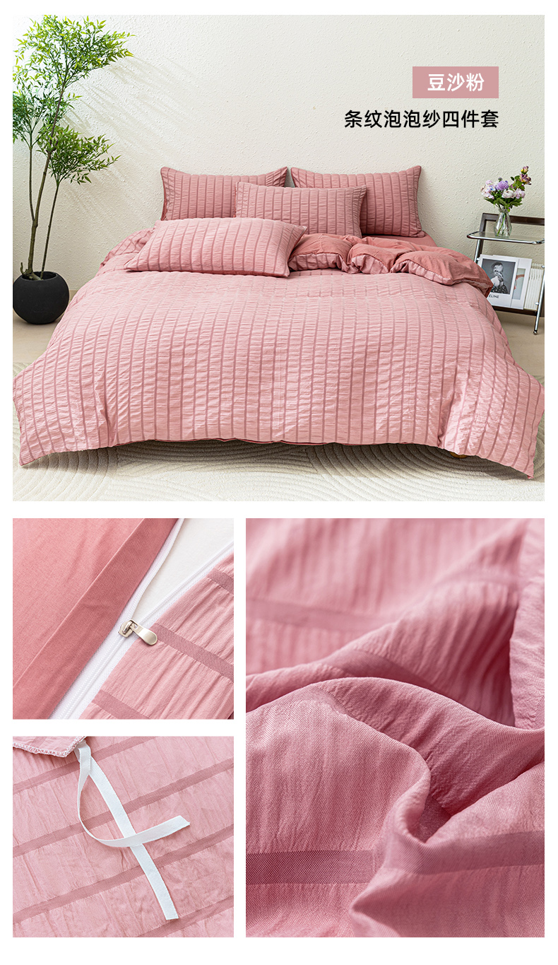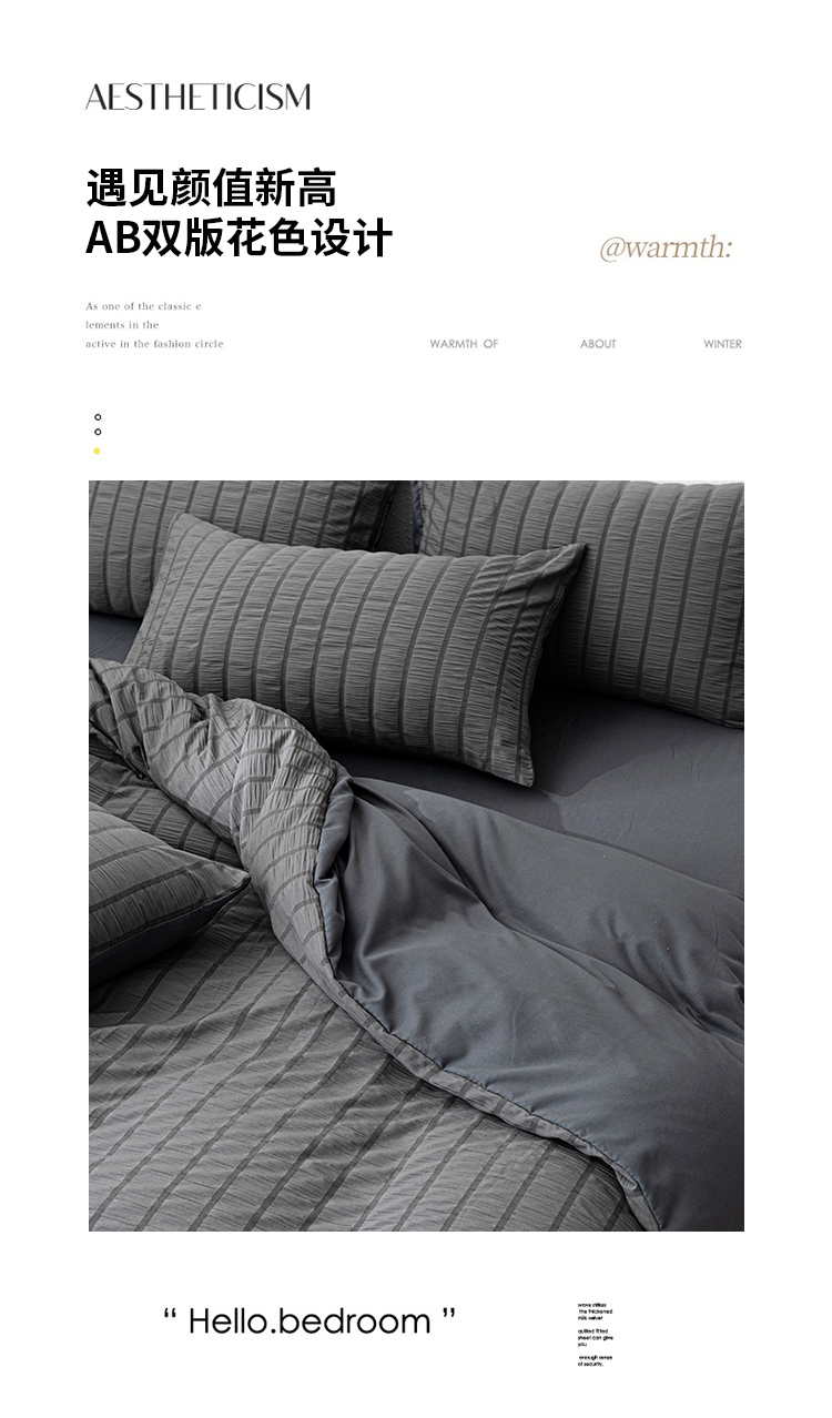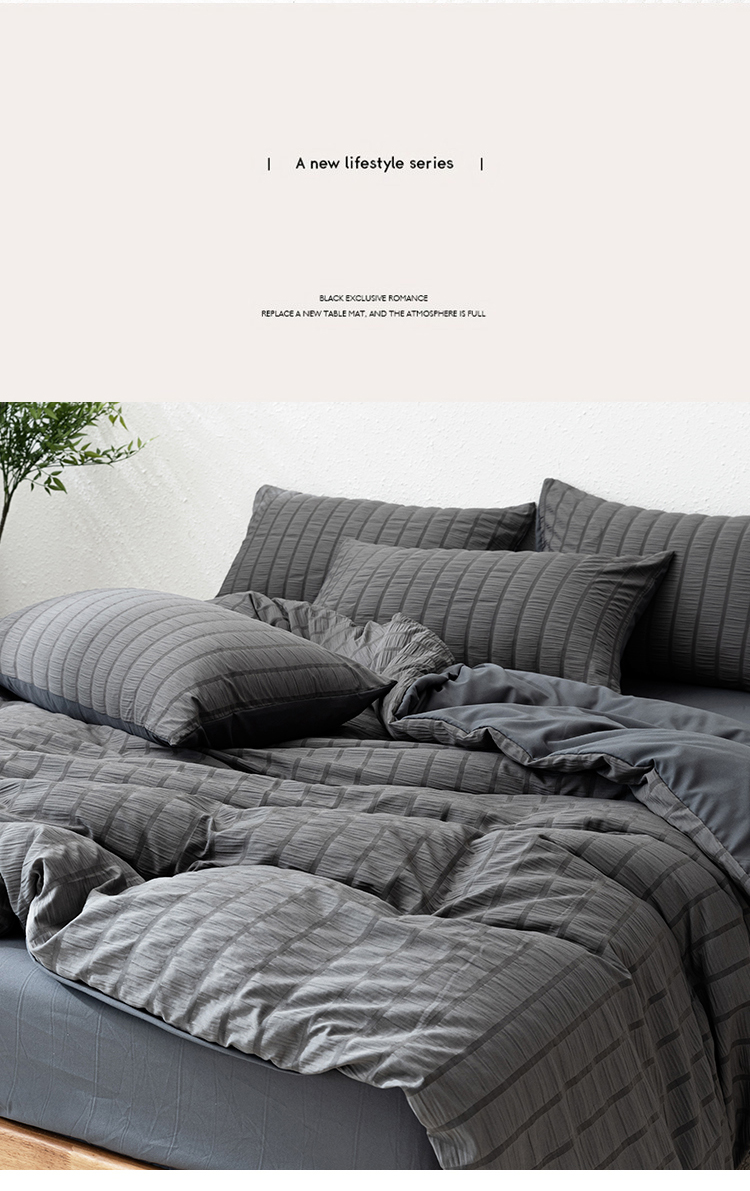 恩和家纺 2025新款条纹立体泡泡纱亲肤棉四件套 深蓝