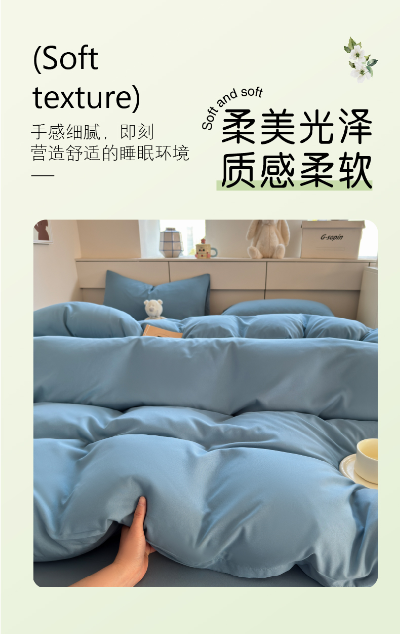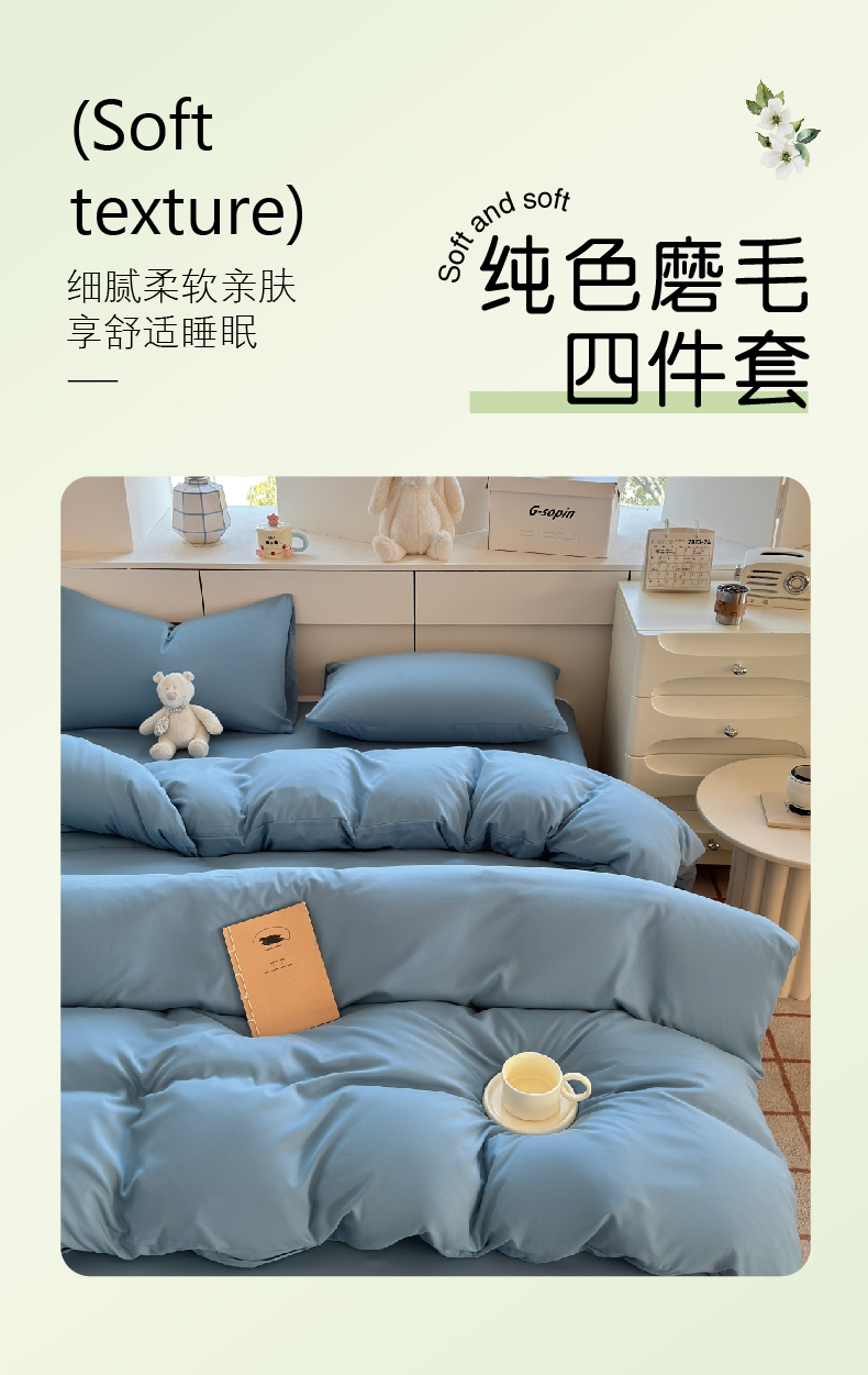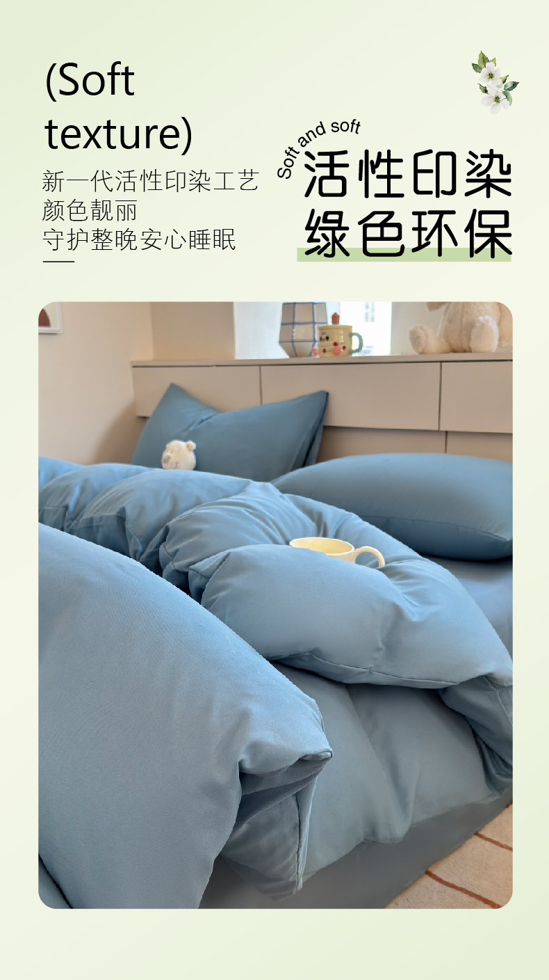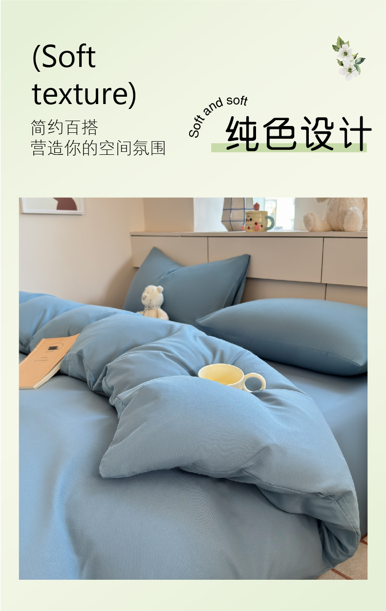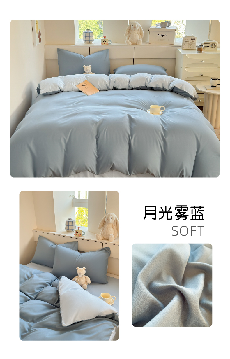 当前位置: 91家纺网 > 商品网购 > 床品套件 > 四件套 > 磨毛活性四件套 > 可可家纺 2025新款ins风纯色磨毛简约水洗棉四件套亲肤床单被套三件套 纯月光蓝