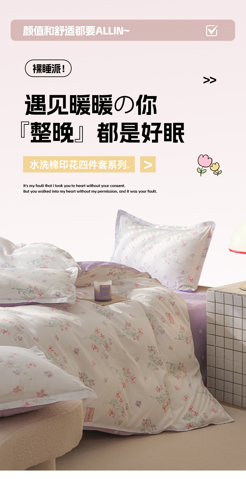 当前位置: 91家纺网 > 商品网购 > 床品套件 > 四件套 > 水洗棉四件套 > 布可家纺 2025新款水洗棉印花四件套系列 小樱桃