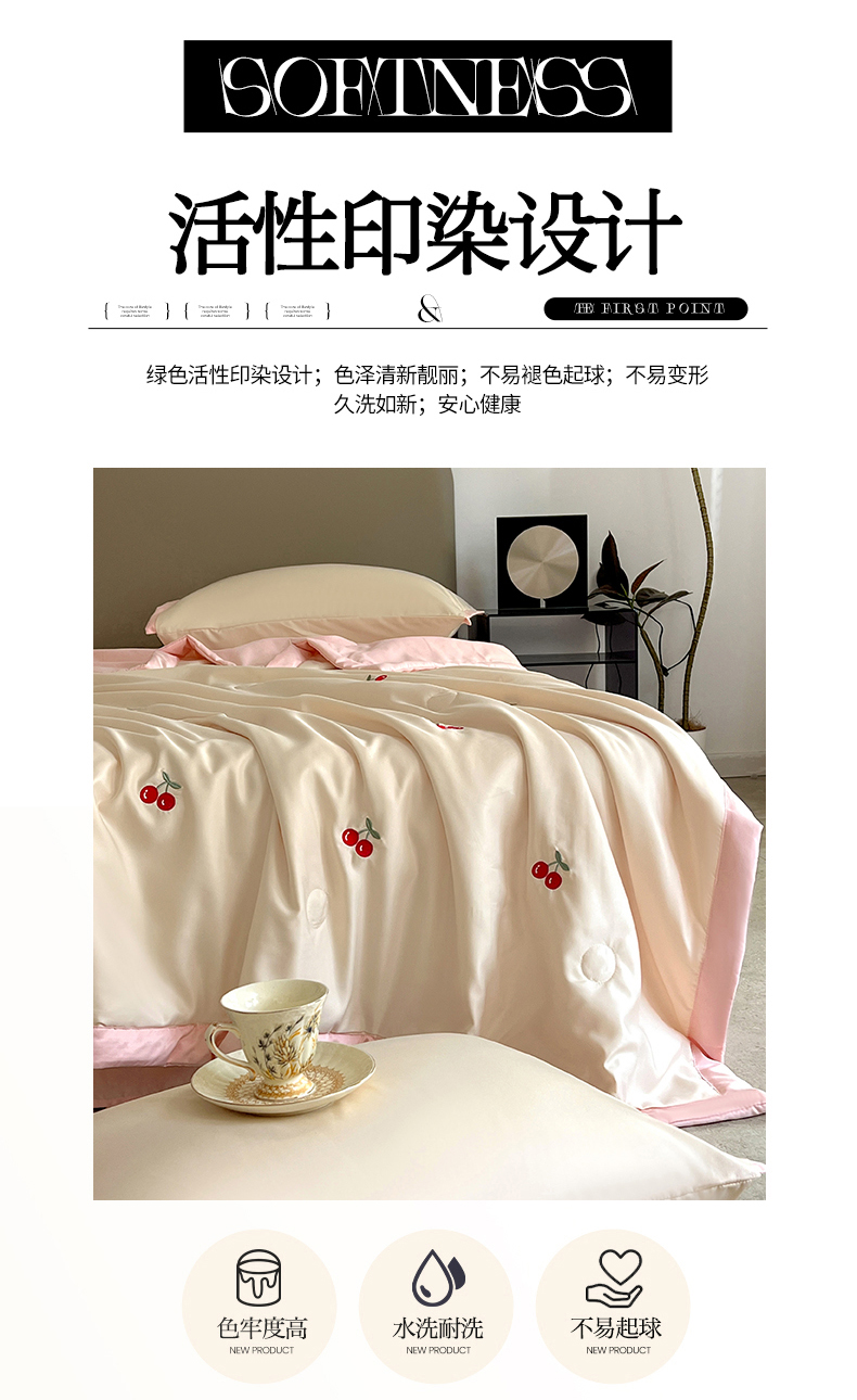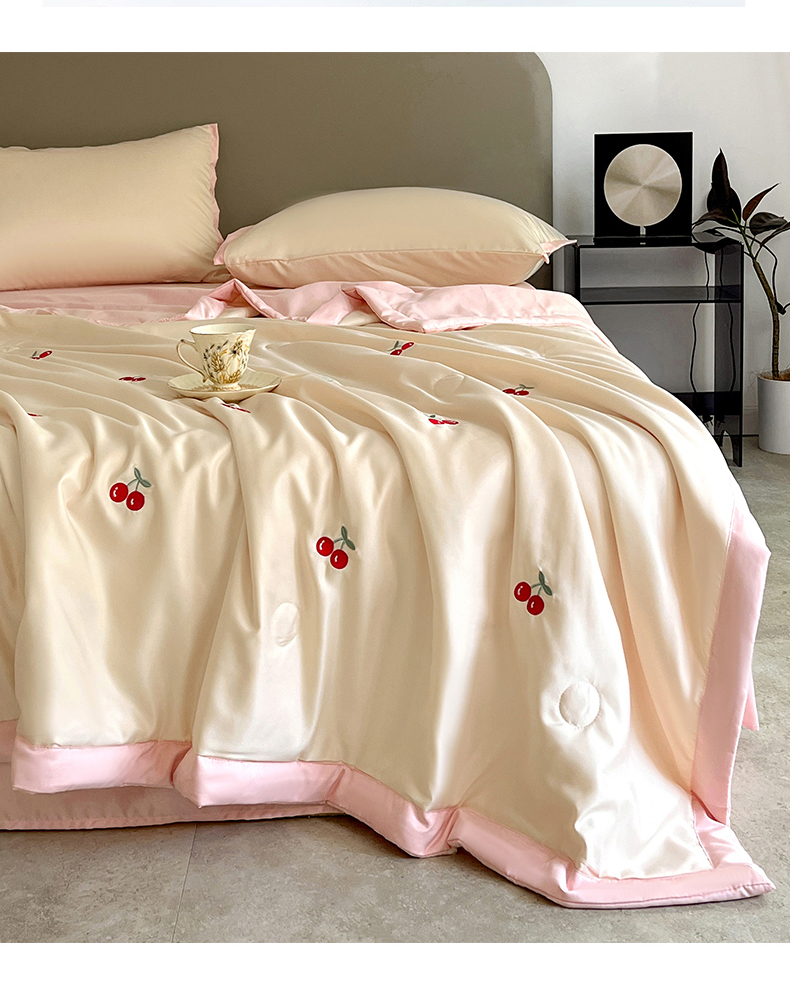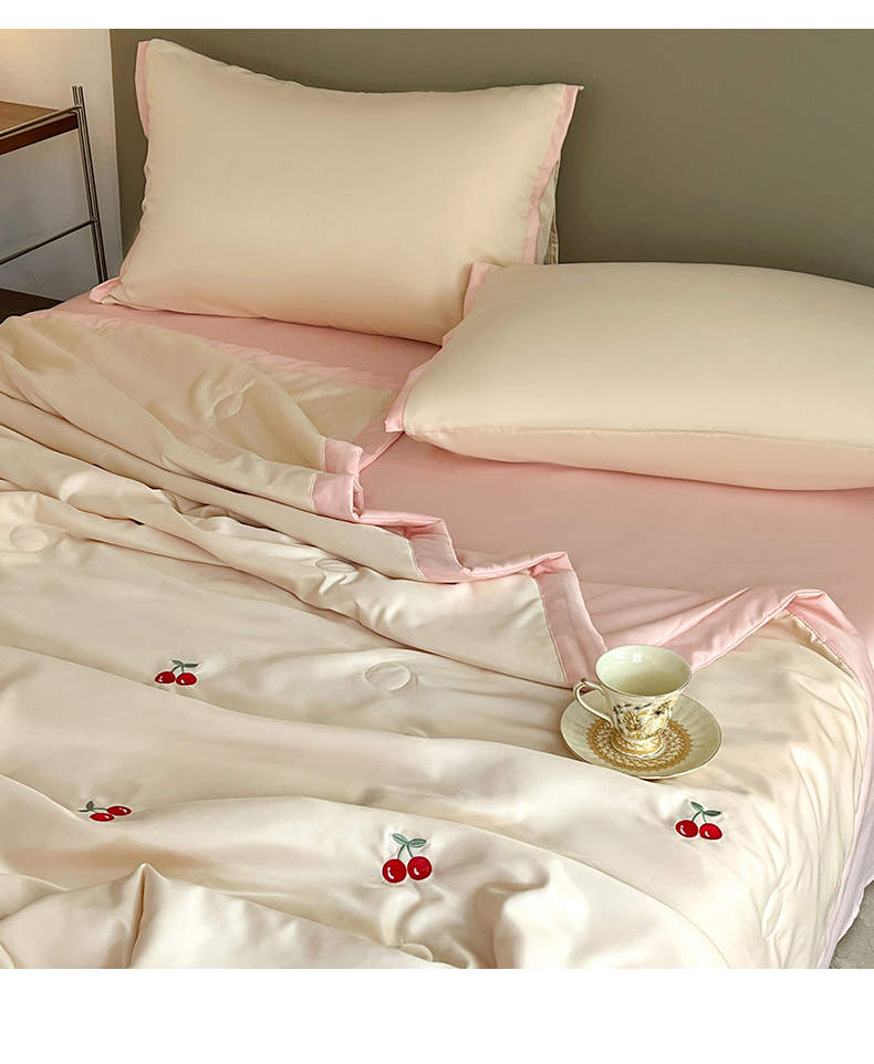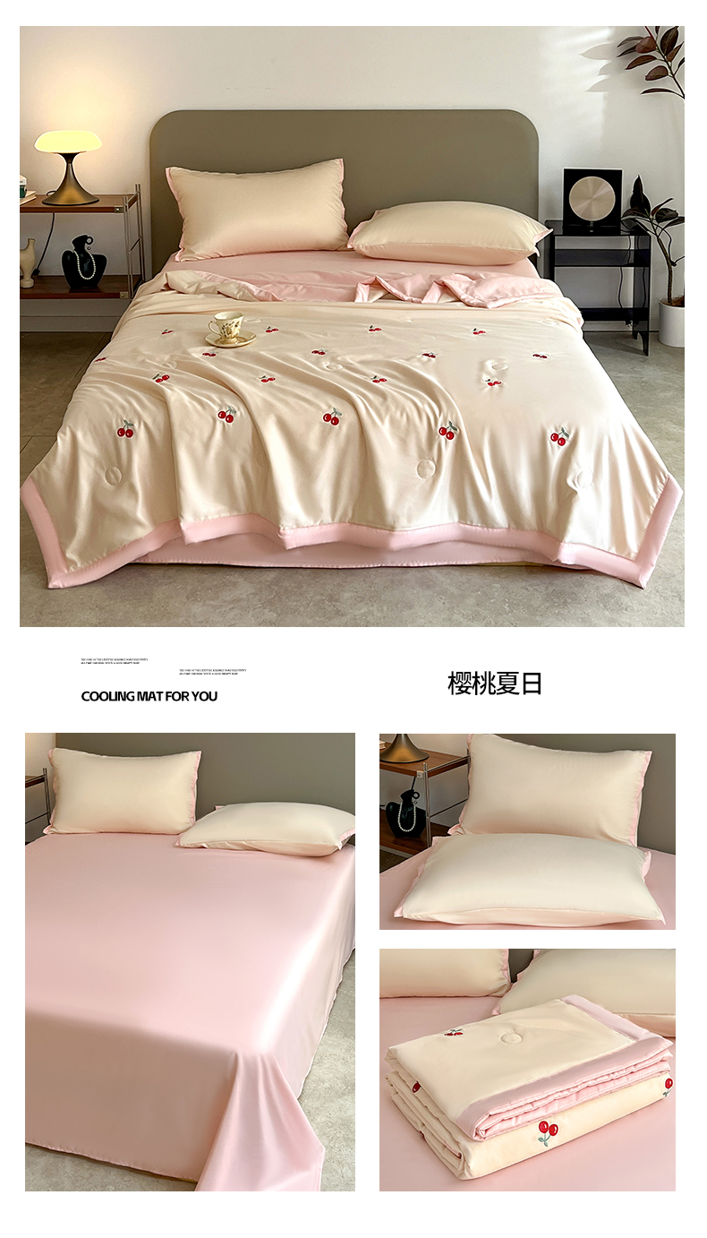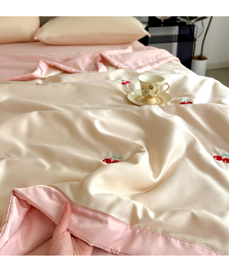 商品名称:妖妖家纺 2025春夏新款水洗冰丝绣花夏被夏凉被空调被四件套 樱桃夏日