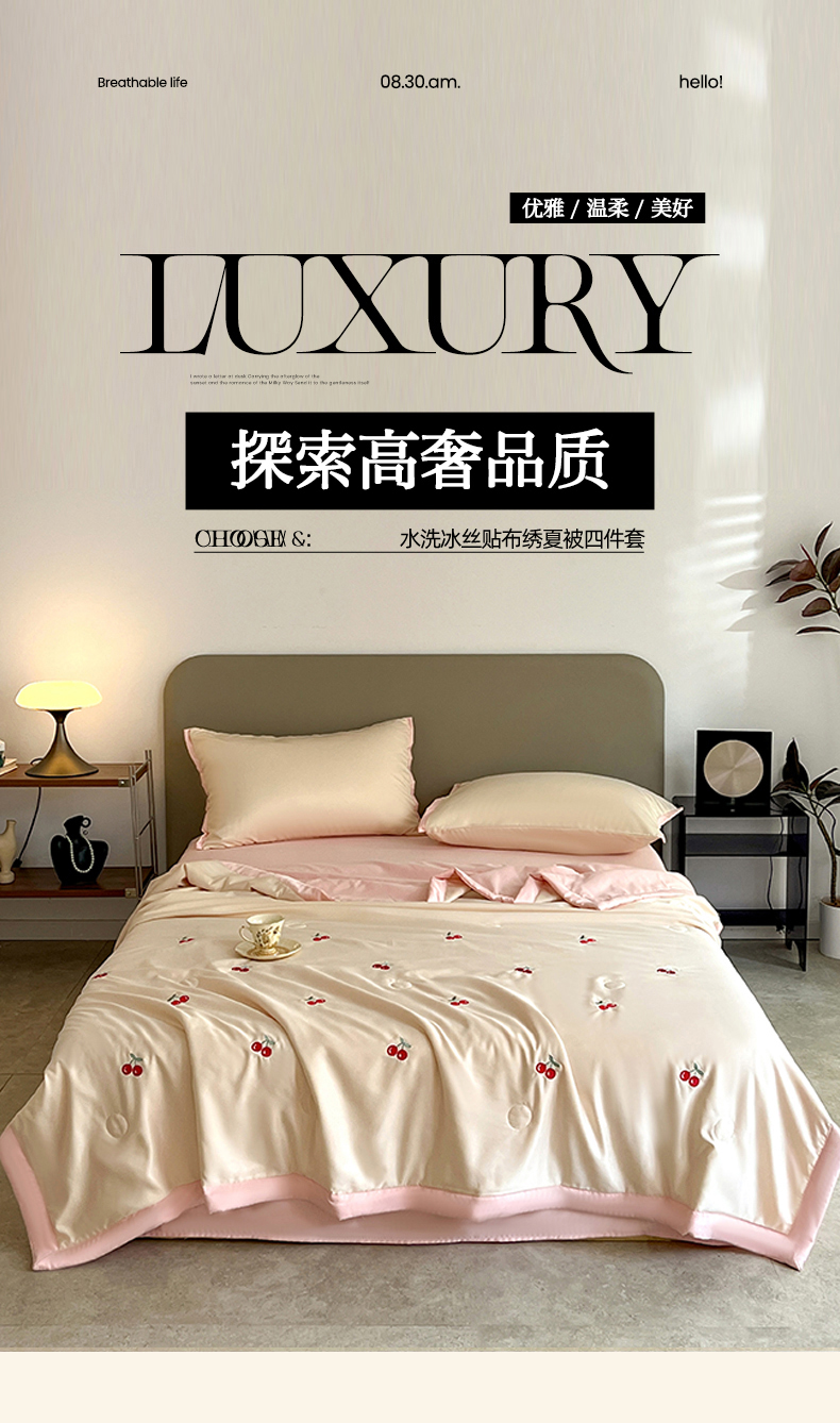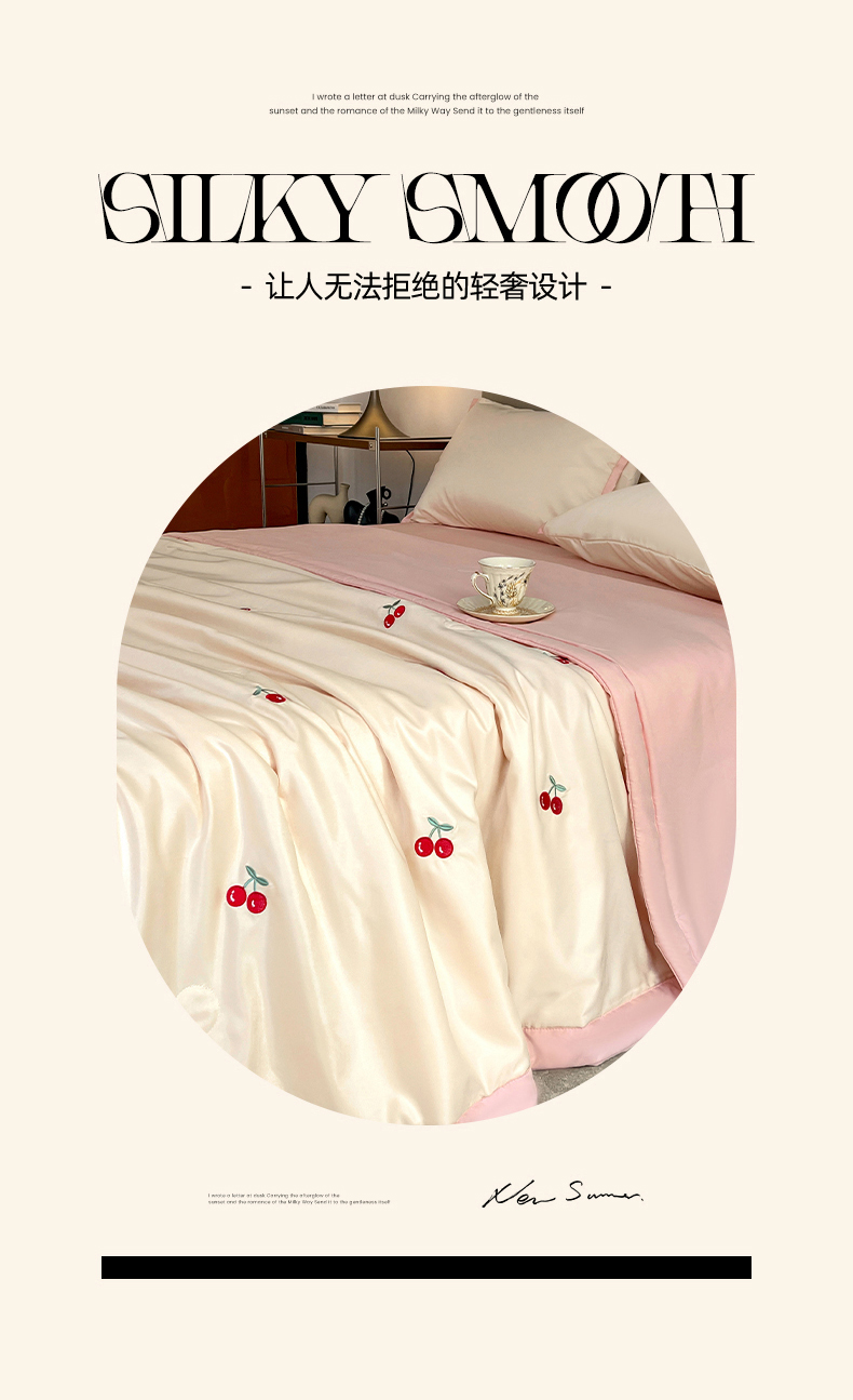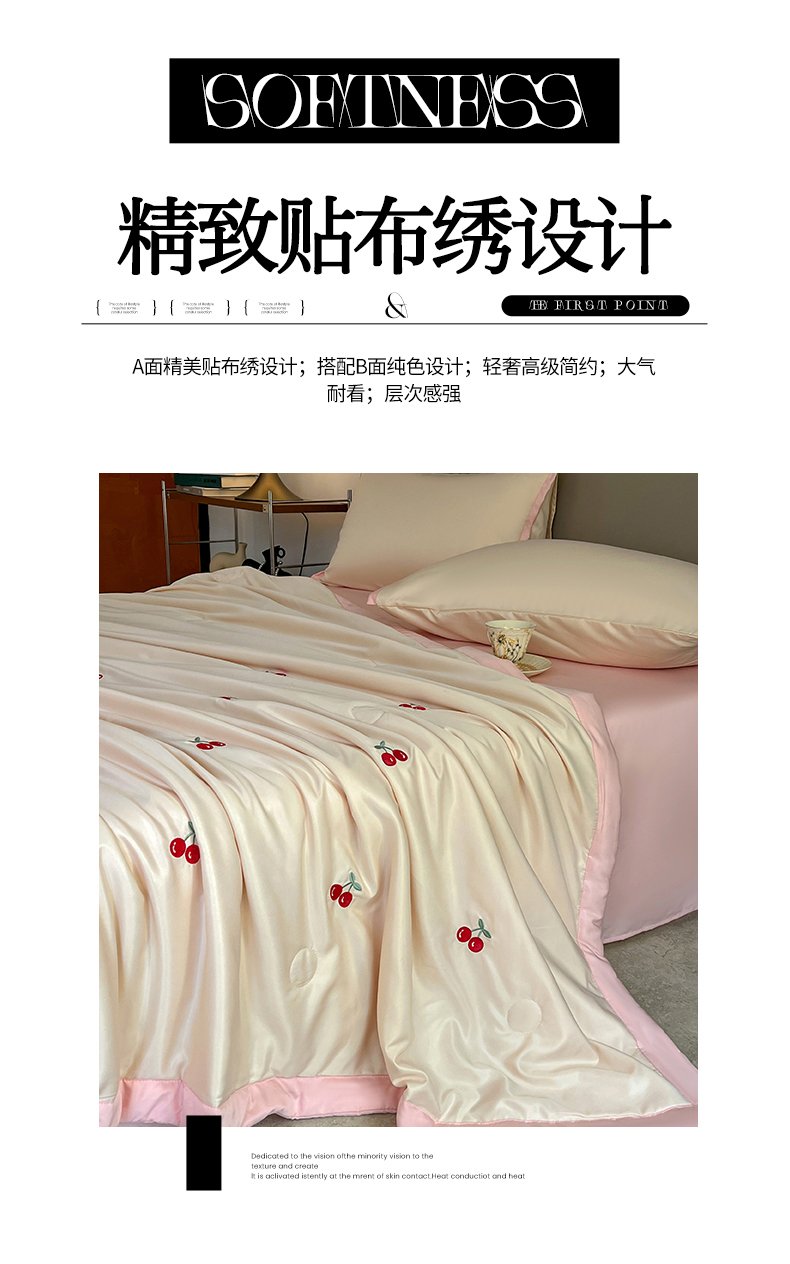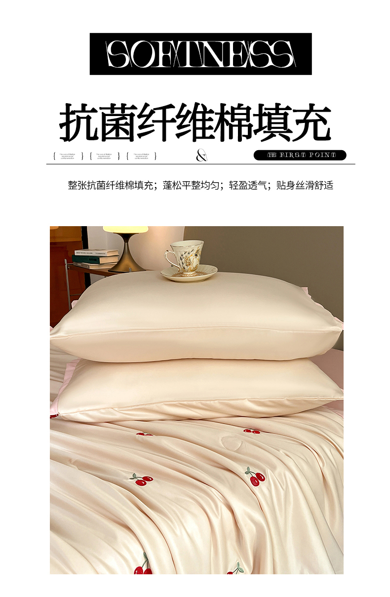 商品名称:妖妖家纺 2025春夏新款水洗冰丝绣花夏被夏凉被空调被四件套 樱桃夏日