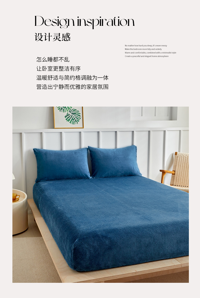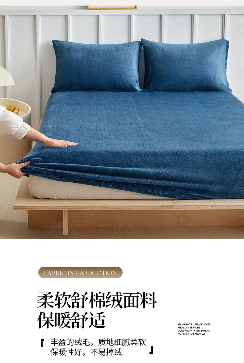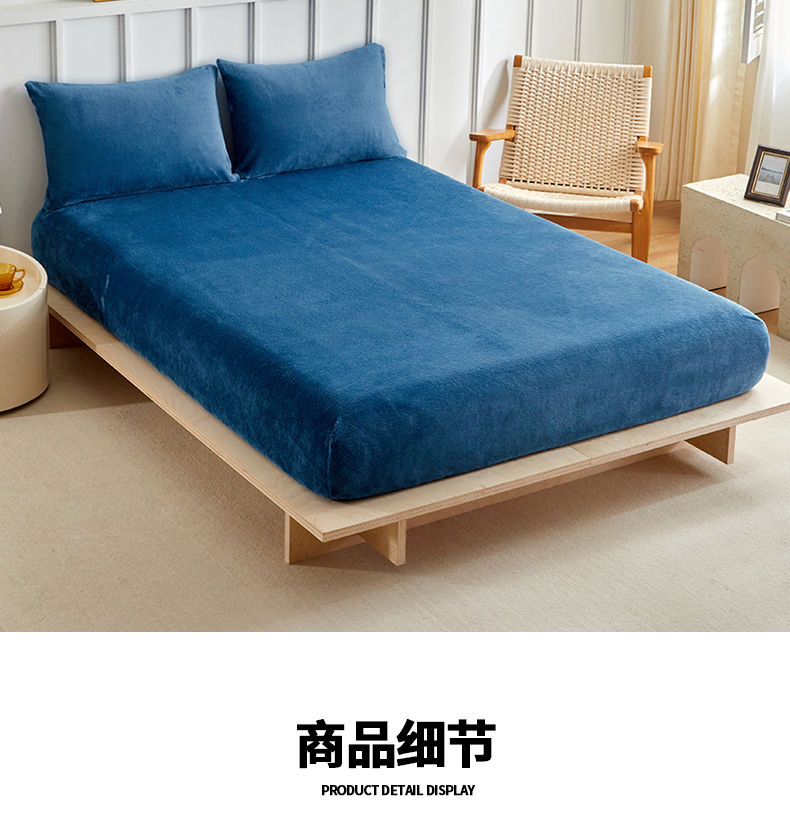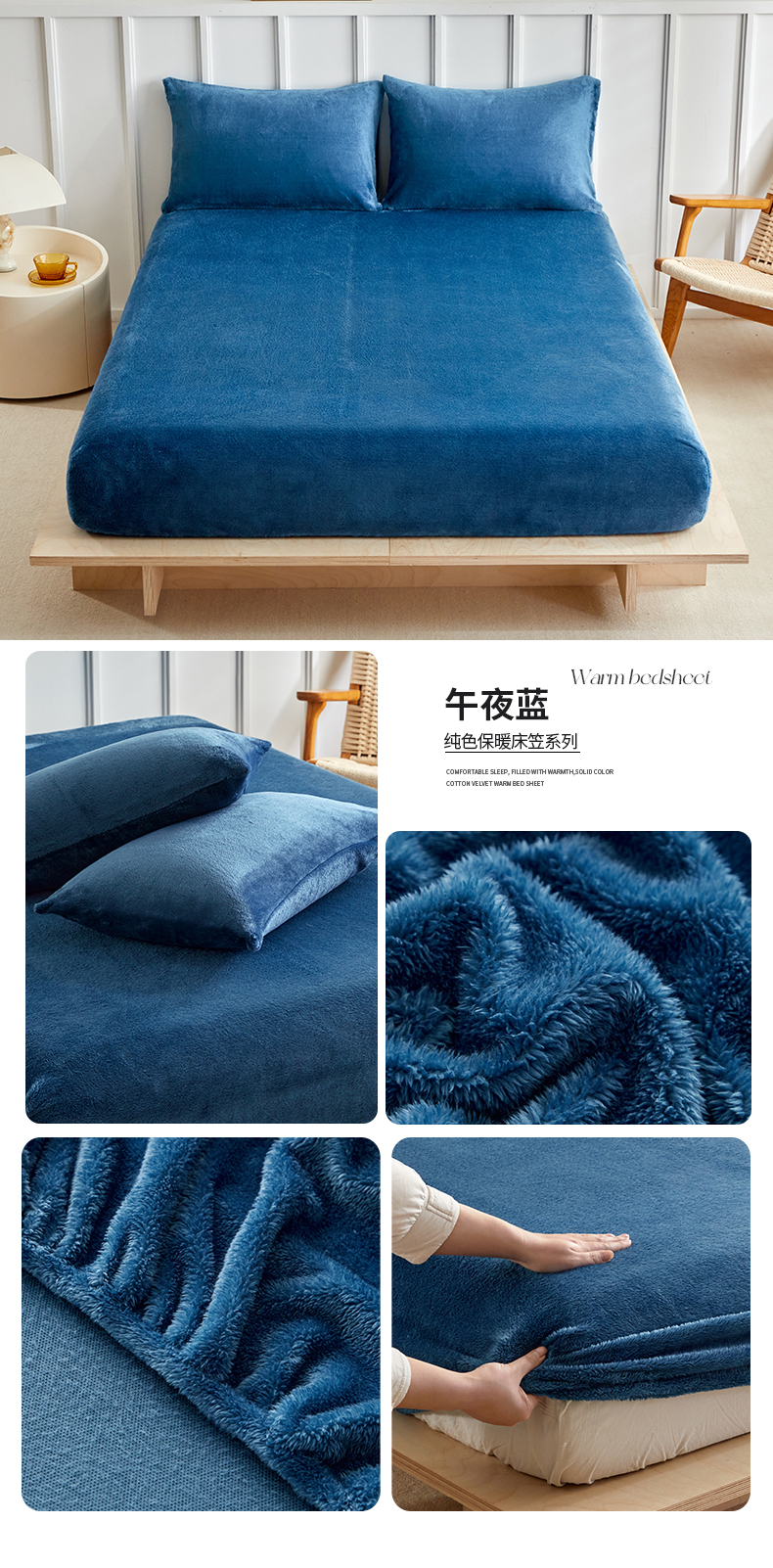 商品名称:2025新款热款北极绒床笠三件套跨境电商外贸欧美尺寸舒棉绒绒牛奶绒保暖三件套 午夜蓝