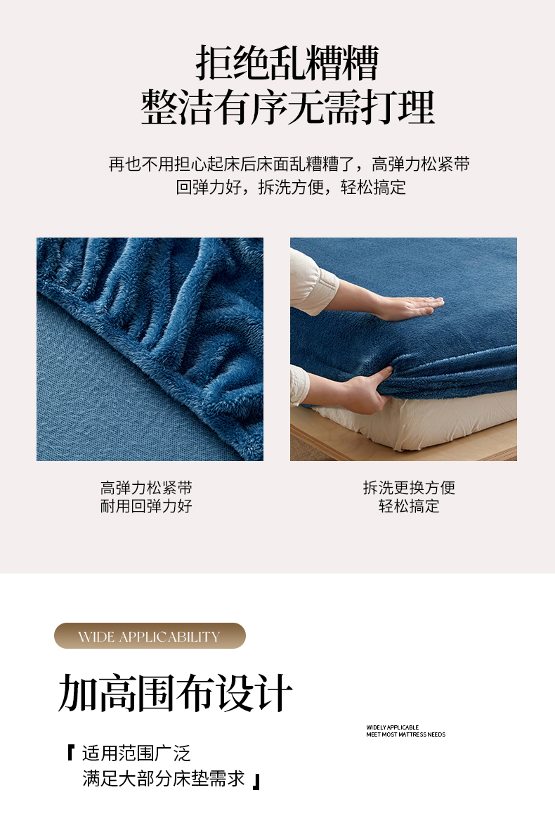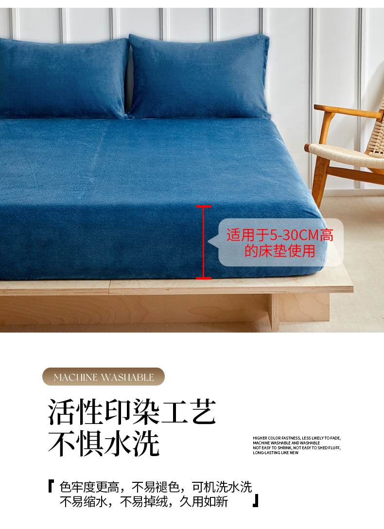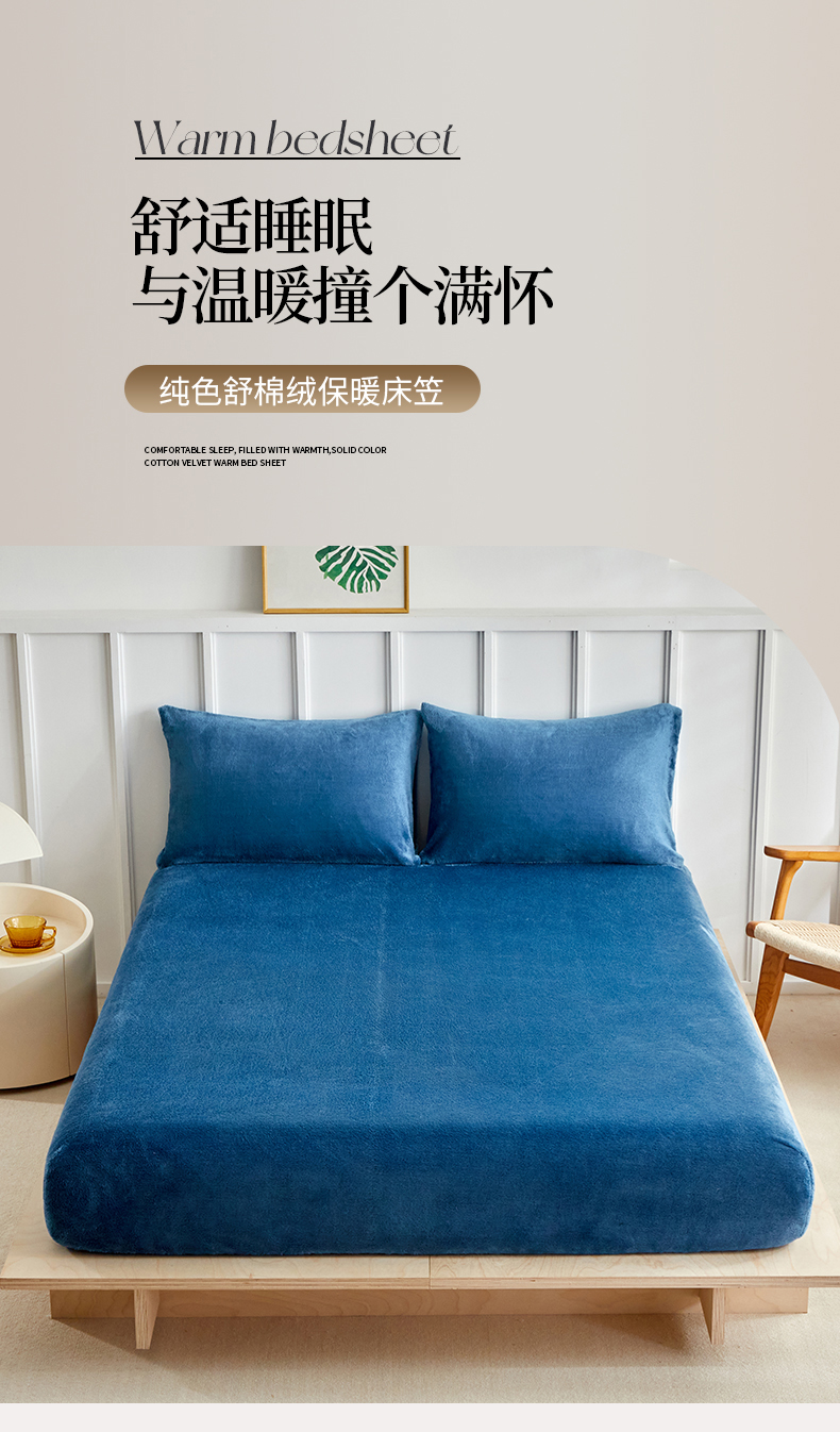 商品名称:2025新款热款北极绒床笠三件套跨境电商外贸欧美尺寸舒棉绒绒牛奶绒保暖三件套 午夜蓝