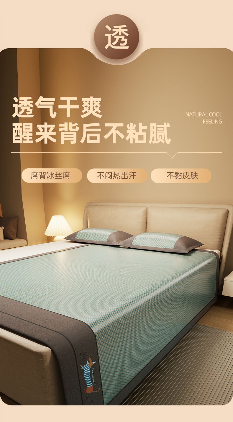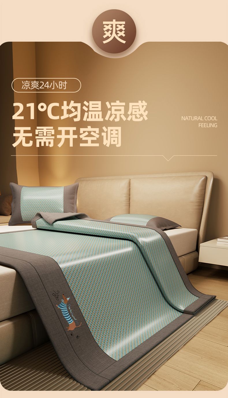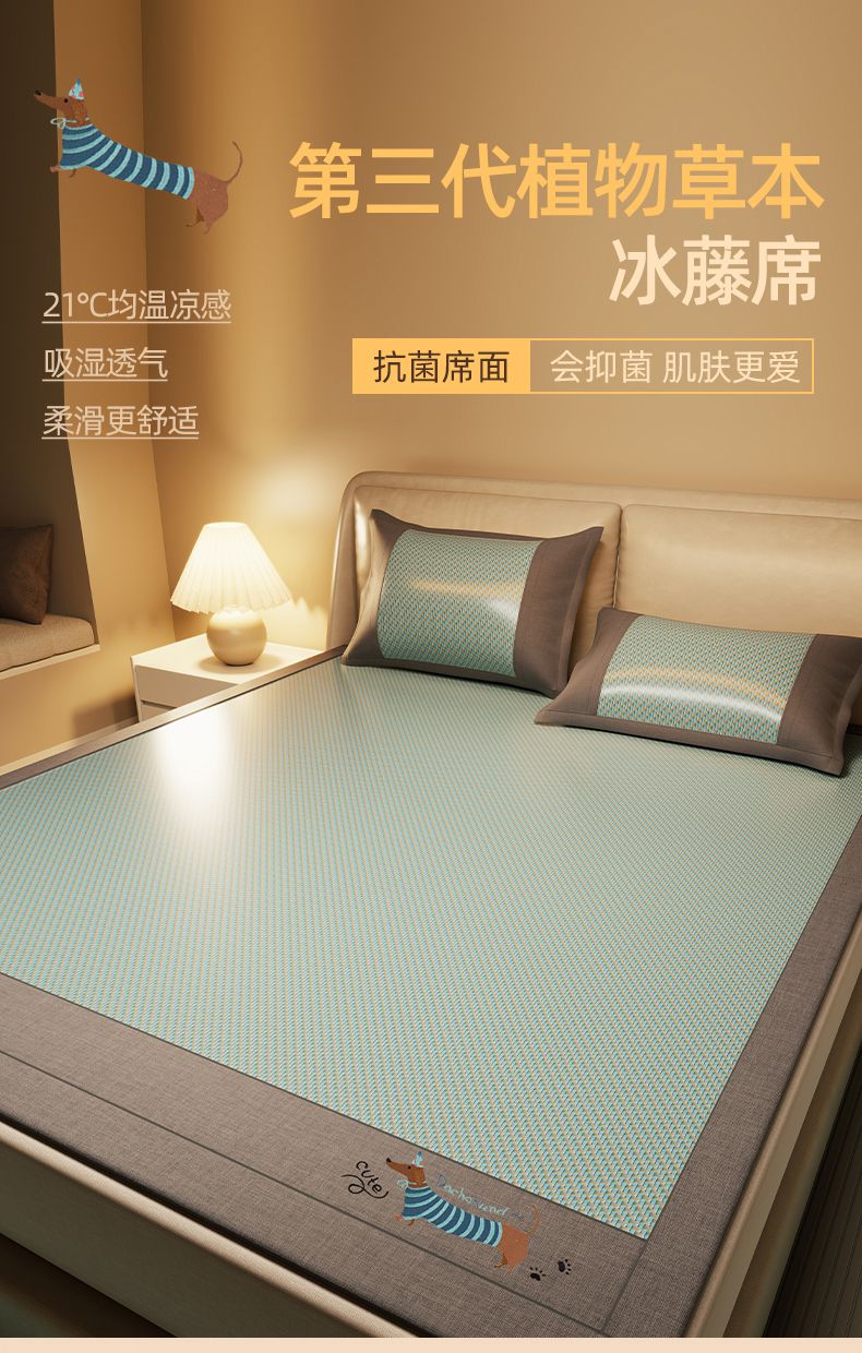当前位置: 91家纺网 > 商品网购 > 床上用品 > 凉席 > 藤席 > 绒艺席业 2025新款抗菌刺绣凉感冰藤席 腊肠狗-松木绿