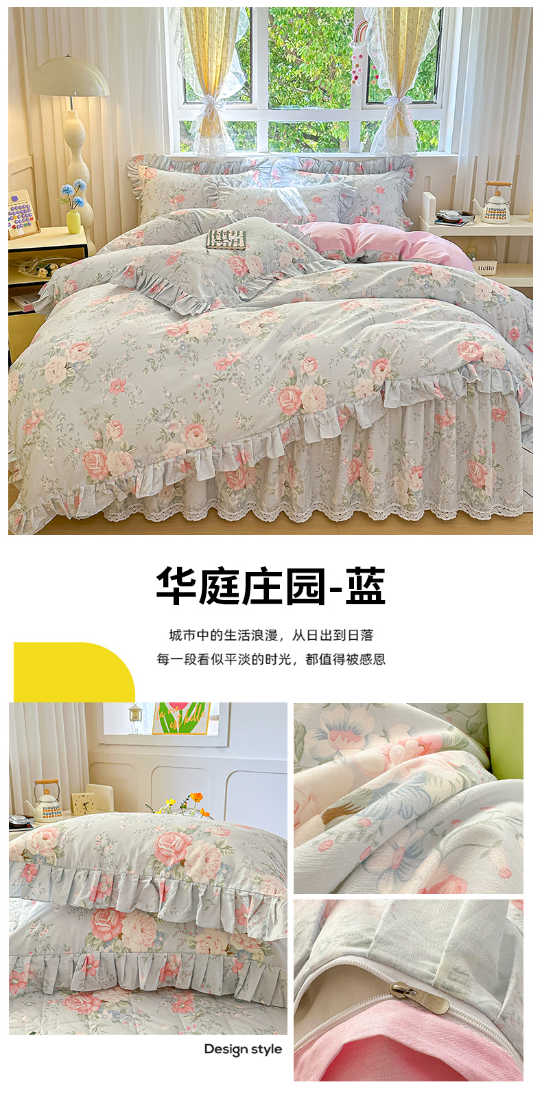 当前位置: 91家纺网 > 商品网购 > 床品套件 > 四件套 > 全棉普通四件套 > 忘忧草 2025新款全棉夹棉印花床裙四件套纯棉 华庭庄园-蓝