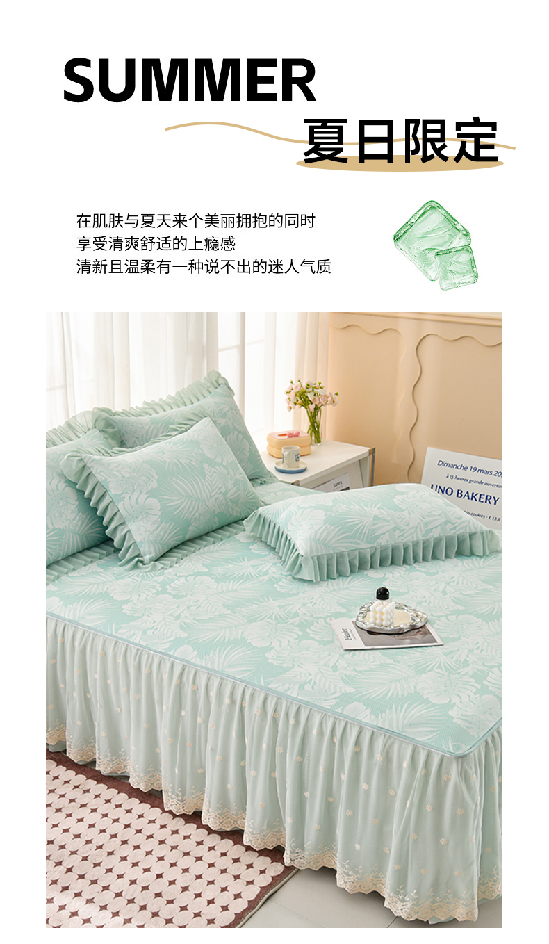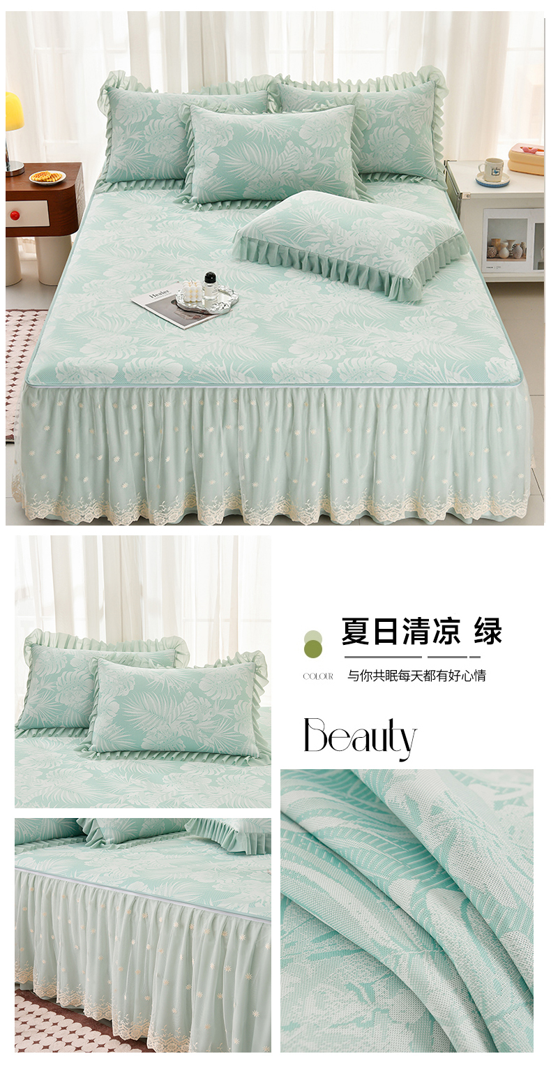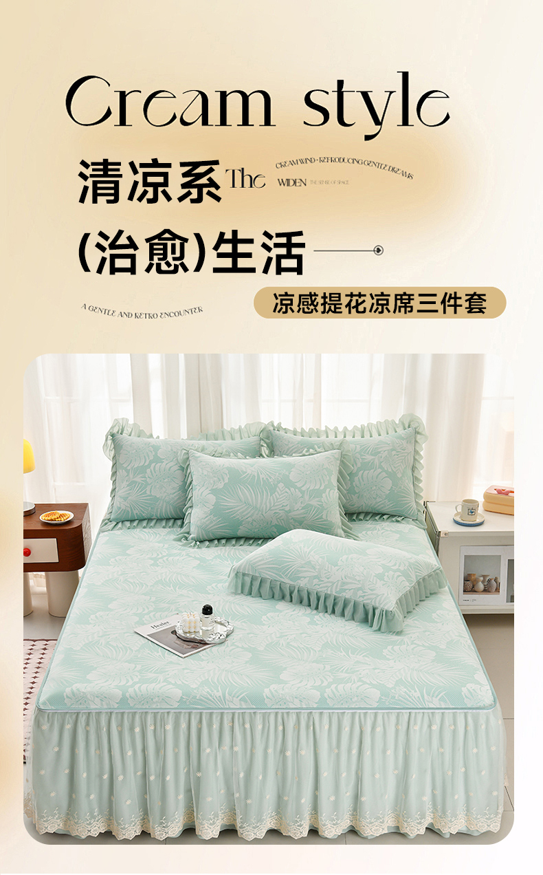当前位置: 91家纺网 > 商品网购 > 床上用品 > 凉席 > 凉席套件 > 家之硕家纺 2025春夏新款凉感提花凉席三件套-夏日清凉系列 夏日清凉---绿