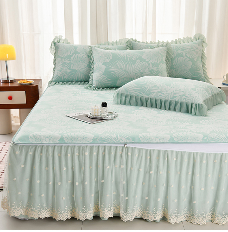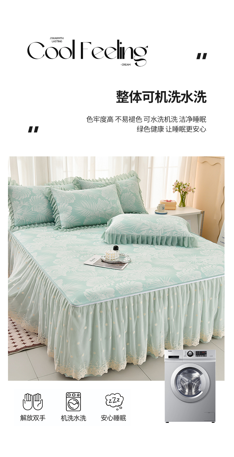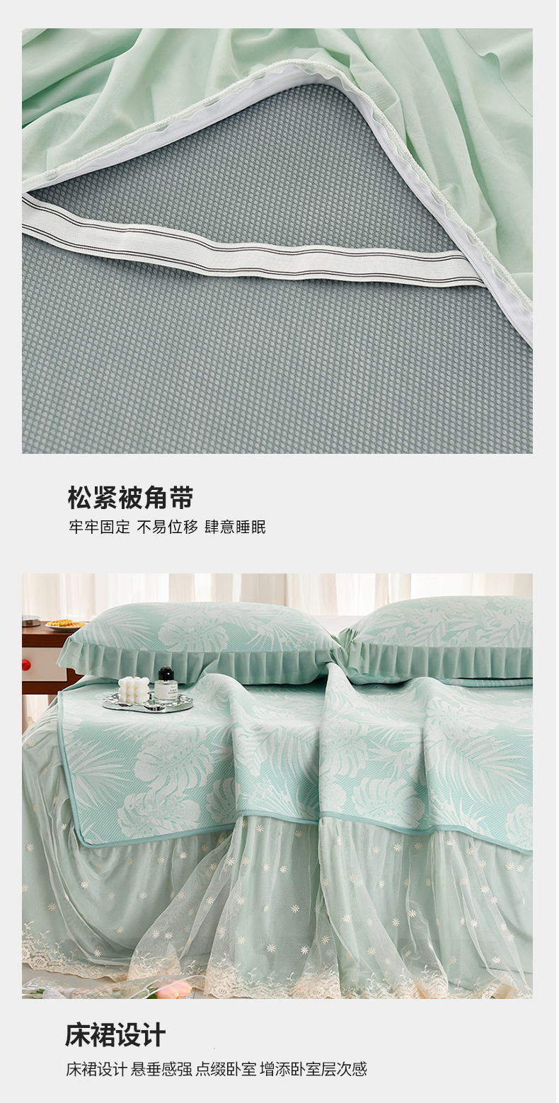 当前位置: 91家纺网 > 商品网购 > 床上用品 > 凉席 > 凉席套件 > 家之硕家纺 2025春夏新款凉感提花凉席三件套-夏日清凉系列 夏日清凉---绿