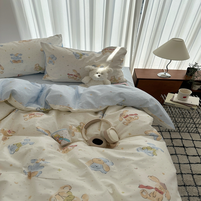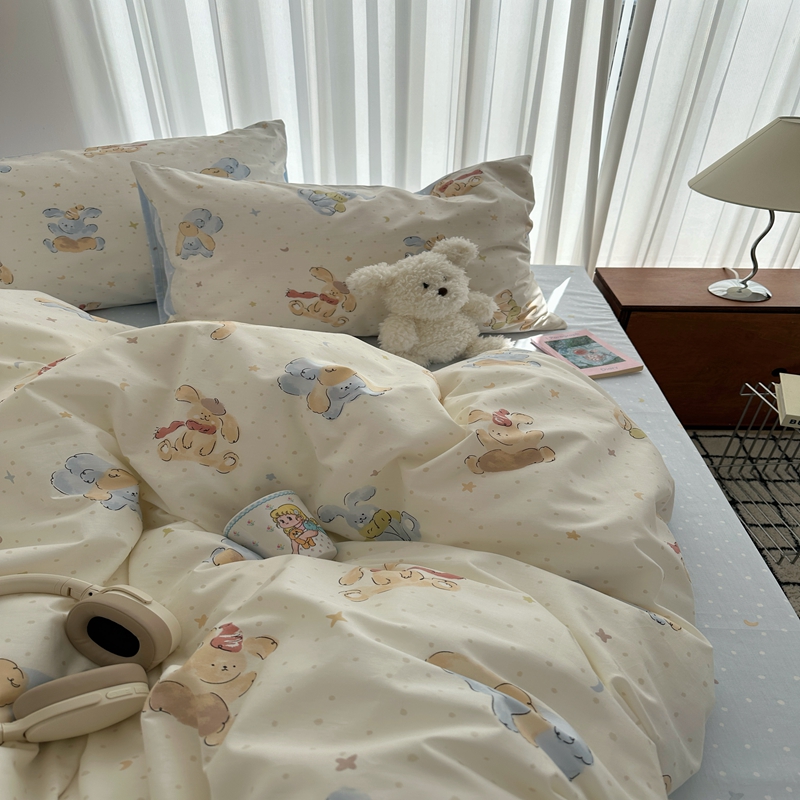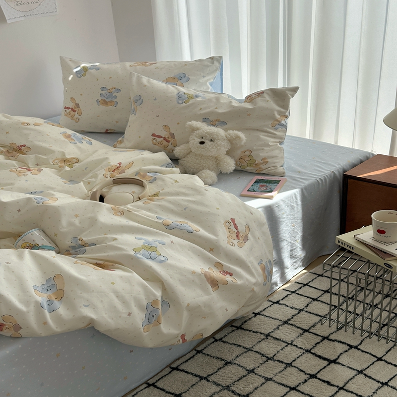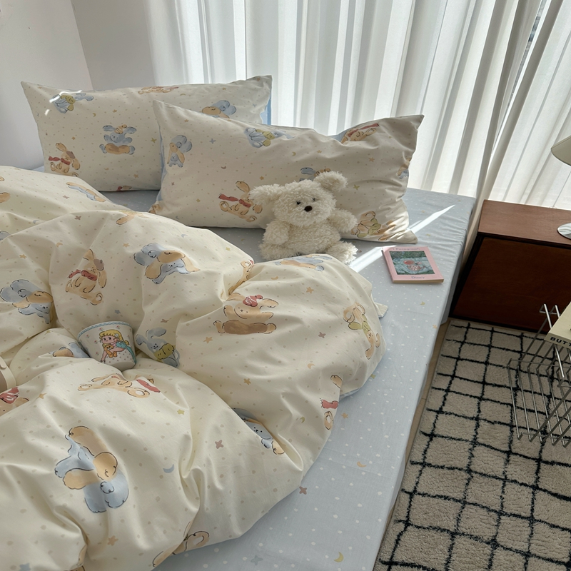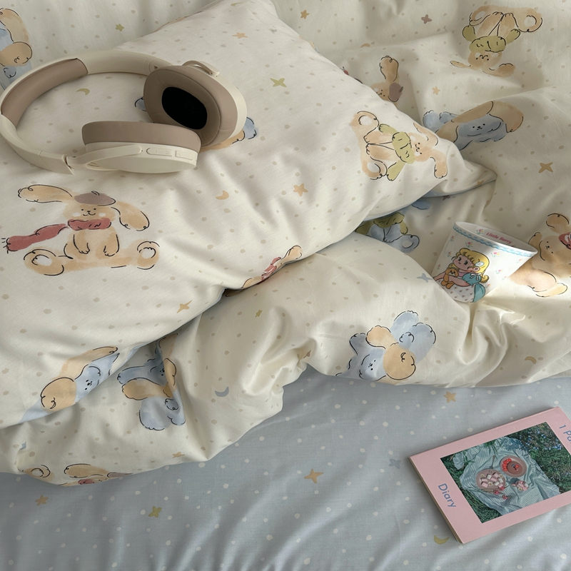 商品名称:尺素 2025新款全棉卡通可爱儿童四件套纯棉活性A类被套学生宿舍三件套1.8床笠双人床单 米团兔