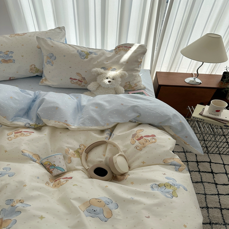 (总)尺素 2025新款纯棉卡通ins风四件套可爱少女风全棉被套纯色1.8床笠加大床单学生1.2三件套,告白熊--浅蓝,格调粉--奶黄,格调粉--桃粉,蓝白情书--浅蓝,清梦--冰沙绿,清梦--浅黄,小熊软糖--焦糖