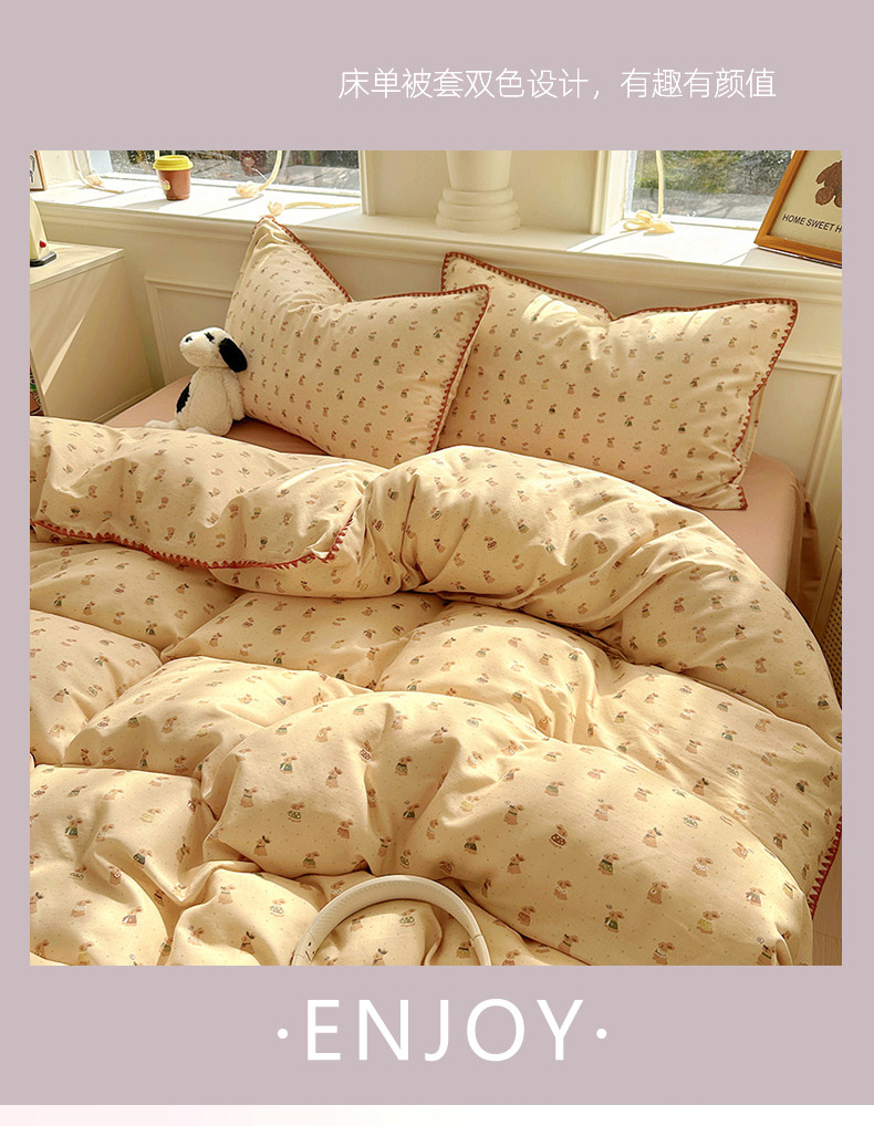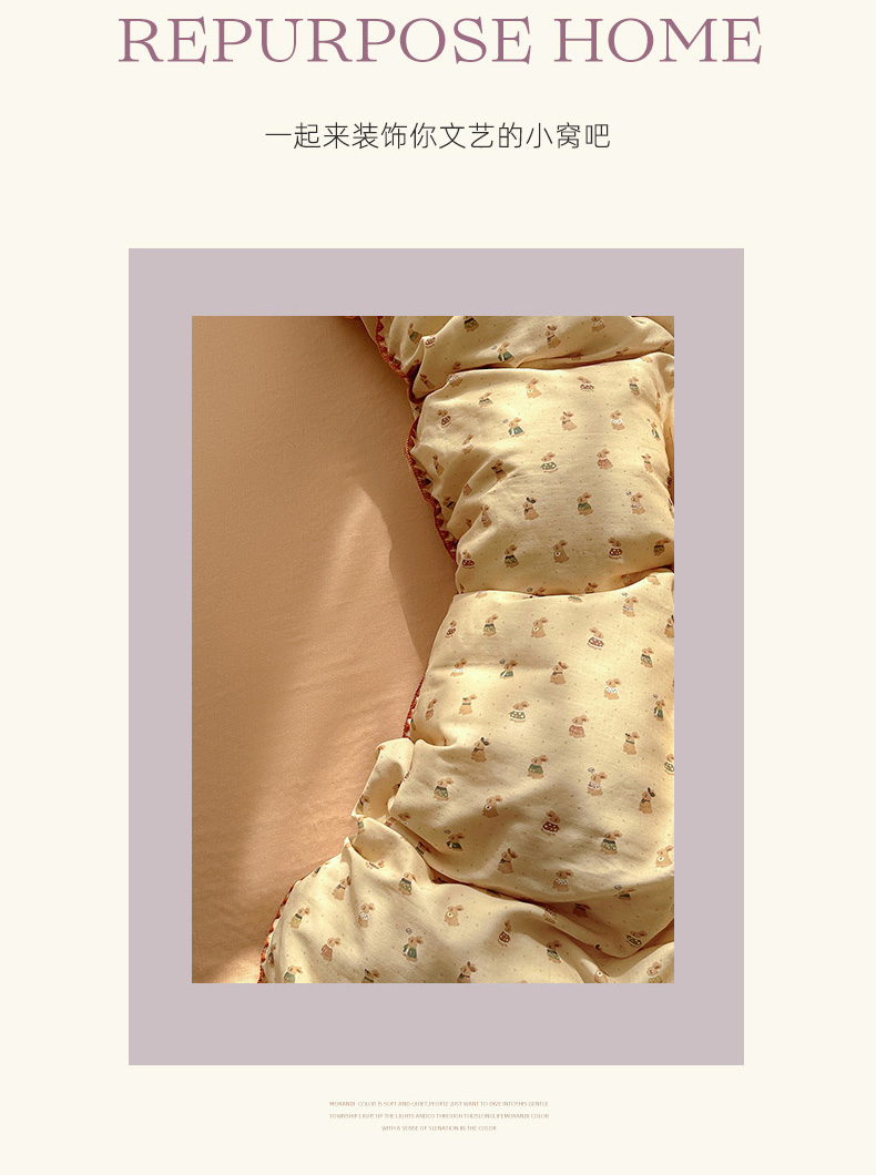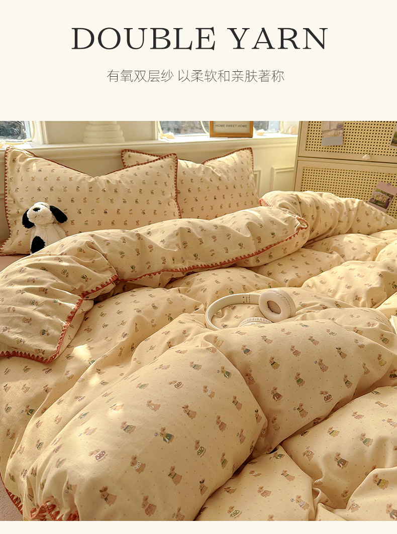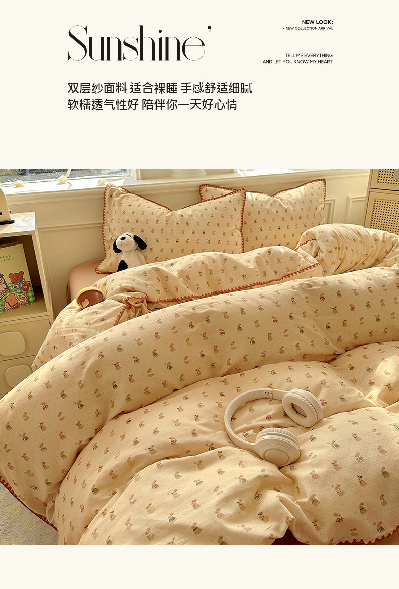 当前位置: 91家纺网 > 商品网购 > 床品套件 > 四件套 > 双层纱四件套 > (提供买家秀 爆款花型 不断货)2025新款A类全棉双层纱四件套 可爱兔