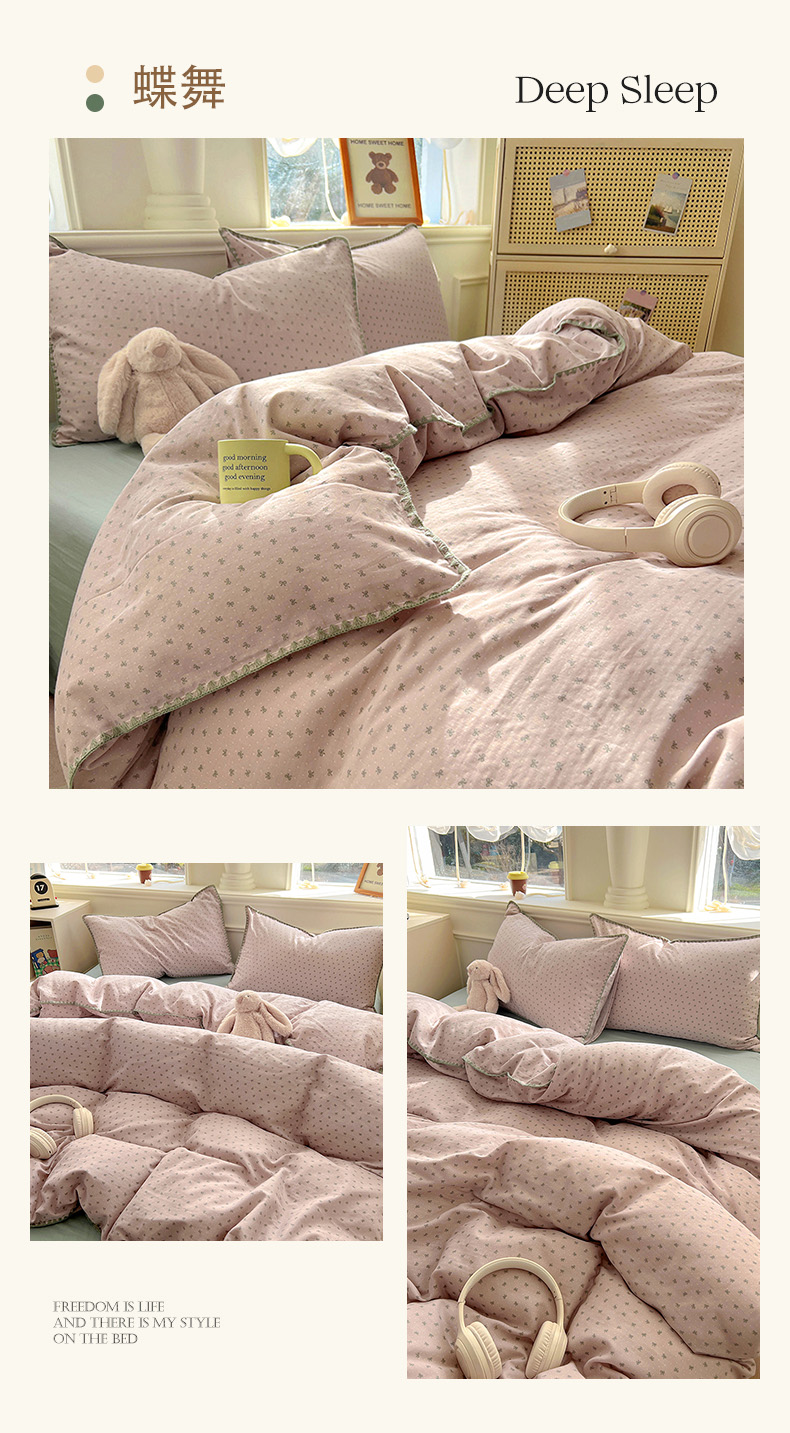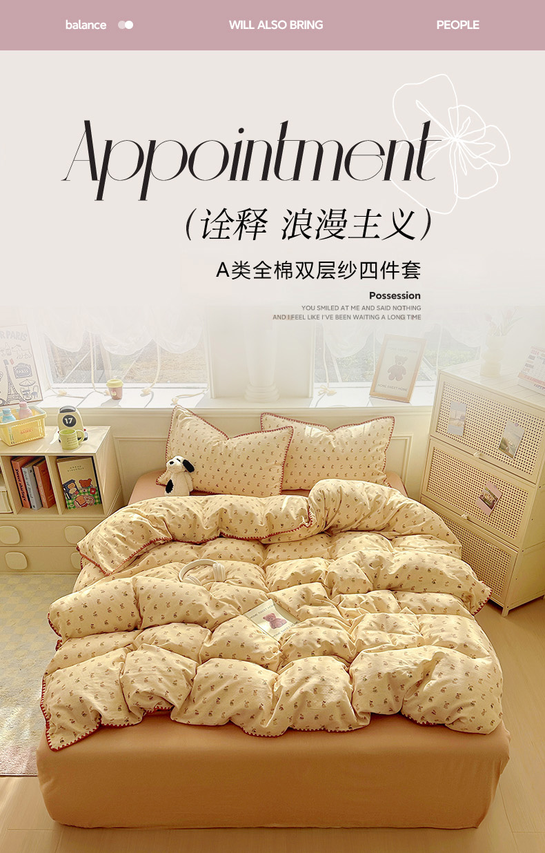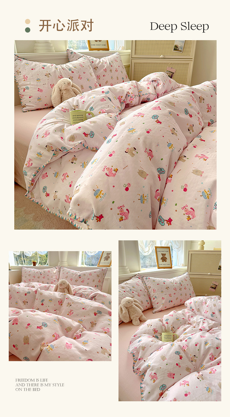 当前位置: 91家纺网 > 商品网购 > 床品套件 > 四件套 > 双层纱四件套 > (提供买家秀 爆款花型 不断货)2025新款A类全棉双层纱四件套 可爱兔