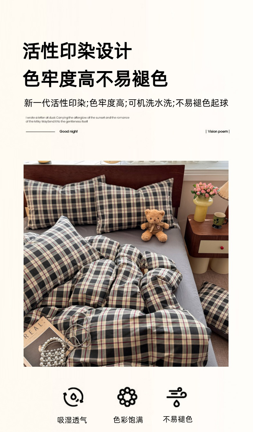 商品名称:(总)呗旺鹿 2025新款学生季全棉纯棉40支跑量款巴恩风四件套