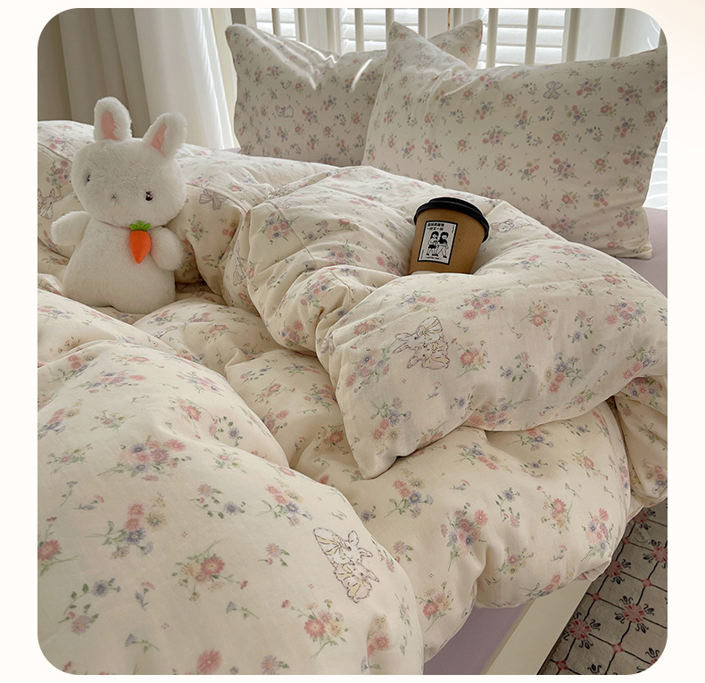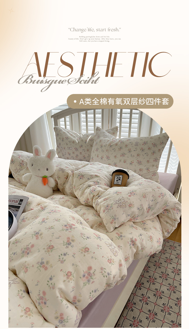 瑞莱 2025夏季新款全棉纯棉有氧双层纱四件套 萝莉兔
