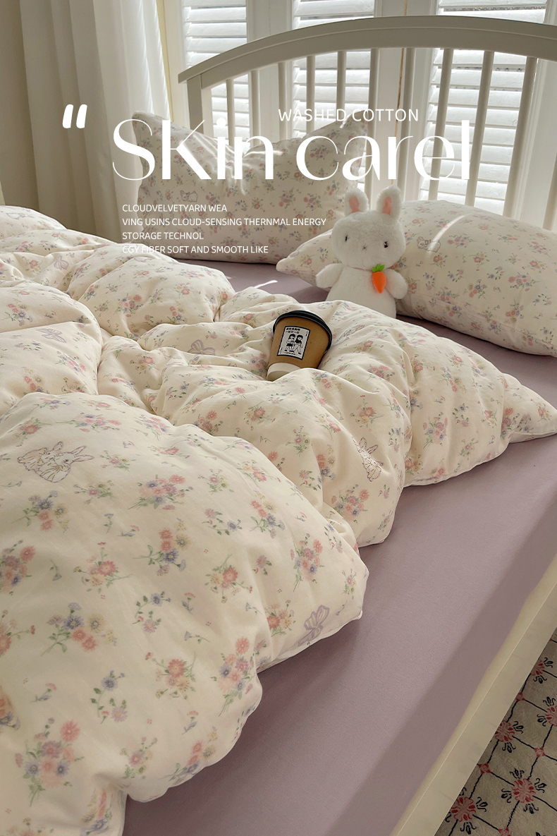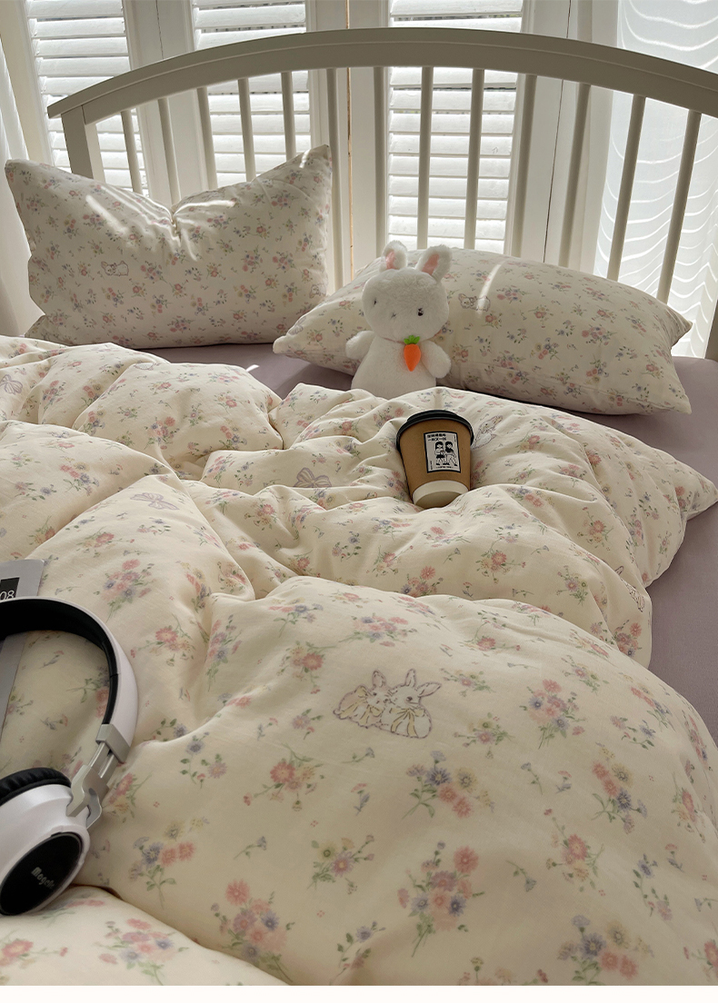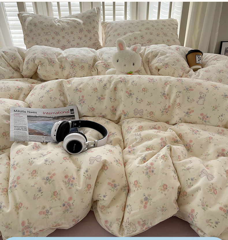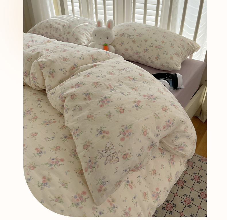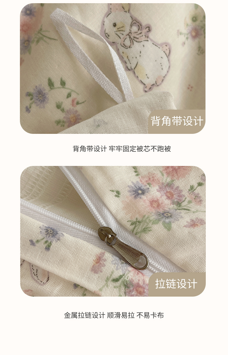 商品名称:瑞莱 2025夏季新款全棉纯棉有氧双层纱四件套 萝莉兔
