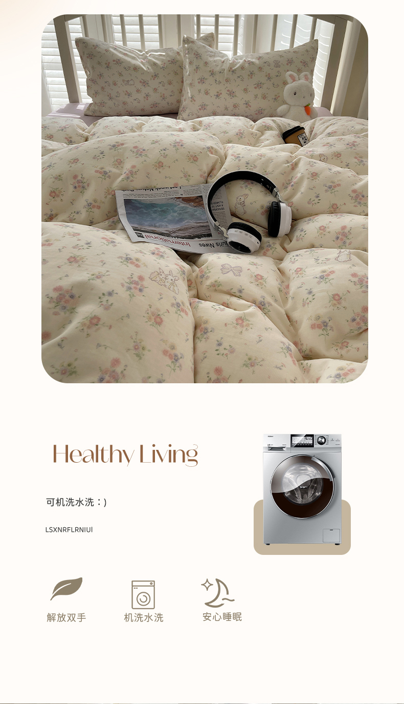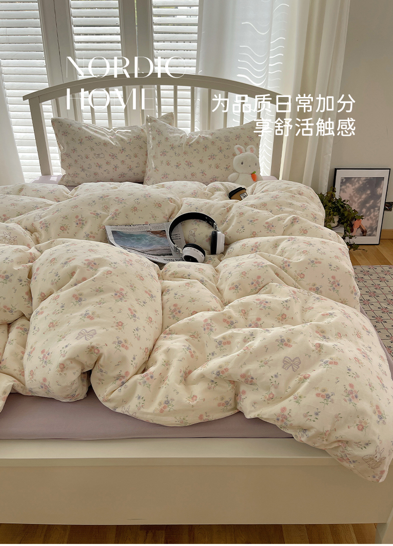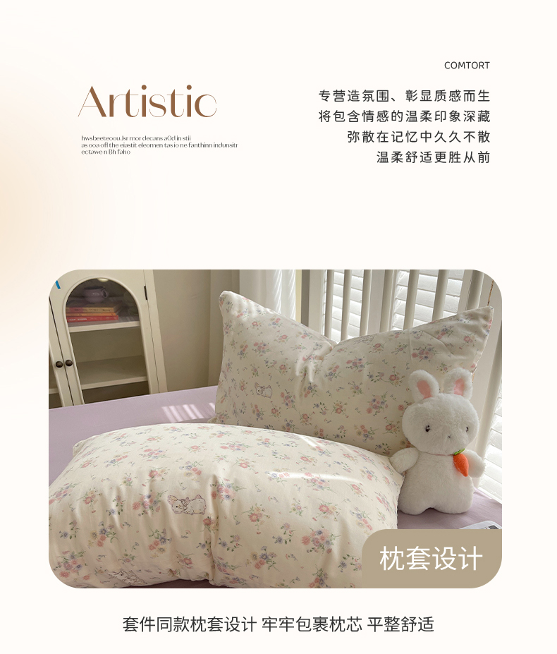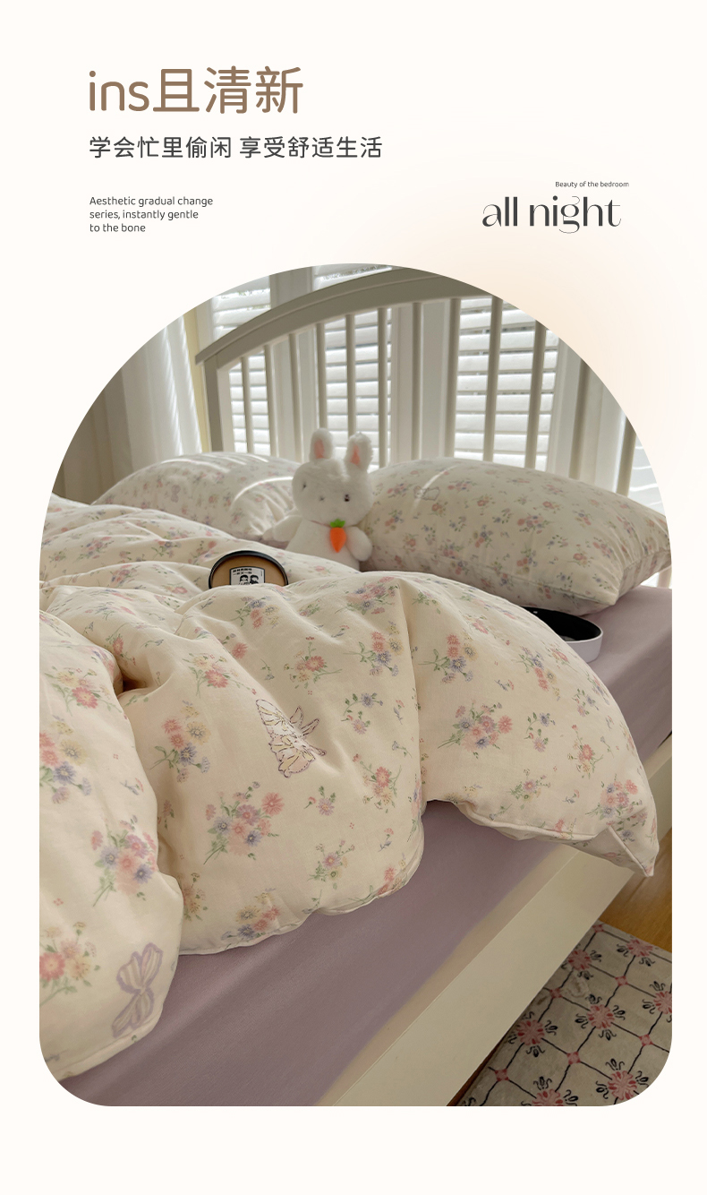 商品名称:瑞莱 2025夏季新款全棉纯棉有氧双层纱四件套 萝莉兔