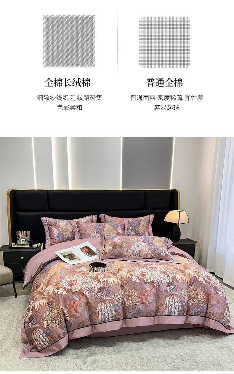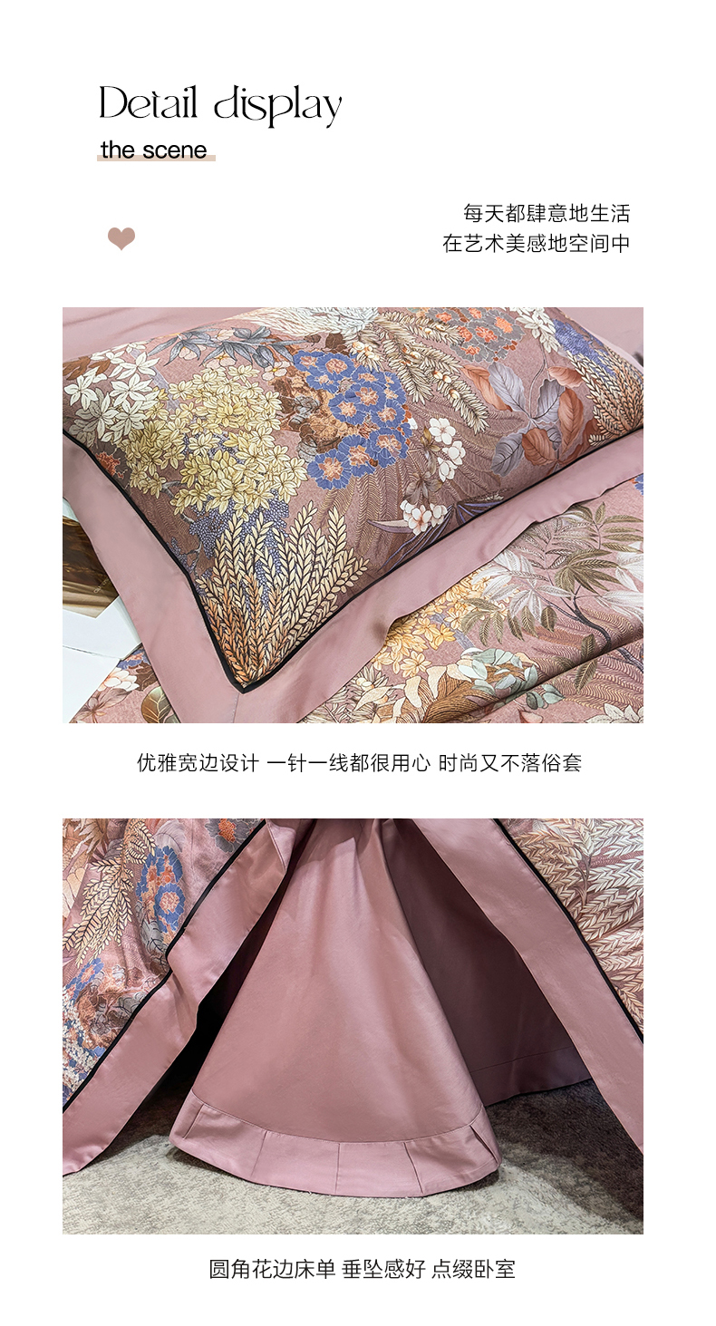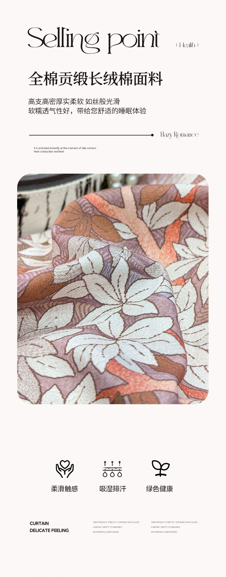 商品名称:宏羽纺家纺 2025年高支高密大版数码印花春夏新品 秘境-香芋