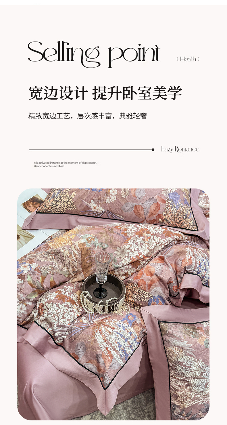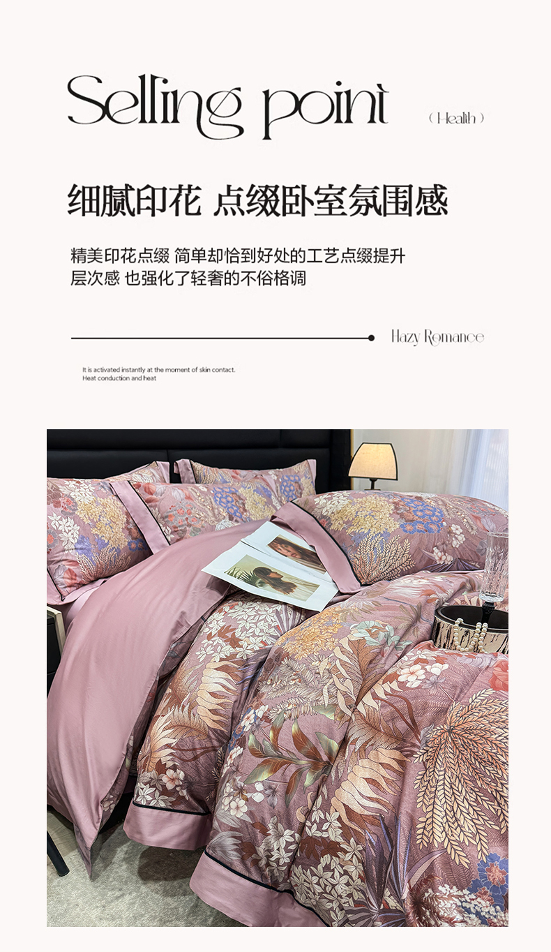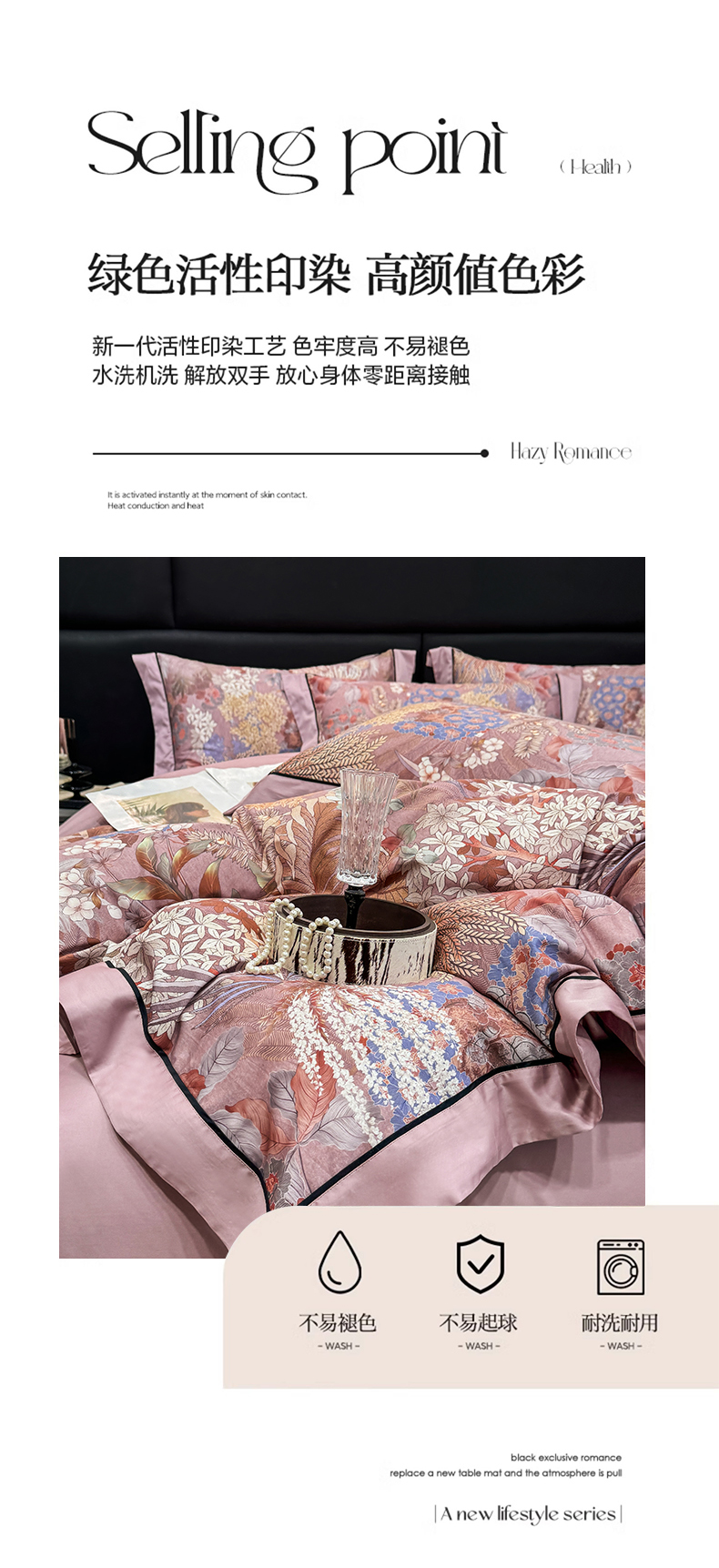 商品名称:宏羽纺家纺 2025年高支高密大版数码印花春夏新品 秘境-香芋