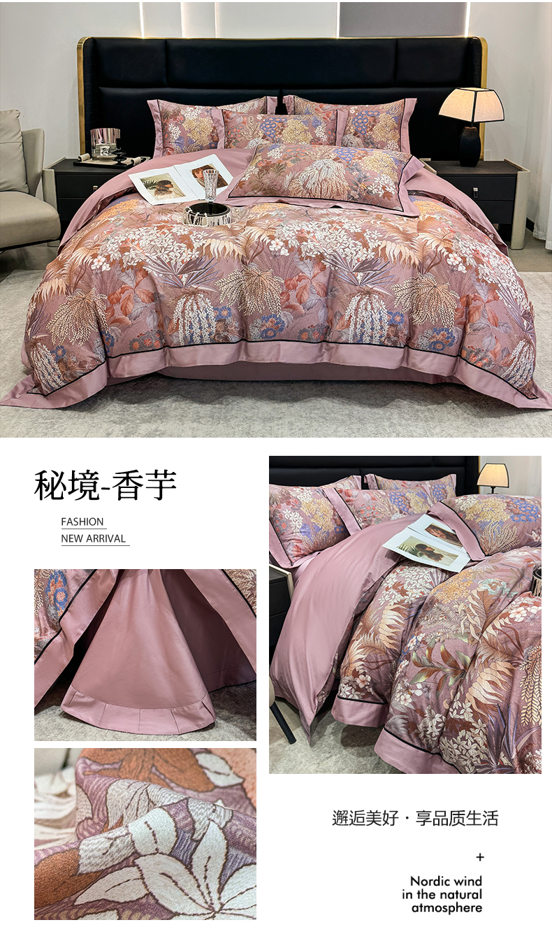 宏羽纺家纺 2025年高支高密大版数码印花春夏新品 秘境-香芋