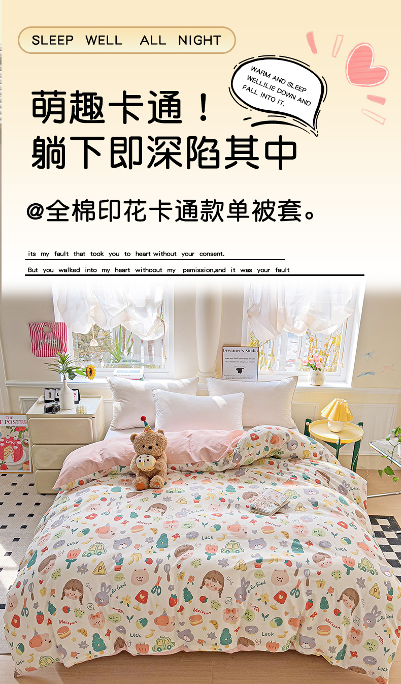(总)依庭 2025新款高克重全棉纯棉磨毛印花单被套,乐享,贝丽丝,彼得兔,草莓奶昔,茶言妙语,初漫,蝶恋花,奥维斯,朵唯,朵韵,芳盈,飞花令,哈基米,好伙伴,好运熊-咖,好运熊-蓝,红冠象,花色伊人,吉唛,悸动,惊鸿-粉,惊鸿-桔,可爱兔,恐龙告白,酷小狗,快乐星球,蓝色恋人,绿萝,玛雅,曼迪,玫瑰花语,萌车派对,萌宠,莫利格,奶油小狗,南瓜熊,尼彩,帕比,皮皮狗,清新花园,山樱,笙白-桔,甜梦茶语,甜心花语,仙女星辰,小欢喜,星梦乐园,星晚-粉,幸福小熊,幸运熊,寻悦-桔,叶叶情深,叶之恋,叶芝,樱贝,樱絮仙踪,优漫,悠悠仙草,柚见,灼华