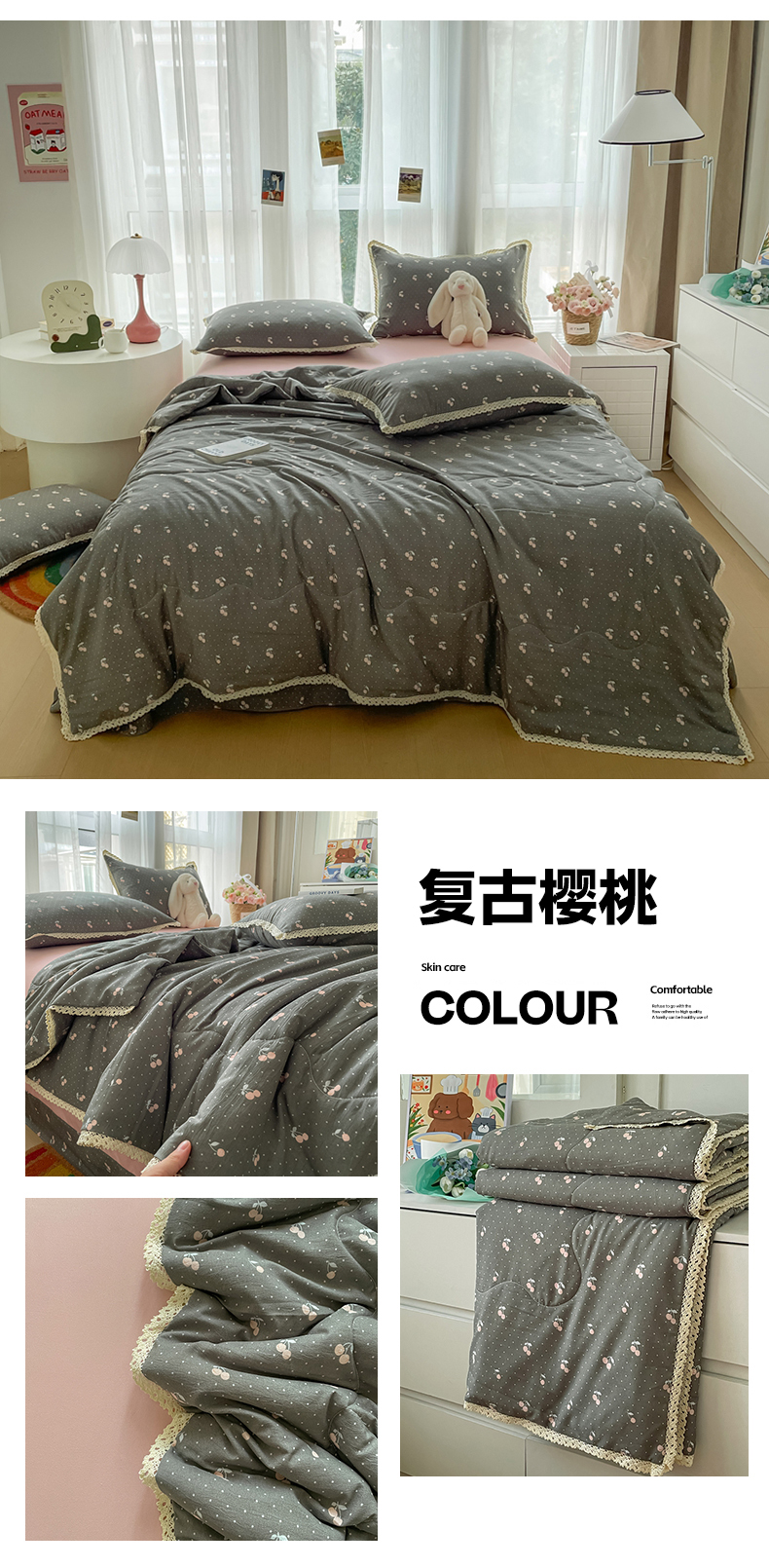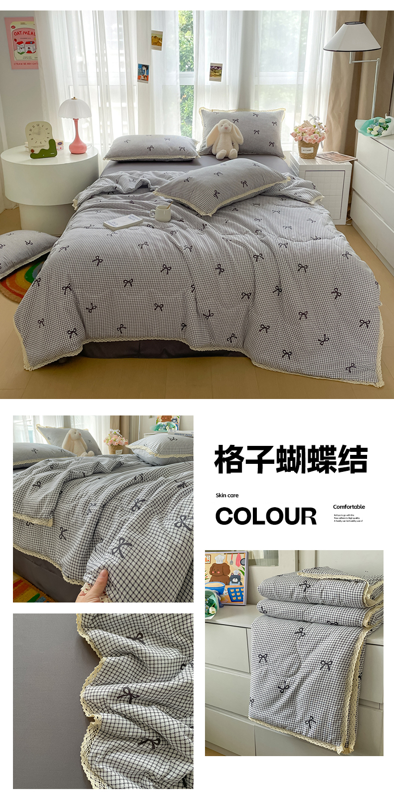 (总)2026新款云感皱皱纱全棉花边款夏被四件套,百福兰,春天里,春晓,豆蔻,蝴蝶梦,可颂,兰黛,山野栀子,素颜,太妃糖,微凉薄荷,心动,遇见,芝士奶酪,紫爱心,紫苏,白茶绿,初恋,蜡笔画,莱茵河畔,桃花诺,小黑兔,春不晚,春日小熊,可颂,陌上花开,莫奈,若欢-绿,若欢紫色,舒芙蕾,田园拾趣-黄,兔小姐,郁金香小兔,波点小兔粉,波点小兔兰,花园兔,情人节,山野栀子,十里桃花粉,十里桃花紫,舒芙蕾,太妃糖,夏天,运动健将熊, 白月光,缤纷几何,格格西高地,海盐蓝小格,黎漫,木槿绿,奶油泡芙,欧若拉,桃夭,甜茶,小晴天,芋泥紫小格,紫色蝴蝶结