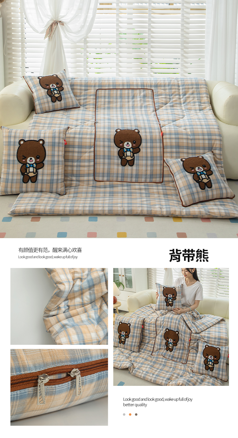 商品名称:(总)宝马家纺(原梦童画) 2025新款色织全棉印花水洗棉抱枕被阿狸泰迪熊系列