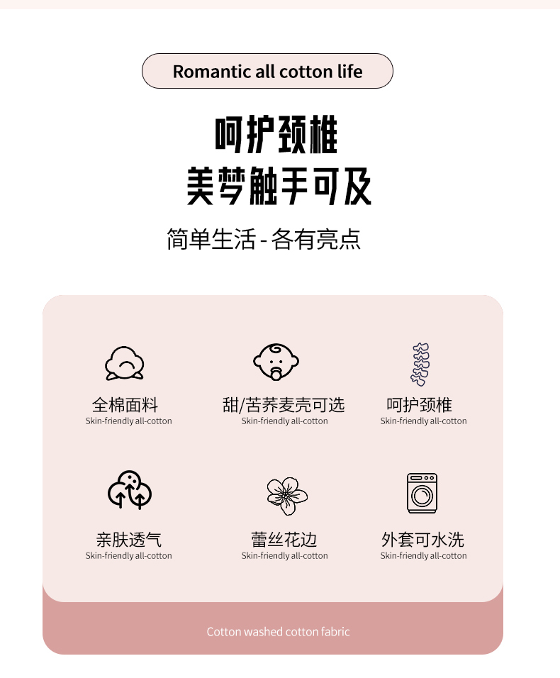 商品名称:(总)蔻眠 爱心桃-全棉水洗棉立体刺绣荞麦护颈枕芯儿童学生成人枕头